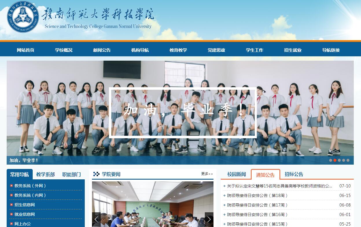 赣南师范大学科技学院(以下简称:学院)是2003年经江西省教育厅、江西省发展计划委员会批准,国家教育部确认,由赣南师范大学创办的全日制普通高等本科院校。学院地处国家历史文化名城、全国文明城市、江西省省域副中心城市——“南国宋城、客家摇篮、红色故都”赣州市,坐落在市中心城区、紧邻“省园林路”红旗大道的赣南师范大学章贡校区,占地400余亩,校舍18万平米,校园绿化率61.02%,林秀花香、环境幽雅、景色宜人,是赣州市园林化单位。1.5万平米的现代化图书馆藏书丰富,是学生汲取知识的不竭源泉。1000座的演奏厅楼气势恢弘,是展现师生风采的最佳舞台。先进的各类实验室,设施完善的运动场馆、学生公寓,南北风味俱全的餐厅,方便快捷的生活服务,为学生求知治学创造了优越条件。学院的创办方——赣南师范大学(以下简称:学校),是文化底蕴深厚、办学特色鲜明、综合实力较强的综合性师范大学,过去半个多世纪,在人才培养、科学研究、社会服务、文化传承创新和国际教育合作与交流等方面成果卓著、享有盛誉。依托赣南师范大学的优质教育教学资源,学院采用全新的办学机制和模式,立足江西,面向长珠闽,辐射全国,以适应国家需要、服务国家建设为己任,沿着应用型大学之路,致力推进高水平的教学建设、高标准的学科(专业)建设、高素质的队伍建设和雅致的校园建设,培养具有创新精神和实践能力的高级专门人才。学院自创办以来,通过一系列的改革和建设,各项办学指标大幅度上升,实现了跨越式发展,整体实力显著增强,社会美誉度与日俱增。学院勇于改革,积极探索科学发展道路,先后被评为“全国民办高校(含独立学院)党的建设和思想政治工作优秀成果二等奖”“全国高校网络宣传思想优秀作品三等奖”、全省“依法治校示范校”(前三项奖励均为全省独立学院唯一)、“高校思想政治教育工作先进集体”“普通高校毕业生就业工作评估优秀单位”“高等学校人事人才工作先进集体”“教育系统创先争优先进基层党组织”“语言文字工作先进单位”和“独立学院思想政治理论课建设评估优秀奖”。学院始终坚持以学科专业建设为龙头,按照“强化应用、注重创新、交叉融合、彰显特色”的方针,设有文法系、外语系、数学与信息科学系、经济管理系、音乐系、美术系、体育系、思想政治理论课教学科研部等8个教学系(部)25个本科专业,全日制在校生3900余人,涵盖法学、文学、史学、理学、工学、经济学、教育学、艺术学等8个学科门类,并培育了一批品牌专业,在参加全省同类院校专业建设综合评价中名列前茅。在接收学校一批实验教学示范中心的基础上,学院兴建了电子创新、数字微格、苹果机房、计算中心、网络语音、ERP沙盘、会计模拟、财务管理、MIDI电脑音乐、模拟法庭等一批理念先进的基础及专业实验室,建成了师范生基本功大赛、数学建模竞赛、“挑战杯”竞赛、电脑知识竞赛、电子设计大赛、司法考试、“互联网+”创新创业教育中心、SYB创业培训、大学生艺术展演竞赛、大学生广告艺术大赛、高水平运动员集训等11个校内学生专业素质拓展平台和100余个校内外实习实践基地。学院始终坚持以队伍建设为核心,充分利用学校的优势优质资源,多元化培养优秀青年教师成长,精心打造了一支师德高尚、业务精湛、结构合理、充满活力的高素质专业化教师队伍,众多教学名师与学者耕耘在教学第一线,为学生的成长成才提供强有力保障。秉承学校的优良传统、学科优势和人文精神,学院开设名家讲坛,每年举行高水平讲座近百场,两院院士、知名学者和业界专家以学术风范和人格魅力感染着莘莘学子。与此同时,科学研究工作深入推进,纵向、横向科研项目均取得可喜进展。学院始终坚持以人才培养为根本,把个性化培养与柔性化管理相结合,不断推出提高人才培养质量的新举措,确立了培养“厚基础、高素质、强能力”的人才培养目标,探索构建了“1234”教育教学方案和“2+1+1”人才培养模式,赢得了教育专家好评和社会广泛认可。教学过程中,学院着力从培养模式、课程体系、实习指导等各方面加强培养学生的实践创新和就业创业能力,连年获得省教育厅“大学生实践创新训练计划”多项立项,并通力开展学术科技、文化艺术、志愿服务等大学生第二课堂和社会实践活动,为学生的健康成长和全面发展提供了广阔空间。在全国数学建模竞赛、全国高校语言文字基本功大赛、全国大学生英语竞赛、全国大学生金融精英挑战赛、全国大学生课外学术科技作品竞赛、全国大学生原创音乐大赛、全国大学生广告艺术大赛、全国大学生健美操锦标赛、世界大学生摄影展等国家和省级大赛中,与各知名高校代表队同场竞技,表现突出,3100余人次屡获殊荣,其中40余人次获国家级竞赛一等奖或冠军。获奖之多,奖项之高,在全省同类院校中首屈一指。在素有“中国第一考”的国家司法考试中,法学专业学生连续数年一次性通过率超过53.5%,远逾全国高校通过率20%的平均值。学院高度重视就业工作,毕业生就业率高、去向好。每年10%以上的学生考取国内外知名大学硕士研究生,部分专业考研录取率高达42%。一大批毕业生被录用为教师、公务员、“村官”、西部志愿计划选调生、出国留学等。毕业生就业率均超95%,学院多次