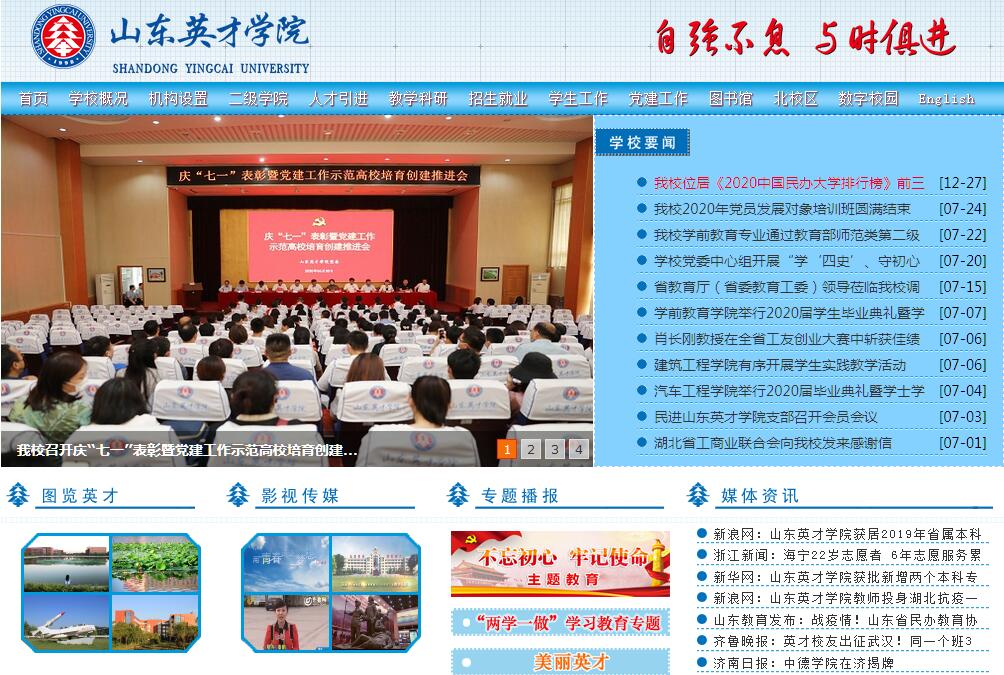 山东英才学院位于山东省会济南,创建于1998年,是济南市第一所民办普通本科高校。山东和济南所具有的区域和人才优势,为学校的发展、为英才学子成长成才提供了优越的条件。办学20年,山东英才学院始终致力于办学基础设施的建设和改善,致力于为广大学子提供环境优美和谐的校园。学校现有南北两个校区,占地1641亩,建筑面积54.4万平方米,图书馆馆藏图书180万册。学校建设了机械加工、汽车维修、电子信息、学前教育、物流管理、建筑施工、商业营销、医学护理、艺术设计等13个设备先进、管理完善、高效运行的实训中心,建立了130余家校外实习实训基地。物流实训中心被山东省人民政府确定为全省八个物流人才培养基地之一,学前教育实训中心被教育部评为国家级实验教学示范中心。学校还建有标准化的汽车驾驶员培训场地,为广大同学提供了考取驾照的机会。学校绿化面积达到63%,校园内绿树成荫、鸟语花香,静湖、易湖、恒湖碧波荡漾,景色宜人,学校被授予“全国绿化模范单位”、“山东省花园式单位”、“山东省绿化先进单位”。学校始终贯彻落实党的教育方针,专注教育事业,坚持教育的公益性原则,以培养人才为宗旨。学校严格遵守国家法律,遵守国家有关部门的政策规定,依法办学、规范管理,得到国家、省、市以及有关部门和社会各界的普遍赞誉。学校先后被国家民政部、人社部、共青团中央、全国妇联、省人社厅、省教育厅等授予“全国先进社会组织”、“全国民办非企业单位自律与诚信建设先进单位”、“全国就业与社会保障先进单位”、“全国五四红旗团委”、“全国三八红旗集体”、“全国毕业生就业典型经验高校”、“全国关心下一代工作先进集体”、“国防教育特色名校”、“全国高校实践育人创新创业基地”、“全国创新创业典型经验高校”、“中国民办高等教育先进单位”、“山东省民办教育先进集体”等称号;连续七年位居《中国民办高校排行榜》全国前三位,位居2017、2018《中国综合类民办大学排行榜》首位。2014年,学校被省教育厅、省财政厅确定为“山东省民办本科特色名校建设单位”,进入了山东省重点支持的本科高校行列。英才学院坚持“名家治校、名师执教”的治校方略,建立起一支优秀的师资队伍。董事长杨文教授是全国政协委员、全国妇联执委、国家教学名师、国家万人计划教学名师、中国十大杰出母亲、全国三八红旗手标兵、全国优秀中国特色社会主义事业建设者。校长夏季亭教授是山东省人大代表、山东省人大科教文卫委员会副主任委员、国务院特殊津贴专家、山东省智库专家、山东师范大学博士生导师、山东大学MBA导师、山东省第一位“黄炎培杰出校长奖”获得者。学校实施人才强校战略,高度重视师资队伍建设,着力推进“131人才工程”等“三大工程”,配套实施“高层次人才引进计划”、“青年教师博士培养计划”等“七大计划”,培养造就了一支专兼结合、师德高尚、业务精湛的高素质多元化教师队伍。现有专职教师1087人,具有硕士、博士学位教师782人,具有高级专业技术职务教师342人。教师队伍中拥有国家教学名师1人,国家万人计划教学名师1人,省级教学名师4人,省级优秀教育工作者和省级优秀教师3人。双聘教师中,“长江学者奖励计划”特聘教授1人、“泰山学者”特聘教授1人、国家教学名师1人、省级教学名师4人,山东省有突出贡献的中青年专家7人,享受国务院特殊津贴9人。2018年,在山东省第五届高校青年教师教学比赛中,学校教师获3项一等奖、2项二等奖,获一等奖数量在全省高校中居前三位,显示了学校教师队伍较高的教学水平。英才学院重视内涵建设,大力加强专业、课程等建设。学校坚持“质量立校、特色兴校”战略,确立了以工学、管理学和教育学为主干、兼顾其他学科的学科建设定位。现有12个二级学院,本科专业34个,专科专业48个。学校现有教育部本科专业综合改革试点1个、教育部产教融合创新基地试点专业2个、省级重点学科1个、省级示范专业2个、省级特色专业3个、山东省高校特色专业建设点4个、山东省民办本科高校优势特色专业支持计划资助专业7个,山东省卓越工程师教育培养计划项目2个;拥有国家精品课程1门、国家级精品资源共享课1门,山东省高等学校精品课程36门。建有国家级实验教学示范中心、国家级大学生校外实践教育基地、山东省高等学校实验教学示范中心建设单位和山东省高等学校人才培养模式创新实验区建设项目;获批山东省高等学校和职业教育教学改革立项项目共30项,获得山东省高等教育教学成果奖10项。“十二五”以来,学校实现国家自然科学基金、国家社会科学基金、全国教育科学规划项目等主要项目领域全覆盖,共主持承担国家级课题35项,主持省部级科研课题116项,承接横向委托课题110项;获得省级和厅级奖励140项;教师在各类学术期刊发表论文2974篇,其中核心期刊论文622篇。2018年,全国教育科学规划领导小组办公室公布《全国教育科学“十三五”规划2018年度课题立项名单》,学校有3项课题获准立项,其中国家一般课题2项,教育部青年专项1项,立项数量居山东省高校第2位(曲阜师范大学居第一),居全国高校第25位(华东师范大学居第一)。2013年,学校荣获“全国毕业生就业典型经验高校”50强,是全国唯一