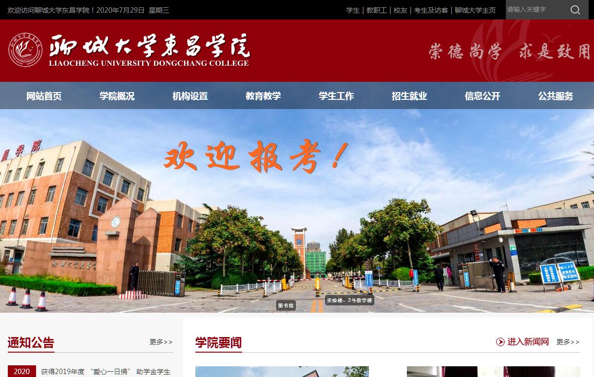 聊城大学东昌学院位于美丽的江北水城、运河古都--聊城市经济开发区,占地500余亩,净资产额5.5亿余元。学院于2002年4月经山东省教育厅批准设立,为聊城大学二级学院。2005年6月经教育部批准为独立设置的本科高校。2005年8月聊城市委、市政府研究决定,将具有百年办学历史的聊城教育学院、聊城师范学校并入聊城大学东昌学院,实现了优势互补,优化了资源配置。学院系全日制普通本科院校,面向社会招收普通本、专科学生,生源遍布全国28个省(市、自治区),在校生9189人。目前设有中文、经济管理、外国语、教育、数学与信息工程、影视传媒、化学生物、机电工程、音乐表演、美术设计、体育教学部、马克思主义教学部等12个系(部)。现有34个本科专业和16个专科专业,以工科为主,涵盖经济学、教育学、文学、理学、工学、管理学、艺术学等学科门类。学院坚持以提高教学质量为核心,严格教学管理,积极进行教学改革。依托聊城大学综合实力,共享聊城大学师资、实验、图书等丰富的教学资源,主讲教师90%以上具有硕士(博士)学位或中级及以上职称,同时聘请相关行政管理单位专家及企业技术骨干为学生授课,注重实践教学环节,实行案例教学。学院建立了实习实训基地82个,促进学生综合素质的提高及全面发展,为学生的就业和进一步深造打下坚实的基础。学院拥有先进的教学仪器设备、齐全的教学设施:高速宽带校园网、多媒体教室、高级视听语音室、各类专业实验室、计算机硬件实验室、计算机网络实验室、会计实训室、大规模琴房、画室以及国家二类田径场、球类场馆、大学生活动中心等。学院图书馆是国家首批CALIS(中国高等教育文献保障系统)会员馆,现藏有古籍图书1340册,其中:明版线装图书6册、清版线装图书1334册。另外,还藏有:民国版的线装图书1028册,1949年后线装图书670册。是山东省古籍保护工作先进单位,馆藏古籍成功入选《山东省珍贵古籍名录》。学院注重环境育人。校园环境幽雅,风格独特,为“省级花园式单位”。学生餐厅为“山东高校标准化食堂”,为学生提供一个良好的学习生活环境,是读书治学的理想园地。