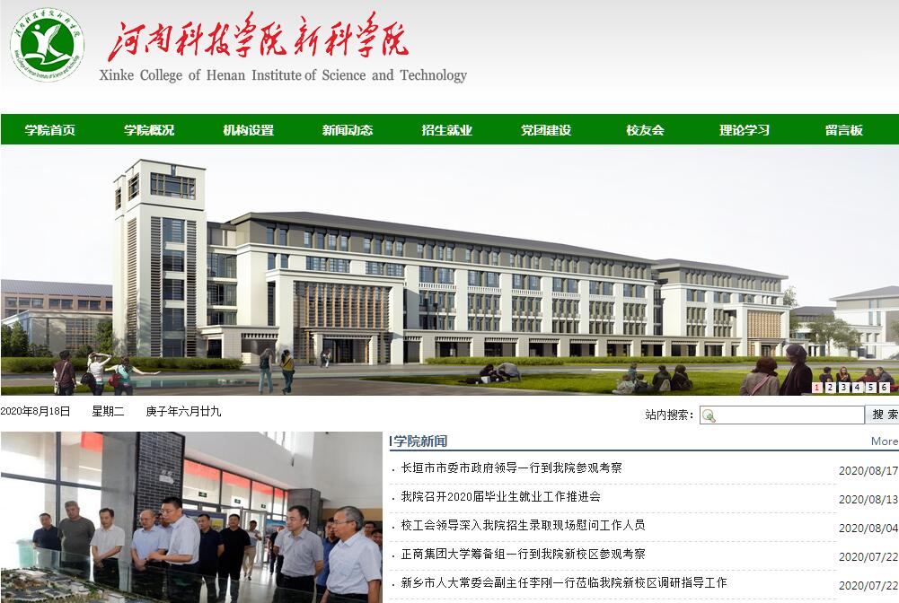 河南科技学院新科学院创建于2003年,是经教育部批准设立,按照新机制、新模式举办的独立学院,属于本科层次学历教育的全日制普通高等学校,具有学士学位授予权。学院地处中原名城新乡市,现有校区两个,老校区位于新中大道中段。新校区位于新飞大道南段,占地面积1500亩,按照国内一流校园标准高质量建设,为河南省重点建设工程,现已建成建筑面积20余万平方米,另有近10万平方米将于近期开工建设,学院办学主体已转移至新校区。学院教学设施齐全,建有生化类、机械工程类、文学类、经济管理类及公共计算机室、外语语音室等各类实验室100余个,校内外实习、实训基地136处,图书馆文献总量157万余册。目前有本科专业29个,其中河南省“综合改革试点专业”2个,已形成涵盖经济学、管理学、法学、文学、理学、工学、农学、艺术学等八大学科门类协调发展的学科专业格局。设有经济系、管理系、信息工程系、中文系、食品科学与工程系、生物与化学工程系、外国语言文学系、机械工程系、电气工程系、法律系、艺术系、思想政治理论教学部和体育教学部等13个教学系(部)。学院高度重视师资队伍建设,按照“引培结合、聘引同步”的原则,在培养自有师资的基础上,充分利用新乡市高校教育资源集中的优势,聘请河南师范大学、河南科技学院、新乡医学院等知名高校优秀师资,为学生授课,形成了一支以学院自有师资为骨干,驻新高校名师为支撑,行业(企业)专家为补充的高水平“双师型”教师队伍,为高素质应用型人才培养提供了可靠保障。现有专任教师644人,其中具有高级职称的教师208人,具有硕士及其以上学位的教师501人,全国优秀教师、省市级学术技术带头人、省青年骨干教师、省优秀教师、省文明教师等40余人。学院注重人才培养质量的提升。遵循“让家长放心、使社会认可、对国家有用”的人才培养理念,狠抓人才培养的各个环节,不断提升学生综合素质。近三年来,在全国大学生数学建模竞赛、全国大学生电子设计大赛、全国大学生英语竞赛、全国三维数字化创新设计大赛、“挑战杯”全国大学生课外学术科技作品竞赛等比赛中,累计获得国家级奖项74项,省级奖项418项;学院考研率也持续稳定在较高水平,先后有7个宿舍全部考取硕士研究生,起到了良好的社会反响,《河南日报》《河南青年报》、光明网等媒体进行了专题报道。学院高度重视毕业生就业工作。建院以来,共向社会输送了3万余名各类专业技术人才。近三年,学院毕业生年终就业率均保持在95%以上,位居同类院校前列。学院就业质量逐年提高,毕业生综合素质能力得到用人单位的普遍认可,部分毕业生已成长成为党政机关、科研院所、教育战线、企业一线上的业务骨干,为我国尤其是河南省的经济建设和社会发展做出了应有的贡献。2019年,我院毕业生汪欣在南京大学攻读博士期间,以并列第一作者身份和课题组其他成员的研究成果在英国《nature》期刊上在线发表。近年来,学院内强素质,外塑形象,各项事业快速发展,综合实力不断增强,社会声誉不断提升,招生录取分数连年攀升,2018、2019年普通本科招生分数线居于全省同类院校前两名,办学质量得到社会广泛认可。学院先后获得“河南省‘五好’基层党组织”“河南省先进基层党组织”“河南省优秀民办高校”“河南省高等教育教学工作先进集体”等荣誉称号。为进一步提高教育教学质量,办人民满意的高等教育,学院将继续坚持走“科学发展、内涵发展、和谐发展”的道路,以更加饱满的进取精神和更加蓬勃的昂扬斗志,凝心聚力,克难攻坚,为建设特色鲜明、国内一流的应用技术型大学而奋斗。