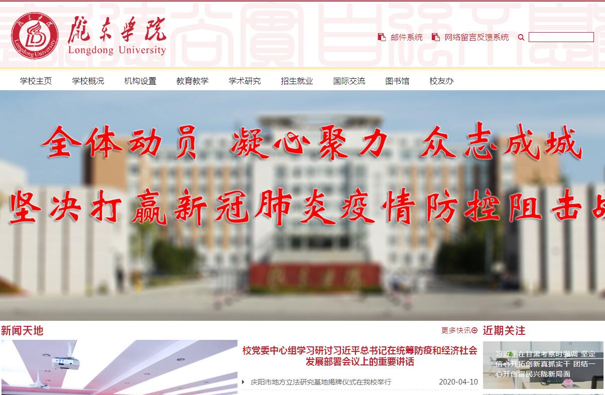 陇东学院是一所全日制综合性省属普通本科院校,地处甘肃省庆阳 市,前身是1978年经国务院批准成立的庆阳师范高等专科学校,其办学历史可追溯到1939年成立的国立 庆阳师范学校。2003年经 教育部批准成立陇东学院。学校现占地面积1400余亩,校舍建筑面积55万平方米。固定资产 总 值9.2亿元,教学仪器设备总值1.3亿元。馆藏图书150万册。现有全日制在校生15233人,面向全 国24个省市区招生。现有教 职工1037人,其中教授、副教授371人,其他各类正高职称人员60人;博士、硕士学位教师563人,其中博士和在读博士84人; 国 务院特殊津贴专家4人,省优秀专家、领军人才、人才工程、“园丁奖”和“成才奖”获得者53人,庆阳市科技功臣、领军人才6人;兼 任兄弟院校博士生导师1人、硕士生导师13人。学校设文学、历史与地理、外国语、教育、政法、经济管理、数 学 与统计、生命科学与技术、农林科技、音乐、美术、体育、电气工程、化学化工、信息工程、土木工 程、能源工程、机械工程、 医学院、马克思主义学院20个二级学院和继续教育学院,62个本科专业, 涉及文、理、教、工、农、管、法、医等11个学科门类。学校现有生物科学国家级特色专业,正宁中湾林场国家级理科实践 教育基地,土木工程、小学教育、农学、生物科学、历史学、经济学、石油工程、物理学8个省级特色专业,有机化学、动物生物学、 中国近现代史、文艺学4个省级教学团队,化学化工、土木工程、 动物生物学、电气工程、信息工程、农林科技6个省级实验教学示范 中心,23门省级精品课程,省级教学名师3人。学校建有作物遗传育种省级重点学科,应用化学省级重点培育学科 ,甘肃省旱地冬小麦种质创新与应用工程研究中心,陇东生物资源保护与利用实验室、黄土的工程性质及工程应用实验室2个省级高校 重点实验室,陇东历史文化研究中心、农耕文化与陇东民俗文化产业开发研究中心2个省高校人文社科重点研究基地,甘肃省体育社会科 学重点研究基地1个,与庆阳市共建陇东冬小麦工程研究中心、现代苹果工程技术研究中心、抗疏力技术应用研究中心、荒漠化防治研究 中心4个工程技术研究中心,组建有工业表面活性剂协同创新中心。学校与美国中央俄克拉荷马大学、北亚利桑那大学,意大利图西亚大 学等17所院校建立了校际合作交流关系,加入了《1+2+1中美人才培养计划》项目,先后派出学生到美国、白俄罗斯、乌克兰、罗马尼 亚、波兰等国留学。与兰州大学、西北政法大学、台湾中国文化大学、台湾昆山科技大学、台湾台北商业大学等院校签署了校际合作协议 ,每年选送优秀学生到兰州大学、西北政法大学、西安外国语大学等院校学习。与微软IT学院合作开展学生培养工作,与深圳艾比森光 电股份有限公司组建“艾比森班”,共同培养学生。学校扎根高天厚土的陇东黄土大塬,浸润“岐黄故里、周祖之乡”历 史文化底蕴,传承陕甘宁革命老区文化基因,致力于培养具有“人文情怀、科学素养、工匠精神”的应用型人才,为社会培养各类人才近 6万人。先后获“全国服务三农金桥奖”“全国绿化模范单位”“全国高校优秀校园文化活动成果奖”,被省委、省政府授予“全省文明单位” ,“陇东大讲堂”荣获“全省宣传思想文化工作创新奖”,大学生暑期“三下乡”活动多次受到教育部等部委表彰奖励。在第一届全国大学生 传统运动会上取得金牌数、奖牌数和团体总分第二的好成绩,成功承办了甘肃省第三届大学生运动会。“十三五”期间,学校坚持以党的十九大精神和习近平新时代中国特色 社会主义思想为指导,全面贯彻党的教育方针,围绕立德树人根本任务,坚持应用型办学定位,坚持开放合作,举红色旗帜,借区域资源 ,走特色之路,贯穿学科建设“一条主线”,促进办学方式和培养方式“两个转变”,实现学科专业体系、培养过程、体制机制“三个优化” ,力争人才培养、科学研究、社会服务、文化传承和对外交流合作水平“五个提升”。优化结构,转变方式,内涵提升,特色发展,建设 特色鲜明、优势突出、与区域经济社会发展良性互动的应用型大学。