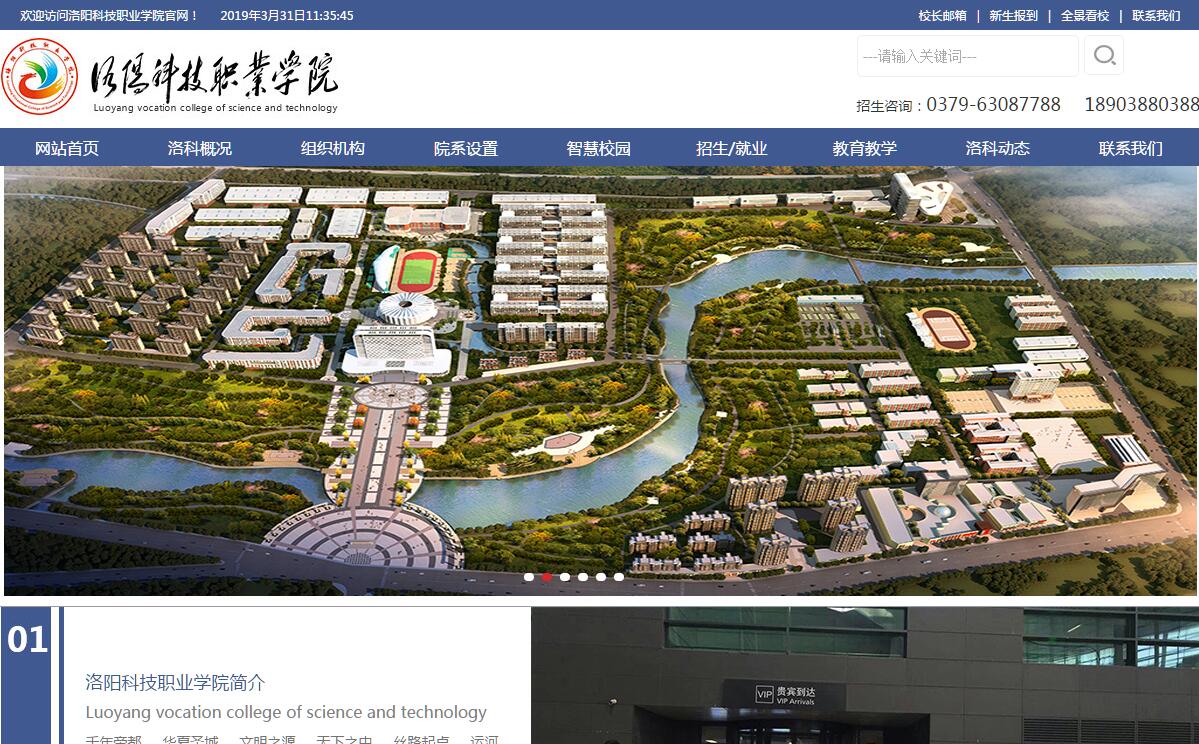 洛阳科技职业学院是经河南省人民政府批准,国家教育部备案,具有独立颁发国家高等教育学历证书资格、纳入全国统一招生计划的全日制普通高等职业院校。学院地处十三朝古都洛阳,北依邙山,中有涧河,南临310国道,浸染魏晋风流,揽尽汉唐风雅,自古以来就是钟灵毓秀、人杰地灵的宝地,是莘莘学子求学的乐园。学院始终坚持“以服务为宗旨、以就业为导向、以质量求生存,以特色求发展”的办学理念,秉承“厚德强能、求实创新”的校训,”团结奉献、拼搏实干”的校风,不断加强内涵建设,深化教育教学改革,提高办学水平和育人质量,已为社会培养输送各类技术技能型人才10余万名,形成了“校企结合、产教融合、注重实践、强化技能、全面发展“的办学特色。学院的社会声誉得到了广泛认可,先后荣获“全国应用型人才培养工程”“河南省先进单位”“河南省诚信办学创新教育先进单位”“安全文明校园”“就业最具保障学校”“全国高职电子商务专业技能联考首批试点院校”等荣誉称号。先后被认定为“国家职业技能鉴定所”“全国优秀技能人才培训基地”“河南省高级技能人才公共实训鉴定示范基地”“省级技能人才公共实训鉴定示范基地”“洛阳市高技能人才鉴定基地”“校企合作示范基地”“河南省优秀学校”。学院占地2200余亩,建筑面积26.7万平方米,仪器设备总价值6466余万元,资产总值5.15亿元,教学、科研、行政、实验实训、生活等服务设施一应俱全。学院不断加强信息化建设,实现了全络覆盖,促进了教学、科研、管理和校园生活充分融合,打造了统一的数据共享平台和综合信息服务平台,提升了行政办公的信息化水平和校务治理能力。学院拥有一支师德高尚、结构合理、素质较高、业务精湛的教师队伍。现有教职工近千人,专任教师占80%,其中副高级以上职称152人,占专任教师总数的23.13%。为提升学生的动手能力,学院还从知名企业和单位聘请了一大批技术能手和能工巧匠到校做兼职教师。学院围绕区域经济发展需要,根据市场需求设置专业,既有服务洛阳市老工业基地振兴的传统专业,也有为当地战略性新兴产业服务的新兴专业。目前,学院下设有9个二级学院,分为电子商务学院、信息工程学院、机电工程学院、汽车工程学院、国际金融学院、旅游文化学院、智能制造学院、艺术学院、继续教育学院。高职开设有32个专业,对口升学开设有33个专业,基本形成了科学合理的专业体系。学院实行“三保教育”,保成才、保证书、保就业,将宝贝放入保障程序,让学生满意、家长满意、社会满意。近3年,学院毕业生供不应求,就业率高,对口安置率95%以上,就业满意率98%以上。学院大工匠人力资源公司为毕业生提供终身就业服务。近年来,学院在校企合作方面积极探索,旨在通过校企合作谋求自身发展,实现与市场接轨。通过引企入校、工学交替、校企互动、订单培养等模式,强化对学生的职业精神、职业能力、人文素养的培养,实现“在工作中学习、在学习中工作”,努力提高育人质量,培养具有“工匠精神”的高素质技术技能型人才,积极构建产教融合、校企合作、工学一体的现代职业教育体系,积极推进现代学徒制试点。坚持走“校企合作、产教融合”发展之路,形成了独具特色的“洛科”模式。始终把创新作为引领学院发展的动力,把改革作为学院繁荣昌盛的必由之路。在改革中改进校企合作方式、扩大校企合作领域、完善校企合作机制、密切校企合作程度、提升校企合作水平,校企合作深入推进。通过校企合作有效破解职业院校“三难”问题(招生难、实习难、就业难),让学院围着企业发展转、专业看着企业设、学生满足企业学。学院与企业零距离,学生与企业零距离,岗位与企业零距离。学院先后与阿里巴巴集团、中国网库集团公司、北京华唐教育集团、北京云图软件有限公司、海尔集团、美的集团、格力集团、老板电器、中集集团等128家单位建立了良好的校企合作关系,建立了13个校内实训基地和106个校外实训基地。学院的数控专业通过几年的磨合与探索,基本形成了一套校企合作和人才培养的新模式。电商专业在2015年“双十一”期间,创造了网络销售量2.8亿元,占洛阳市“双十一”期间网络总销售量的52%以上;2016年“双十一”期间,学院电商专业的网络交易量达220万单,销量比2015年同比增加了4到5倍,2017年“双十一”期间,学院电商专业的处理订单量达710余万单,比去年增长3倍以上,2018年“双十一”参于销售额共计50.1亿元,位列全国高校电商创业首列,引得多家媒体竞相报道。同时电商专业又承担了政府的相关业务,建立了新安特色馆、宜阳特色馆、兰考特色馆和山东龙口特色馆。2016年格力的全国线上业务又落户到了学院。学院与阿里巴巴合作的跨境电商平台,已将中国的产品销往全球200多个国家。学院的计算机专业与北京云图软件有限公司合作,致力于计算机软件方面精英人才的培养。学院与洛阳舜谛文化传播有限公司合作,500余名学生参加大型实景演艺《武则天》的演出活动。通过校企合作,解决了人才培养与企业用工需求“两张皮”问题,整个校企合作产生了良好的经济效益和社会效益,呈现出良好发展态势,成效已初步显现。为积极响应国家大力发展职业教育的号召,更好的服务区域经济社会发展,在地方政