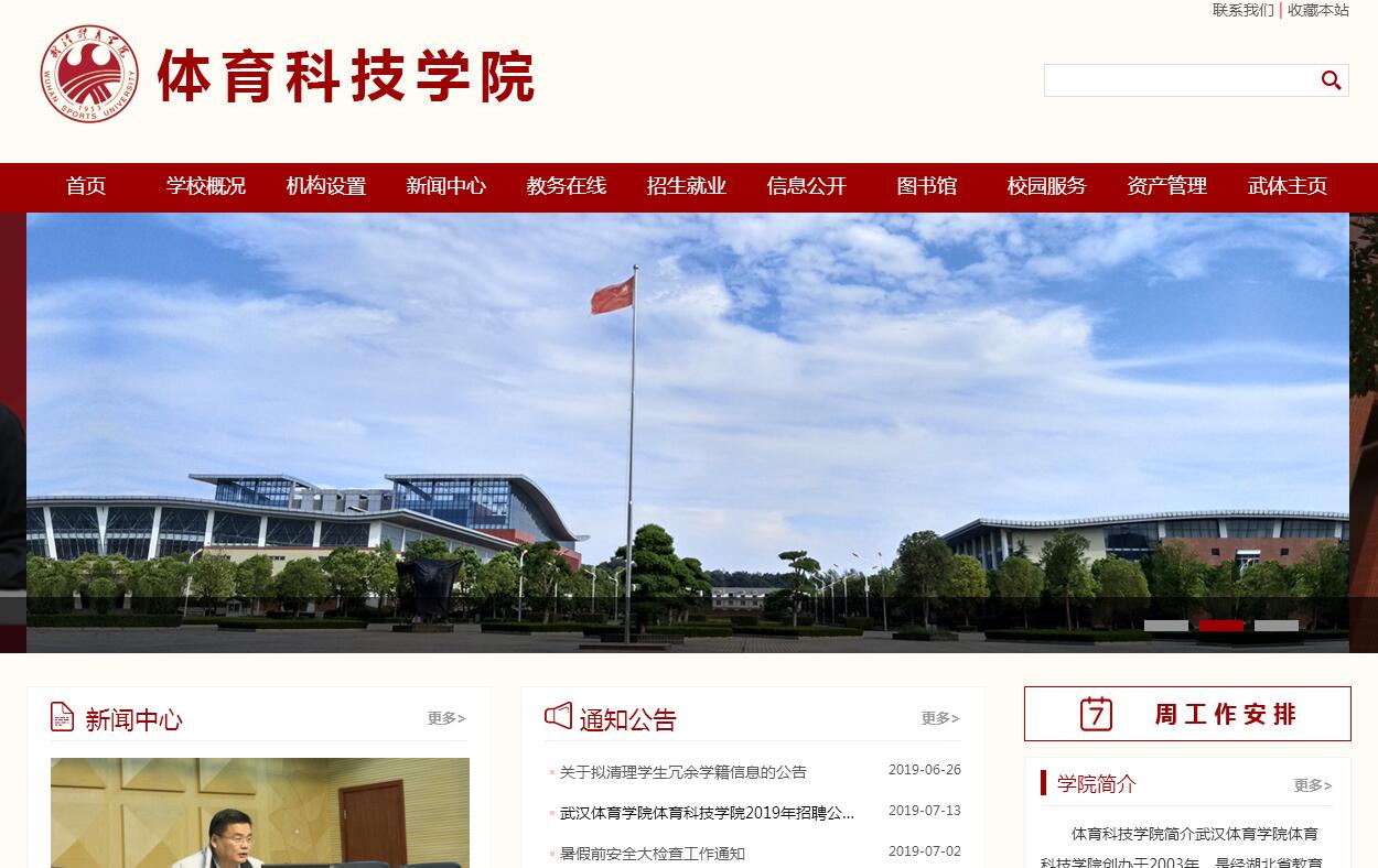武汉体育学院体育科技学院创办于2003年,是经湖北省教育厅批准、国家教育部审核的一所全日制本科体育类独立学院。学院座落在武汉市江夏区藏龙岛科技园区环岛路1号,风景秀丽,交通便利,是理想的学习生活园地。截止十二五期末,学院校区占地面积543亩,校舍面积超过21万平方米,教学仪器设备值近2500万元,拥有馆藏纸质图书30余万册,纸质期刊500多种。学院的举办方为武汉体育学院。武汉体育学院系具有六十余年办学历史和博士授予权的多科性体育大学,优质的办学质量和良好的社会声誉为我院办学提供了有力保障。作为独立办学实体,我院实行党委领导下的院长负责制。武汉体育学院推荐派出院领导、中层干部参与办学和管理,学院的教育教学接受武汉体育学院的指导和监督,武汉体育学院的师资、图书、教学训练、场馆及教学实验设备等资源与学院实行共享。学院专业建设发展迅速。“十二五”期间先后增设了英语、舞蹈学、休闲体育、网络与新媒体、运动康复、文化产业管理、播音与主持艺术、学前教育、广播电视编导等9个新专业,形成涵盖教育学、艺术学、经济学、管理学、理学、文学等6个学科门类的13个本科专业、1个专科的多学科专业格局。本科专业中已有5个获得学士学位授予权,2013年体育教育专业获批湖北省本科高校“专业综合改革”试点项目。近年来,学院以“质量工程”为引领,以人才培养方案改革和课程考试改革为抓手,系统推进人才培养方案及教学大纲修订,特色班、考研班建设,考试评价体系改革,教研室建设,师资队伍建设,教师能力提升,教学质量监控,实践教学环节优化等改革措施,师资队伍和教学管理队伍数量和结构不断改善,人才培养质量稳步提升,毕业生广受社会好评,就业率逐年提升。目前学院本专科在校生共计5700余人,其中本科生5000余人、专科生600余人。学生在校期间按体育科技学院的学籍进行管理,毕业颁发武汉体育学院体育科技学院毕业证书,符合学士学位授予条件的,颁发武汉体育学院体育科技学院学士学位证书。在校学生享有国家奖学金、国家励志奖学金及国家助学金评选资格,同时学院也设有各类奖学金及助学金,奖励和救助品学兼优的学生。学院学费及住宿费等费用按湖北省物价部门规定的标准执行。学院的办学定位是立足湖北,面向全国,立足体育,面向社会,力争建成以体育学科为主、多学科协调发展,专业特色鲜明的培养应用型人才的高水平大学。