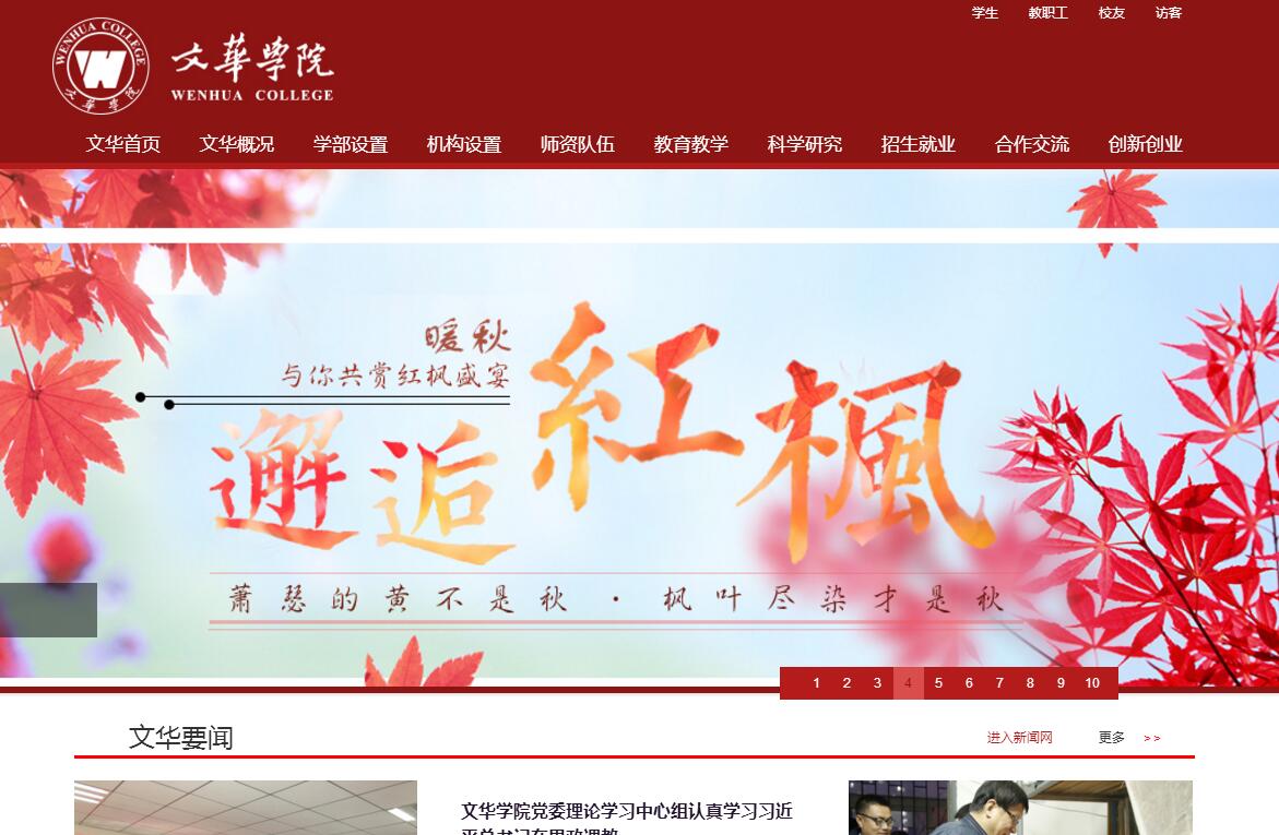 文华学院前身——“华中科技大学文华学院”, 是2003年5月经教育部批准的普通全日制高校,由武汉美联地产有限公司与华中科技大学共同举办。2014年5月,教育部批准学校转设为独立设置的民办普通本科学校,更名为“文华学院”。文华学院位于华中科技大学旁,直线距离不足一公里,坐落在武汉东湖新技术开发区“武汉·中国光谷”腹地创业街上,毗邻风光秀丽的东湖风景区。学校校园占地面积1340亩,绿树成荫,红枫成林,被誉为武汉“颜值最高的十所大学”之一,“秋天到文华看红叶”,已成为武汉市民的一种新选择。学校建筑总面积53.26万平方米,校园内现代教育及生活设施齐备,学校治学严谨,是读书治学的理想场所。吴文刚先生为文华学院董事长;中国院校研究会会长、华中科技大学学术委员会副主任、博士生导师、著名高等教育学家刘献君教授任校长;中国工程院院士张勇传教授担任名誉校长。文华师生共享华中科技大学优质教育资源,华中科技大学三分之一国家级教学名师及一大批优秀教师和干部在文华任教、任职。学校还聘任一批武汉名校著名学者、专家,担任学校、学部和系学术带头人。在办学过程中,坚持社会主义办学方向,全面贯彻党和国家的教育方针,确立“以学生为中心”的核心教育理念和秉承“博学笃志、本立道生”的校训,坚持教育家办学,倡导共同创造,实现共同发展;在教改中,优化结构,重点突破,守住根本,不断创新,在教职工、学生中形成了懂得尊重、承担责任,提升境界的价值追求。学校办学定位于建设高水平应用型大学,以“区域经济社会需求为导向”,立足湖北、服务中部、辐射全国,培养面向生产服务第一线,具有现代创新创业能力和高度社会责任感的高素质应用型人才。学校现有普通全日制在校学生14000余人,设置了本科专业39个、专科专业10个,涵盖工、管、文、法、经、艺术6大学科门类,初步形成“工学为主,多学科协调发展”的学科专业发展格局。学校面向全国28个省、市招生。学校还与美国、英国、澳大利亚等国家的多所著名高校建立了校际合作关系。学校在华中科技大学的帮助和指导下,建立了科学的教学质量保障体系。现有专任教师800余名,其中,具有副高级以上职称的专任教师353人,拥有博士、硕士学位的教师占74.9%,双师型专任教师占总数的40.8%。学校坚持科研与教学的紧密结合,主动服务地方经济和社会发展,建设了六大特色专业方向和湖北省转型发展试点项目中五个特色专业群,有一批省级精品课程和优质课程,有湖北省重点学科和战略性新兴(支柱)产业人才培养计划本科项目。设有湖北高校省级重点实验教学示范中心、湖北高校省级实习实训基地、湖北品牌发展研究中心、湖北省非物质文化遗产研究中心等省级机构。个性化教育深入人心、特色凸显,初步形成了 “三九个性化教育模式”:三种类型学生,即学术型、应用型、潜力型;三个关键点,即潜能、立志、空间;三个一工程,即一人一规划,一生一课表,一师一优课。学校努力探索为每个学生提供适合的教育,遵循个性化教育的路径:尊重学生,严格要求,科学指导,自主学习。创建多样性创新人才培养模式,实施个性化教育,努力营造有利于创新型、应用型人才健康成长的校园环境与氛围。学校个性化教育探索,吸引了潘懋元、周远清、顾明远、叶澜、王英杰、瞿振元等16位著名教育家到学校调研和指导,更加活跃了学术气氛,促进了个性化教育的探索。专家们说:“文华是一所有理想、有追求的学校,在这里每个人都可以找到自由发展的空间。”2013年3月,学校《独立学院本科学生个性化教育的探索与实践》的研究课题,获第七届湖北省高等学校教学成果一等奖。学校秉承华中科技大学人文素质教育优良传统,营造大学人文氛围,开设了“院士、名人、企业家”讲坛,杨叔子、李培根、罗俊、李德仁、杨家福、叶朝辉等20多位院士、校长与学生交流50多场次;“百家讲坛”主讲人王立群、易中天、于丹等知名学者,还有著名作家熊召政、方方,社会文化名人郭敬明、洪晃等先后在学校开坛讲学,激发了学生的创新创业热情,形成了良好学风。2017年我校学生参加各类学科知识竞赛、文体竞赛,获省市级以上802人次,其中国家级593人次。第七届全国大学生电子商务“创新、创意及创业”挑战赛特等奖3人次;2017CCTV“希望之星”英语风采大赛一等奖5人次;2017年全国大学生物联网设计竞赛一等奖3人次;第八届蓝桥杯一等奖4人次;2017年“贝蒂杯”全国校园体育舞蹈联赛(武汉站)一等奖3人次。近5年来,学校学生英语全国大学英语四级考试(CET—4)的通过率超过80%;考研录取率一直高于同类大学,占应届本科毕业生比例16%左右;其中考入北京大学、武汉大学、华中科技大学等国家“211”“985”重点大学的人数占录取人数近一半。学校的毕业生有较强的竞争优势,连续5年来,毕业生初次就业率一直保持在90%以上。文华学院先后被政府和社会机构、权威媒体评价为“全国十佳独立学院”、“全国首批创新?就业型大学”、“全国最受欢迎的独立学院”、“湖北省先进民间组织”、“全国先进独立学院”。近5年来,文华学院在中国校友会网《中国独立学院百强排行榜》、《中国民办大学百强排行榜》上,均排名第二位; 进入中国一流民办大学行列,荣膺中国五星级民办大学。201