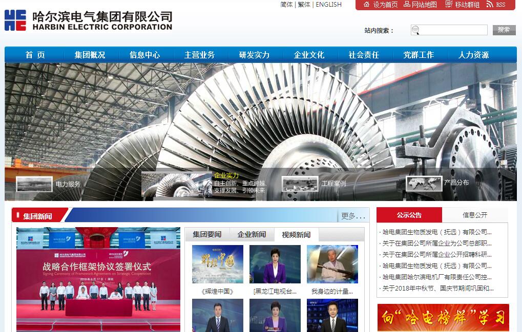 | 网站简介: 哈尔滨电气集团有限公司(简称“哈电集团”)是由国家“一五”期间苏联援建的156项重点建设项目的6项沿革发展而来,是为适应成套开发、成套设计、成套制造和成套服务的市场发展要求,最早组建而成的我国最大的发电设备、舰船动力装置、电力驱动设备研究制造基地和成套设备出口基地,是党中央管理的51户关系国家安全和国民经济命脉的国有重要骨干企业之一。哈电集团从诞生的第一天起,就肩负起了“承载民族工业希望,彰显中国动力风采”的历史使命。几十年来,作为共和国装备制造业的长子,哈电集团恪守使命,模范地履行着中央企业的政治责任、经济责任和社会责任,紧紧依靠科技创新不断提升核心竞争力,很好地发挥了中央企业的带动力和影响力,走出了一条独具特色的“引进、消化、吸收、再创新”的成功之路,实现了我国发电设备制造水平和自主创新能力的新跨越,实现了发电设备由中国制造向中国创造的转变,为国家电力建设作出了重大贡献。 |
