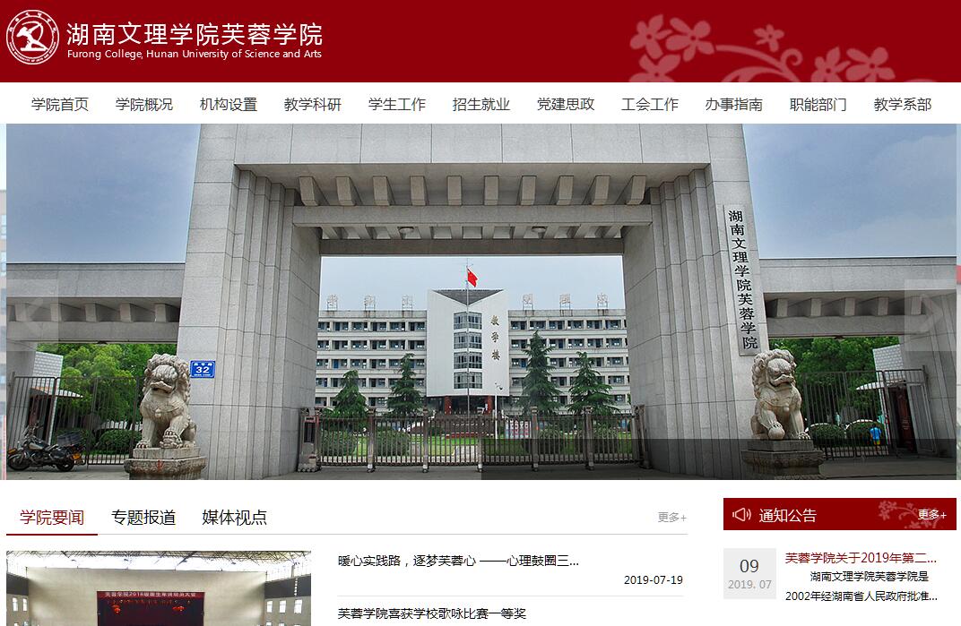 湖南文理学院芙蓉学院是2002年经湖南省人民政府批准,由湖南文理学院举办、教育部首批确认的实施全日制普通高等本科学历教育的独立学院,2004年顺利通过教育部办学条件和教学水平专项检查评估。学院坐落于常德市青年东路,由东西两个校区组成,占地面积500亩,建筑面积14万多平米,在校学生6700多人,专职管理人员60多人。校园环境幽雅,绿树成荫,拥有现代化的教学楼、实验室、图书馆、风雨操场、学生公寓,各类办学设施日臻完善。学院依托母体学校优质的教学资源办学,坚持“以学生为根本、以市场为导向、以质量为生命”的办学理念,把教育质量作为学校的立足之本,实施“素质+能力+特长”的人才培养模式,将学历教育与职业技能培养有机结合,面向区域经济和社会发展对人才的市场需要,着力培养和造就具有创新精神的本科学历层次的高级应用型技术人才和管理人才。学院以聘用母体学校的优秀教师为自己的专任教师队伍,师资力量雄厚,为学生提供优质教学服务。学院不断强化实践教学,成立了20多个学生社团和协会,建立了一批学生实践、实习基地,确保学生综合素质和职业技能的全面提高。我院学生参加湖南省普通高校非计算机专业学生计算机应用水平等级考试,一次性通过率达到了95%以上,一直保持了全省领先地位。在全国大学生电子设计竞赛、全国大学生英语竞赛、全省大学生英语演讲比赛等专业比赛活动中共获得十四项大奖。学院毕业生一次性就业率达85%。学生在校期间按规定享受湖南文理学院全日制普通本科学生同等待遇,毕业时颁发教育部注册认可的湖南文理学院芙蓉学院普通本科毕业证书,符合学士学位授予条件的,2012届之前的毕业生,由湖南文理学院授予学士学位,2012届(含2012届)之后的毕业生,由芙蓉学院授予学士学位。