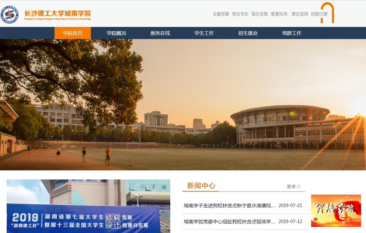 长沙理工大学城南学院是经教育部批准由长沙理工大学按新机制、新模式与社会力量合作举办的本科层次的独立学院。学院座落在长沙理工大学美丽的金盆岭校区,具有得天独厚的资源优势和一流的办学条件。这里功能完整,设施齐全,环境优雅,文化底蕴深厚,交通方便,是一个读书学习的好地方。学院自2002年成立以来,在母体学校、上级主管部门及社会各界的大力支持下取得了飞速发展,办学实力不断增强,办学水平和教育质量稳步提高,办学影响逐步扩大,毕业生得到用人单位和社会认可,就业率处于独立学院前列,考研录取率达到全国高校平均水平,大部分学生入学分数线接近或超过二本线,已具有良好的办学基础和发展平台。2010年被评为全国先进独立学院。学院实行董事会领导下的院长负责制。设有土木工程(建筑、道路、桥梁、隧道)、水利水电工程、港口与航道工程、电气工程及其自动化、热工过程自动化、热能与动力工程、汽车服务工程、机械设计制造及自动化、艺术设计、工程管理、物流工程、计算机科学与技术、通信工程、电子信息工程、会计学、金融学、国际经济与贸易、英语、法学、新闻学、市场营销和财务管理等31个本科专业和专业方向。在校本科生7000余人。学院招生计划纳入国家普通高等教育招生计划,面向全国招生。学生在校期间,与长沙理工大学本科学生共享师资、设备、就业网络等优质资源。学生学习期满,成绩合格,颁发长沙理工大学城南学院本科文凭及相应的学士学位。条件成熟者还可到与长沙理工大学对口合作的国外高校去深造,或报考硕士研究生。学院在办学过程中始终坚持全面发展的人才观、注重特色的质量观和以人为本的教育观,按照“全面发展,突出专长,强化实践,着重应用”的人才培养目标,不断深化教育教学改革,推进素质教育,实施“5+1+2”人才培养模式,构建学校、家庭、社会三位一体育人体系,创新大学生思想政治教育和校园文化建设,扎实培养学生的基础素质和实践能力,努力造就适应二十一世纪社会经济发展需要的应用型高级工程技术人才和管理人才,积极为国家和地区经济建设和社会发展服务,为交通、电力、水利等行业建设服务,为科教兴国作贡献。已产生良好的育人效应和强烈的社会反响,教育教学成果多次被《中国教育报》、《中国青年报》、《湖南日报》、《潇湘晨报》、《长沙晚报》等主流媒体报道。面向未来,学院将本着“质量立校、人才兴校、特色强校、立足湖南、面向全国”的原则,充分依托长沙理工大学学科专业优势和资源优势,强化教育教学管理,注重“因材施教,学以致用”,以满足广大学子及社会的需求。同时,发挥和交通、电力、水利行业联系紧密的优势,积极推行校企合作,吸引相关企业参与办学,探索具有自身特点的办学模式,形成城南学院的鲜明办学特色。我们坚信:一条崭新的铺满鲜花的道路已经展现在我们面前,我们将承朱张之绪,取欧美之长,华实并茂,兰芷齐芳,振我民族!扬我国光!