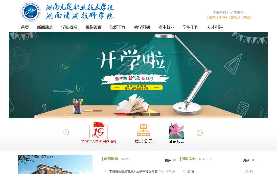 潇湘技师学院前身为永州市高级技工学校,2009年3月经省人民政府批准升格为潇湘技师学院。湖南九嶷职业技术学院是在原“九嶷山学院”的基础上发展壮大起来的。1980年,原国家学部委员、北京农业大学第一任校长、著名农林学家、教育家乐天宇教授回家乡创办,系新中国建立后第一所民办高校。老一辈无产阶级革命家肖克、王首道、李维汉、曾三以及著名科学家钱学森、周培源等担任学院董事。2005年3月经省人民政府批准,正式成立“湖南九嶷职业技术学院”,隶属湖南省教育厅管理,纳入普通高等院校序列,面向全国计划招生。2010年5月经省人民政府批准,由民办转为公办,并与潇湘技师学院合并办学,实行两块牌子一套人马。两院资源整合后,融学历教育和技能培训为一体,全面推行“学历证”和“职业资格证”双证制度,是一所以工科类为主的高职院校。目前学院设有四系两部(机电工程系、汽车工程系、服装艺术系、管理工程系、公共课部和思政部),有教职员工268人,教授、副教授职称47人,双师型教师142人,开设机电一体化、汽车检测与维修、电子商务、数控模具、服装设计、室内设计等20个热门专业,在校学生4000余人。近年来,学院不断深化教育教学改革,注重内涵发展和特色发展,在机电工程系推行“双元制”教学改革,在汽车工程系推行一体化教学改革,在服装艺术系推行校企深度合作改革,在管理工程系推行专业群教学改革,在公共课部推行“双语教学+人文素养”教学改革,在思政部推行“课堂教学+专题讲座+爱国主义教育基地”改革,取得了良好的成效,受到了上级的好评。学院是国家级高技能人才培训基地、国家职业教育示范建设基地、国家产教融合试点建设单位、湖南省职业教育先进单位、精神文明建设单位、全省校企合作研修平台试点建设单位和永州市人才引进工作先进单位等。学院新校区项目建设用地300亩,于2014年5月正式开工建设。第一期投资规模约5亿元左右,总建筑面积16万平方米。现已建成教学楼4栋、实训大楼2栋、图书馆1栋、学生宿舍楼5栋、学生食堂1栋,能容纳4000余名学生学习和生活,建设了湖南省职业院校第一所智慧校园。学院于2016年9月16日顺利乔迁新校区。主要实现“两个目标”。一是2020年,在校学生规模突破6000人,计划新修学生宿舍两栋。二是力争建成全国示范性技师学院。为此,我们将集中精力建设“五个一工程”,即一流的专业、一流的大师、一流的工匠、一流的管理、一流的校园。