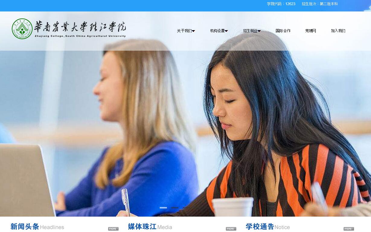 华南农业大学珠江学院是经国家教育部批准设立,实施本科层次教育的独立学院。学校办学定位:致力于建设成为一所立足广东区域经济发展,以财经、管理为重点,现代应用艺术为特色,多学科协调发展的国际化水平较高的应用技术大学;形成了“四个特色”:面向市场的办学特色,技术与学术并重的教学特色,讲求实际的育人特色,国际化的发展特色。办学以来,根据广东经济社会发展对人才的需求和自身的办学特色,学校设置了会计学院、经济管理学院、设计学院、传媒学院、外国语学院、信息工程学院、人文学院共7个二级学院及公共基础课教学部、思想政治理论课教学部、国际教育学院和终身教育学院;现有30个本科专业,目前在校生12000余人。华南农业大学被纳入广东省建设“双一流”的一所高校,她秉承“修德、博学、求实、创新”的优良传统,经过百余年的发展,已成为学科门类齐全的综合性大学。作为珠江学院的举办方之一,华南农业大学以其丰富的文化底蕴和优质的教育资源对学院的教育教学质量负责,择优选派任课教师及管理人员参与学院的建设与管理,不断提高应用型人才培养质量,促进学院更好地转型发展。学校坐落于广州市著名的生态风景区——从化区,紧邻街北、大广高速和105国道,南距广州市区45分钟车程,交通十分便利。现有校园占地面积700余亩,校舍建筑面积20万平方米。校园依山傍水,荔枝林环绕,是读书治学的理想场所。学校建有完善的教学楼、图书馆、专业实验室、标准体育场等教学设施,为学生提供了成才保障;建立了一系列严格的教学、生活管理和安全保卫制度,为莘莘学子在校安心学习和生活提供了良好环境。目前已建成宿舍(4-6人间,配空调和网络接口)、食堂、超市等生活配套设施。学校多媒体教学,设施完善,设备先进。教学楼、行政楼、实验楼和图书馆已覆盖无线网络。图书馆总建筑面积1.83万平方米,藏书120余万册,中外文报刊500余种。学校以培养具有专业素养、现代思维、国际视野、健全人格的高级应用型人才为目标,各学院结合专业特点不断创新性地改革人才培养方案,初步形成了各具特色的人才培养模式:会计学院——“基本规格+特色培养”的人才培养模式,构建与实施“学、训、赛相融,知、能、用并行”的教学体系。经济管理学院——“学校+企业+社会”:促进应用型人才培养;“微留学+海外留学升硕”:拓展未来发展空间;“学科竞赛+创新创业”:实现自我和个性化成长。设计学院——“专业基础教学+专业工作室+综合实验室+校外实践基地”构成的一体化协同人才培养模式。2014年,该院的艺术学科在广州日报主办的“学科实力排行”中,位列广东省独立学院第1名。传媒学院——“专业双基+模块实训+内外联动+艺术引领” 的立体化培养模式,通过项目驱动和精品导向,打造新媒体时代传媒艺术高端应用型人才。外国语学院——“大基础,多方向”、“平台+模块”的人才培养模式,重视发挥“三个课堂”实践教学的作用,培养应用复合型、技能型、国际化的外语人才。2011级英语专业TEM-8为26.9%,高出全国独立学院平均水平。信息工程学院——“项目驱动,行业参与,强化实践,双证双通”的人才培养模式,努力体现本院理工学子超越重本学生的动手能力、以及超越高职高专学生的技术和技能的能力。人文学院——“通识教育课程+专业核心课程+专业(方向)技能课程+专业实践课程”四个板块有机合成的课程体系,培养具备“传统的听说读写技能+先进的现代传播技术”的应用型汉语言文学专业人才。学校大力推进素质教育,紧密结合专业理论知识和实践课程,开展形式多样、内容丰富的社团活动,丰富学生第二课堂,提高学生的综合素养。近年来在全国大学生各类学术、科技、文体等竞赛中披“金”挂“银”。2013年,荣获“飞思卡尔杯”全国特等奖;2014年,荣获第23届时报金犊奖,全国大学生数学建模竞赛全国赛二等奖,广东省赛区一、二、三等奖,第8届“用友杯”全国大学生会计信息化技能大赛全国决赛一等奖、广东赛区一等奖;2014年,荣获广东省大学生翻译大赛口译比赛三等奖;学创杯全国大学生创业综合模拟大赛二等奖,挑战杯全国大学生网络虚拟运营创业专项赛三等奖;2015年,我院学子林业鹏获MOS大赛全国特等奖。本着“以生为本”、“帮助学生成长成才”的理念,学校设立了终身教育学院和大学生职业发展中心(CDC)两大平台。CDC推进校企合作,打造就业“高速公路”。同时面向全院学生提供全程(大一至大四)职业发展与生涯规划辅导,帮助学生树立人生奋斗目标和职业发展方向。依托终身教育学院的深造平台,引进国际优质教育资源,如Oracle(甲骨文)学习中心、SAP-ERP特色班等,发挥中外合作办学优势,提升学生自身职业素养和职业资质,不断增强自己的就业竞争优势。近年来,学院毕业生总体就业率达99.42%,位于同类院校前列。学校设有国际教育学院,开设有“4+1”本硕连读项目、ACCA(特许公认会计师)国际认证项目、美国威斯康辛大学(含麦迪逊分校)本科直达项目等留学教育和国际认证项目,并于2015年新增加拿大海外课堂项目。目前各项目毕业留学生近80人,在读学生近200人。近年,“4+1”项目学生获得了英国曼切斯特大学、拉夫堡大学、纽卡斯尔大学、利兹大学;澳大利亚悉尼大学、昆士兰大学、新南威