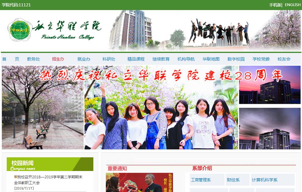 | 网站简介: 私立华联学院,另称广东华联大学,座落于广州天河区东圃小新塘合景路,创立于1990年,由华南理工大学、华南师范大学、暨南大学、广东技术师范学院(原广东民族学院)等广州地区部分普通高校离退休教授联合创办。学院于1994年4月26日经广东省人民政府正式批准成立,具有学历教育招生资格的民办普通高等学校;2009年,学院经广东省教育厅批准,学院取得了招收外国留学生的资格。据2016年1月学校官网显示,学院面积600多亩,在校学生9000人,专任教师230人(包括外籍教师13人),兼任教师202人,设有11个系,35个专业,并设有专事成人高等学历教育和各种考证培训的继续教育学院,学院与华南师范大学、华南农业大学,广东外贸外语大学等高校合办相沟通自考本科学历教育。 |