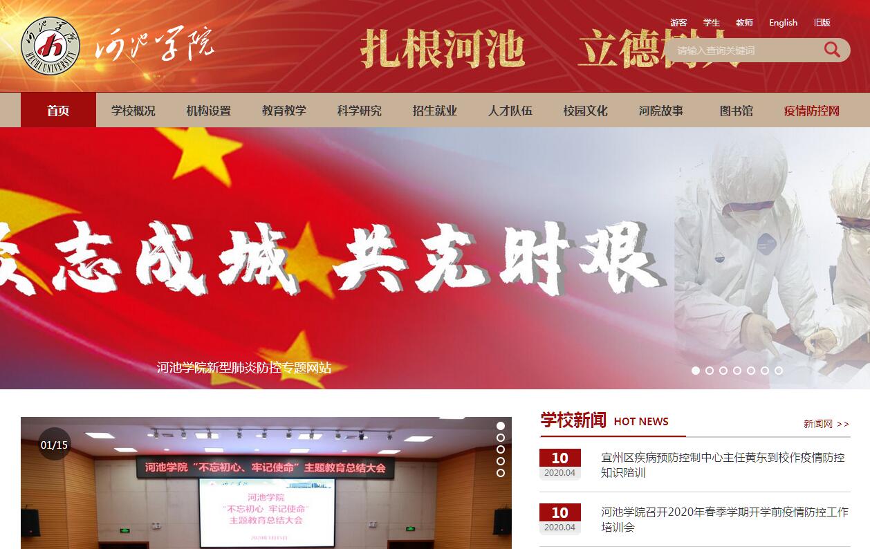 河池学院是2003年4月经教育部批准成立的全日制普通本科学校,实行“自治区与河池市共建,以自治区为主”的办学体制,是自治区本级财政全额拨款事业单位。学校坐落在风景秀丽、交通便利的桂西北历史文化名城、全国优秀旅游城市、壮族歌仙刘三姐的故乡——广西河池市宜州区,校园北依会仙山,南临龙江河,为师生员工提供了良好的教学、科研、学习和生活环境。学校前身是创建于1951年的广西省宜山师范学校,历经广西宜山专区师范学校、柳州师专、广西河池地区宜山师范学校(后更名为广西宜州民族师范学校)、河池师范高等专科学校等办学阶段,2003年4月经教育部批准成立河池学院,有着近70年的历史底蕴。2011年12月,学校通过了教育部本科教学工作合格评估。2013年,学校获批广西新增硕士学位授予单位立项建设。2016年初,学校成为广西层面整体转型发展试点高校。学校校园占地面积近600亩,有东、西两个校区。校园建筑面积40多万平方米,教学科研仪器设备总值1.76亿元,生均超过1.3万元。校外实践基地165个,校内基础实验室(实训中心、实训室)197个。馆藏图书130万册(含电子图书)。校园内WIFI达到全覆盖,学生公寓实现空调化。学校以文学、理学、教育学为主,形成文学、理学、工学、教育学、艺术学等多学科协调发展良好态势。现有13个二级学院,48个本科专业,12个专科(高职)专业,涵盖经济学、法学、教育学、文学、历史学、理学、工学、管理学、艺术学等9大学科门类,形成了化工与生物技术类、教师教育类、经济与管理类、机电信息类、文化创意与传播类和数学与统计类6大学科专业群。其中汉语言文学是国家级特色专业建设点,民族学、生物化工是广西重点学科,文艺学、应用化学是广西高校重点建设学科、中国现当代文学是广西高校优势特色重点学科,桂西北少数民族非物质文化资源研究中心、人才创作培养基地、广西人口较少民族发展研究基地是广西高校人文社会科学重点研究基地。学校还有各级各类重点实验室、科技创新平台、自治区级教学团队等多个优秀学科专业平台。学校在职教职工722人,其中专任教师570人,高级职称180多人,硕士以上学位431人,具有硕士研究生导师资格14人,有全国优秀教师、广西高校教学名师等一批优秀骨干教师。全日制在校生13000人,生源分别来自广西、山东、四川、海南、江西、福建等全国19个省(自治区、直辖市)。面向泰国、巴基斯坦、乌兹别克斯坦、尼日利亚等16个国家招收外国留学生。继续教育学生4100人。学校是广西专业硕士学位点授予立项建设单位,其中中国语言文学是硕士学位授予一级学科建设点,教育、旅游管理、体育、艺术系专业硕士学位重点建设专业,马克思主义理论、工程(环境工程、控制工程、计算机技术)、教育(学科教学英语)、应用统计为重点培育专业。学校正力争“十三五”期间建成为硕士专业学位授予单位。学校坚持以“扎根河池,立足广西,面向全国,强化应用,开放合作,突出特色”的办学指导思想,秉承“质量立校、人才强校、特色兴校、文化铸校”的办学理念,在转型发展、创新创业、服务社会人才培养等方面实现新发展。学校立足地方,走产学研用融合、校企合作转型发展之路。依托河池的中国有色金属之乡、中国水电之乡、世界长寿之乡、世界铜鼓之乡、刘三姐故乡的“五乡”丰富自然物质资源和民族文化资源,合作共建长寿养生旅游学院、桂西北少数民族传统体育传承中心、刘三姐艺术学院、新闻系、马克思主义学院等校地合作平台;共建吉翁电子(深圳)有限公司•河池学院技术研发中心、深圳爱汇百变教育集团•河池学院教育机器人技术研发中心;与深圳大学合作共建理论经济学博士后科研流动站博士后合作研究基地、“一带一路”国际合作发展(深圳)研究院河池分院。学校坚持学科建设为引领,不断提升科学研究水平。先后承担省部级以上科研项目45项,厅级项目458项,获得国家授权专利189项,其中国家级项目25项,获广西自然科学奖1项,获广西社会科学优秀成果奖10项,《河池学院学报》被评为全国高校优秀社科期刊。学校深化教育改革,积极探索产教融合、应用型人才培养新模式。依托校企校行合作平台,推动企业参与人才培养全过程,把创新创业教育融入人才培养主渠道,不断强化专业建设内涵式发展。实施了卓越写作人才、卓越教师等人才培养模式的改革,并广泛开展课程置换、学分转换、弹性学制改革,实施全程导师制培养等方式,深化人才培养模式改革,逐渐形成以需求为导向、岗位职业能力紧密衔接的应用型人才培养为中心,以校企合作、产学研融合为途径,积极践行协同创新、协同育人的人才培养新模式。近五年来,获得自治区级教学成果奖17项。学校坚持“文化铸校”,着重打造校园文化品牌。根据白裤瑶等少数民族生活而自编自导自演的民族舞蹈《唱山歌》、《甜蜜蜜》、《白白的裤子 黑黑的哥》连续三届荣获全国大学生艺术展演一等奖。自编自导自演的《刘三姐》大型歌舞剧多次巡演,获得社会好评。学校独竹漂等红水河流域民间传统体育项目多次荣获全国赛事一等奖,受到中央电视台、新华网、美丽天下网等国内多家媒体的持续关注。学校共有64个社团,校园文化异彩纷呈,引起凤凰网等重要媒体的关注。弦歌不辍,薪火相传。学