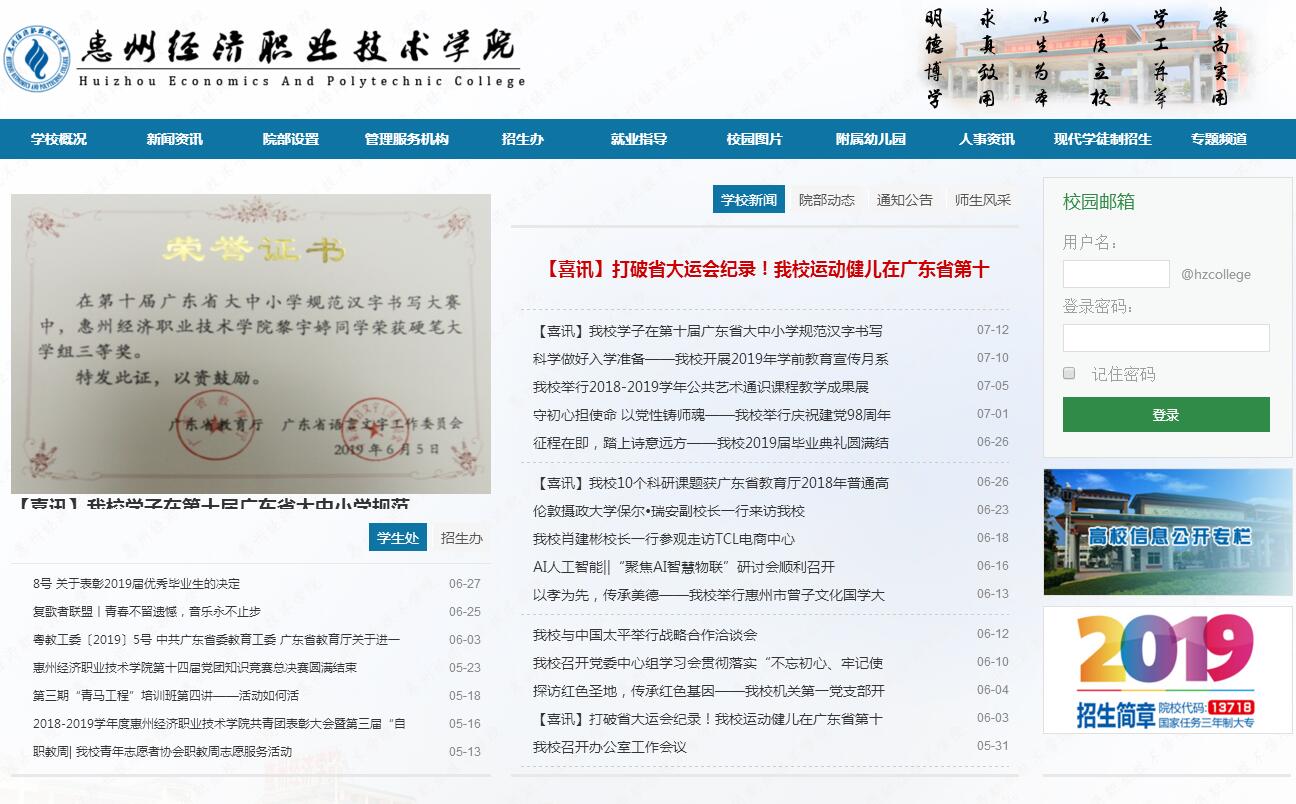 惠州经济职业技术学院创办于2004年3月,是经广东省人民政府批准、国家教育部备案的一所具有独立颁发国家承认三年制大专学历文凭的全日制普通高等院校。学校面向全国招收国家任务大学专科学生。学校地处经济发达、交通便利的珠江三角洲,位于素有“岭南名郡”、“粤东门户”之称,荣获“全国文明城市”、“中国优秀旅游城市”、“国家园林城市”称号,被誉为“半城山色半城湖”风景如画的广东省历史文化名城——惠州。随着深莞惠一体化发展格局的形成,惠州得毗邻香港、澳门之利,将成为珠江口东岸区域服务和创新的中心。作为广州、香港、深圳连接粤东、福建和江西的交通要冲,美丽的惠州吸纳了山之仁、水之智,集古老而现代的文化气息于一体,就像一颗镶嵌在富饶的中国南海边的璀璨明珠,已拥有石化名城、数码之都、旅游胜地等著名名片,是宜学、宜商、宜业、宜居的上选佳地。学校坐落于惠州市惠城区马安新乐教育园区,占地面积700余亩,建筑面积21万多平方米。周边交通便利,拥有宽敞明亮的教学大楼、气势宏伟的图书馆、先进的教学仪器设备、完善的体育运动设施、标准公寓式学生宿舍等设施。学校素以教育管理严格、教师教学严谨及文化气息浓郁著称,素质养成与技能培养相得益彰,形成了“诚信、勤奋、创新、精进”的良好学风和“浓厚的政治气氛、浓厚的学习研究气氛、浓厚的文娱体育气氛、浓厚的文明和谐气氛”的校风。校园内树木葱茏,碧草如茵,处处鸟语花香,是莘莘学子潜心求学致知的理想之地。目前,学校有财经学院、工商学院、信息工程学院、外国语学院、艺术设计学院、汽车与机械工程学院、建筑工程学院、国际教育学院、旅游学院、创业文化学院、继续教育学院、体育学院、马克思主义学院、公共课部等十三院一部,设有会计、财务管理、投资与理财、互联网金融、国际贸易实务、工商企业管理、市场营销、物流管理、旅游管理、酒店管理、物联网应用技术、计算机应用技术、计算机网络技术、应用电子技术、软件技术、通信技术、智能产品开发、电子商务、商务英语、应用英语、商务日语、文秘、广告设计与制作、服装与服饰设计、动漫制作技术、幼儿发展与健康管理、机械设计与制造、数控技术、模具设计与制造、汽车检测与维修技术、汽车电子技术、建筑室内设计、建筑工程技术、工程造价等34个专业,涵盖经济、管理、工科等协调发展的多个领域。现有在校生11000余人。学校拥有一个配置合理、结构优化、经验丰富的教学团队,打造了一支高素质、敬业爱岗的“双师型”教师队伍。学校始终坚持“以生为本、以质立校、学工并举、崇尚实用”的办学理念,秉承“明德、博学、求真、致用”的校训,确立了既为地方经济和社会发展服务又“立足惠州、辐射广东、面向全国”的办学定位,以培养高素质、高技术技能型人才作为培养目标,凸显前瞻性、职业性、实用性的办学特色,形成“学校专业、工厂实业、学生就业三业对接,理论教学与实践教学双轨并行,教学、实训、技能鉴定和生产经营四位一体”的教育教学模式,成功摸索出了一套符合高职教育发展规律的“43334”治校方略,即坚持办学理念四句话不动摇,实施“学校总体发展规划、校园建设规划、专业建设与师资队伍发展规划”的三大战略不松懈,紧扣“以模式引领发展、以管理促进质量、以软实力提升硬实力”的三大办学方针不放松,推行“班有先进党员,系有战斗堡垒;系有精品课程,院有特色专业;系有教学名师,院有创新团队”的三大实施路径不改变,把学校发展为“学生喜爱、教师留恋、同行认可、社会满意”的特色高职院校的办学四大目标不落空。在“43334”治校方略的基础上,学校继续开拓进取,革故鼎新,进一步形成了“六个五”育人体系,得到了上级教育主管部门的认可与好评。办学以来,学校教学坚持以学生就业为导向,以社会相关行业、知名企业为依托,面向市场,走合作办学道路,推行“三业对接,双轨并行,四位一体”的教学模式,相继建立了安东尼服装工程系实训工厂、金融实训中心、工商学院物流中心等17个高起点、高水准的校内实践基地,120多个校外实训基地;大力实行产、学、研相结合,实施“订单教育”和“双证教育”,采取“外语+专业+技能”的培养模式,学生毕业时可取得大学专科毕业证、英语等级证、计算机等级证、职业技术资格证、汽车驾驶证等证件。毕业生就业率高,社会评价良好。学校与众多知名企业签订了长期、稳定、良好的定向培养和实习实训就业协议,学生就业前景广阔,毕业后有充分的就业保障。数年来,学校毕业生就业率均高于全省同类院校平均就业率,近三年均超过98%,名列全省同类院校前茅。经过多年的稳步发展,学校形成了集普通高等职业技术专科教育、成人高等学历教育、国际学历教育于一体的办学格局,与国内外名校合作开办了“专升本”和成人教育大专脱产班与函授班,并建立了由国家人力资源和社会保障部授权的“国家职业技能鉴定站”,形成了为学生和社会提供多层次、全方位的专业技能和职业资格考证服务体系。学校被指定为广东省中小企业局培训示范基地和惠州市高技能人才实训基地,2012年又被广东省人力资源和社会保障局批准我院由“国家职业技