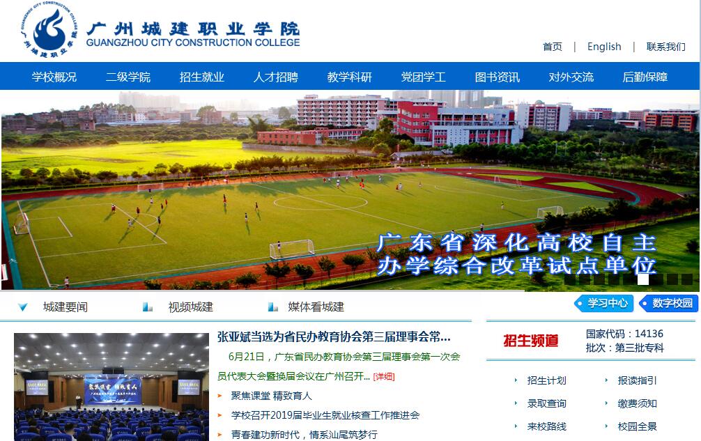 广州城建职业学院是经广东省人民政府批准、国家教育部备案的全日制普通高等职业院校。学校起源于1960年广州市建筑工程局主办的广州业余建筑工程学院,2007年在原广州大学城建学院基础上独立设置的工科类民办高职院校。学校位于广州市从化区,校园环境优美,办学条件优越,基础设施完备,服务保障高效。校园面积约1355亩,建筑面积约45万平方米,图书馆馆藏纸质图书约113.7万册,电子图书30多万册,建有千兆主干带宽、10G出口带宽网信息化校园系统。学校2012年以优异成绩通过了广东省高职院校人才培养工作评估,是教育部现代学徒制试点高校、教育部职业院校数字校园建设实验校、全国高校创新创业教育示范学校、广东省大学生创新创业教育示范校、广东省依法治校示范校、广东省节能型示范高校、广东省深化高校办学自主权综合改革试点单位、广东省教育厅自主招生试点院校,是全省唯一获批开展四年制应用型本科人才培养试点的民办高职院校。2018年广州日报高职高专排行榜位列民办院校第3位;2018年度高等职业教育“创新强校工程”考核在全省高职院校排名第20位,民办高职院校排名第1位;金苹果2019年中国高职高专院校综合竞争力排行榜排名第262位,位居全国民办专科院校第4位。学校现有建筑工程、信息工程、机电工程、经济与管理、艺术与设计、外语外贸、人文、创业教育和继续教育9个二级学院,开设了建筑工程技术、软件技术、机电一体化技术、市场营销、环境艺术设计、商务英语、网络新闻与传播等50个专业,其中建筑工程技术是省级一类品牌专业和重点专业,机电一体化技术、市场营销是省级二类品牌专业,工程造价、国际经济与贸易是省级重点专业。学校现有全日制在校生19000余人,近三年年均录取数超过7000人,报到率高达90.16%,位居全省民办高校前列,毕业生就业率均保持在99%以上,荣获“广东省高校毕业生就业工作先进集体”称号。学校有专兼职教师1000余人,其中高级职称教师占28.49%、博士及硕士研究生学历学位教师占50.6%,教师队伍中有享受国务院政府特殊津贴专家、国家教学名师、广东省教学名师、劳动模范和南粤优秀教师、优秀教育工作者等先进代表。学校积极探索“产教融合、校企合作”的协同育人机制,组建了以广州天马集团和广州市建筑集团为主导、行业协会为依托、名优企业为基础的广东城建职业教育集团,联合东方雨虹等上市名优企业共建集教学、培训、职业技能鉴定和技术服务为一体的现代建筑技术职业技能公共实训中心,与政府、行业、企业联合打造了广东城建职业教育集团建筑产业园。学校获得过国家教学成果二等奖、广东省教学成果二等奖等。学校现有合作企业300余家,建有 288 个实验实训室,与企业共建校外实践教学基地 195 个,获央财、省财支持的高职实训基地7个,省级大学生校外实践教学基地10余个,成立专业合作学院5个。师生获国家授权专利348项,2011年以来学生获国家、省、市级技能竞赛奖项585项,其中,全国职业院校技能大赛二等奖2项,三等奖5项,“挑战杯”获省级及以上奖项65项(其中特等奖1项),广东省职业院校技能大赛一、二、三等奖共计119项,大学生数学建模竞赛国家一等奖1项、二等奖2项,省级以上奖项22项。“育才造士,为国之本”。广州城建职业学院将坚持以习近平新时代中国特色社会主义思想和党的十九大精神为指导,秉承“以质量特色立校,以学生成才为本”的办学理念,以创新强校工程A类规划院校建设和升本发展的“两轮驱动”为抓手,全力推进“2235”工程,为创建全国民办优质高职院校而努力开拓进取。