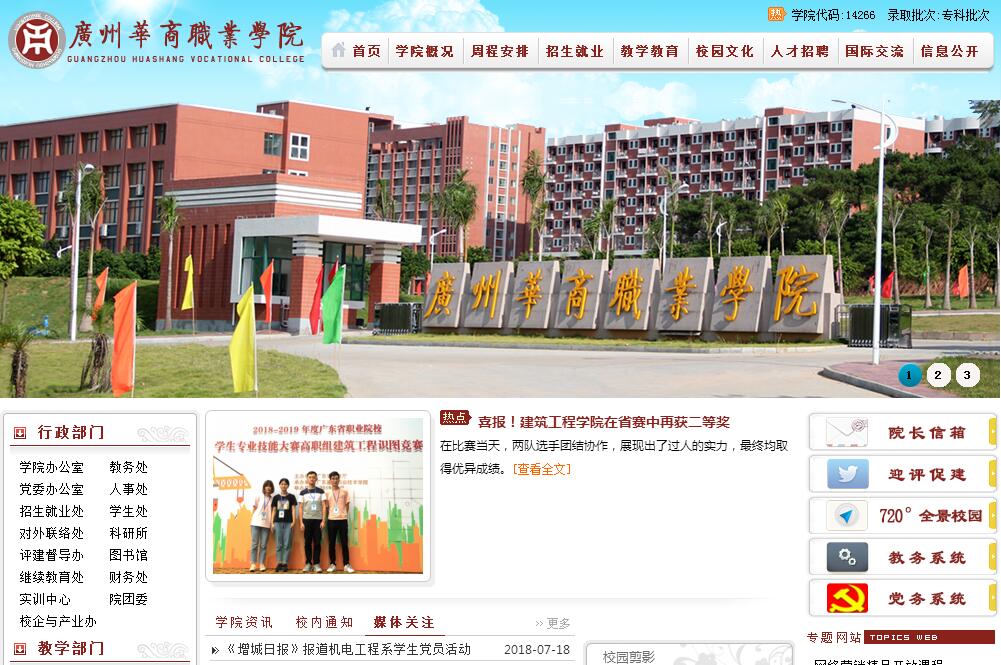 广州华商职业学院是经广东省人民政府批准成立(粤府函[2009]49号文),国家教育部备案,由太阳城集团投资创办,华商教育集团旗下的一所全日制高等专科院校。学院面向省内外招收普通高等学历教育国家任务生,具有大学专科学历证书颁发权(学院代码:14266)。学院以先进的办学理念、雄厚的办学实力、科学的培养方案、良好的培养质量赢得了社会各界广泛的认可。实力雄厚的师资队伍、现代化的实验实训大楼、藏书丰富的图书馆、校企共建的特色专业和重点专业,凸显出学院的办学优势和实力;优美的校园环境、标准的体育场馆、一流的学生饭堂、空调教室和学生宿舍,为学生提供优良的学习环境和生活条件。学院现设有12个教学二级院(系),共有32个招生专业,已形成商科、工科、医药大健康为主,并积极拓展教育、艺术设计和现代服务类专业群,多学科专业协同发展态势。为地方社会经济发展培养高素质、高技能人才。多年来我校新生报到率在同类院校中稳居省内前列,毕业生就业率保持在97%以上。学院与华南理工大学、广东财经大学、广东工业大学、华南师范大学等多所知名高校合作,为学生提供了多条"专升本"途径,学生在毕业当年可参加普通高校本科插班生招生考试,报考省内本科院校,学习两年即可获得全日制大学本科学历。学院还与十多个国家和地区的大学开展联合办学、校际合作、短期研修等,为学生提供出国学习的机会。学院坚持以人才培养质量为核心,以打造特色专业为龙头,以提升职业能力办学为主线,以促进创业为导向,以打造特色和优势为抓手,以校企协同育人为路径,创新办学思路,改革教学模式,优化教学方法,努力把学院打造成一流的高职高专院校。