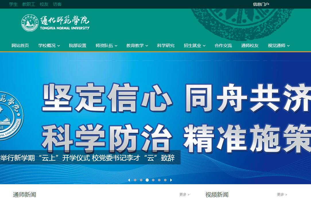 通化师范学院是吉林省东南部唯一一所省属本科院校,坐落于长白山脚下、鸭绿江畔、中朝边境的通化市。根据教育事业发展需要,1958年通化师范学校改为通化师范专科学校,通化师范学校的办学历史可追溯到1929年成立的辽东省立(通化)第六师范学校。1978年,通化师范专科学校经国家教育部批准正式升格为普通本科院校,更名为通化师范学院。学校始终秉承“崇德广业、与时偕行”的校训,坚守“质朴的教育”理念,传承“靖宇精神建校育人、服务长白山区”的办学特色,坚持“质量立校、人才强校、科研兴校、特色活校”的办学方略,凸显“一师一山一城一族一史”的办学优势,为地方经济建设与社会发展作出了重要贡献。2007年,学校顺利通过教育部本科教学水平评估。2016年,学校顺利通过教育部本科教学工作审核评估。学校占地面积59.50万平方米,建筑面积25.35万平方米,教学科研仪器设备总值13350.45万元,馆藏图书总量218.09万册。设有19个二级学院和1个教学部,3个校级科研院所。学校面向全国27个省、市、自治区招生,现有全日制本科生10957人,专科生878人,继续教育在籍学生8479人。现有教职员工796人,专任教师654人,其中具有高级职称人员275人,具有博士、硕士学位人员572人。新世纪百千万人才工程国家级人选1人,享受国务院政府特殊津贴2人,有长白山学者、长白山技能名师、省有突出贡献的中青年专业技术人才等优秀人才34人,聘用校外高级专家作为客座教授和兼职教授78人;有省级优秀教学团队8个,省级科研创新团队2个。学校现有50个本科专业,其中教师教育专业15个,非教师教育专业25个,兼招专业10个,涵盖文学、理学、法学、工学、医学、教育学、管理学、艺术学、历史学9个学科门类;有国家级特色专业2个(历史学、物理学),省级品牌专业3个(历史学、生物科学、物理学),特色专业6个(历史学、物理学、数学与应用数学、生物科学、中药学、汉语言文学),省级重点学科4个(生物学、历史学、教育学、民俗学)。现有国家级精品资源共享课1门,国家级视频公开课1门,省级精品课14门,省级优秀课52门,东西部联盟上线慕课1门。省级实验教学示范中心2个,省级人才培养模式创新实验区3个,省级“卓越工程师”试点专业项目1个,省级大学生校外实践基地2个。学校突出长白山自然资源和历史文化研究,拥有省高校人文社科基地、省重点实验室、省特色新型高校智库、省重大需求协同创新中心等省级科研平台18个。近三年,承担国家自然科学基金、国家社会科学基金、科技部等国家级项目11项;获得吉林省科学技术奖励6项,吉林省社科优秀成果奖7项;获得国家授权专利52项。学校与国(境)外43所院校和教育机构建立了友好合作关系,开展了交换生、“2+2”、“3+1”、短期交流及带薪实习等多种形式的本科生交流培养项目,先后与英国格林多大学合作举办视觉传达设计专业、与韩国岭南大学合作举办食品科学与工程专业、与韩国清州大学合作举办生物科学专业中外合作办学本科教育项目。目前共派出133名学生出国(境)学习,现有留学生学历生28名、语言生16名。学校积极落实高教强省战略和转型发展工作,成立医药健康产业专业集群、教师教育专业集群进行转型试点,开展艺术类、食品科学类大类招生试点。学校积极推进产教融合,与万通集团成立万通商学院,与九台农商银行成立九商会计学院。学校重视学生职业技能训练,通过实施“映山红”顶岗支教实习计划,为教师教育专业学生提供为期一年的教育实习时间,提升学生实践能力,强化应用型人才培养内涵。学校曾被国家语委评为“国家级语言文字规范化示范校”,被吉林省教育厅评为全省高校“就业管理工作先进集体”,连续两届获得“吉林省文明单位”,荣获“吉林省模范集体”。展望未来,学校将以习近平新时代中国特色社会主义思想为指导,认真贯彻落实十九大会议精神,以立德树人为根本,进一步推进高校转型发展和高教强省战略,大力提升基础教育师资培养培训基地、应用型人才培养基地、长白山区自然资源和历史文化研究创新基地建设水平,为把学校建成具有一定国际化水平、国内知名、省内一流、优势突出、特色鲜明的区域高水平应用型大学而努力奋斗。