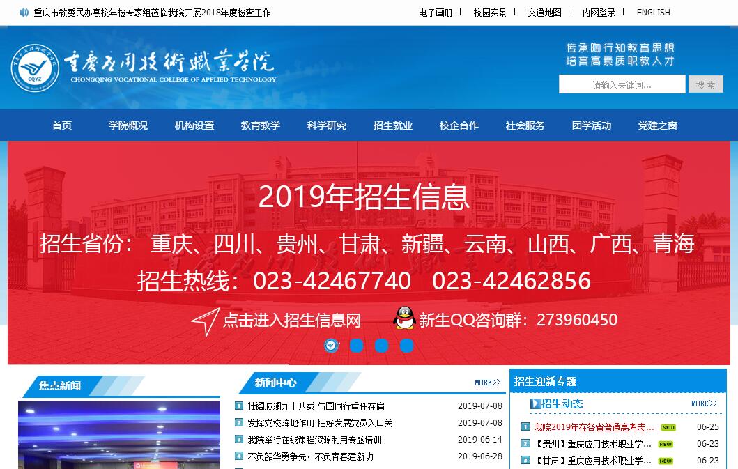 重庆应用技术职业学院2005年经重庆市人民政府批准设立,是重庆市教育委员会主管的全日制普通高等学校。学院位于重庆市高等教育资源富集的合川区大学园区思源路60号,紧邻5所高等院校,具有浓郁的文化氛围。校园占地145021平方米,建筑面积71093.9平方米。校园设施齐备,环境优雅,是重庆市“平安校园”。学院立足重庆,面向西部,围绕产业结构调整、区域经济社会发展在先进制造业、战略性新兴产业和现代服务业等方面紧缺人才的需求,培养以建筑工程、教育、电子信息、汽车工程专业为主体,旅游、商务、文化为支撑的有良好职业素养的专科层次高素质技术技能人才,为区域经济社会发展服务。现设置有建筑工程系、汽车与电子工程系、教育艺术系、财经旅游系和公共基础教学部5个系部,开设建筑工程技术、工程造价、汽车电子技术、汽车技术服务与营销、学前教育、会计等21个专业,建有建筑工程实训中心、汽车综合实训中心、电子信息实训中心、文化创意实训中心、旅游与酒店实训中心、学前教育实训中心等实训中心,45个实验实训室以及135个校外实训基地。学院坚持人才强校战略,注重师资队伍建设,着力打造专业带头人为核心、骨干教师和主讲教师为主体,实践教学教师为支撑的教学团队,并从部分科研院所和行业企业聘请了一批实践经验丰富的高级专家为兼职教师。学院不断发扬陶行知先生的教育思想,秉承“厚德尚能,求实求真”的校训精神,将陶行知先生的“生活教育论”和“创造教育的方法”贯穿于教育教学活动中,坚持以服务为宗旨,以就业为导向,以能力为本位的办学方针,坚持以学生全面成才为目标,以加快发展为主题,以教育教学质量为核心,以专业建设为龙头,以师资队伍建设为根本,以办学条件建设为基础,以加强党的建设和思想政治工作为保障,主动适应行业、企业和地方经济建设和社会发展的需要,培养德、智、体、美全面发展的应用型、技术技能型人才。学院依托民生教育集团的办学优势,与重庆人文科技学院、重庆工商大学派斯学院实行资源共享和教师互聘,进一步充实了本院的师资队伍和教育教学资源。学院高度重视校企合作,大力推行产教融合、工学结合和“双证书”教学模式,强化技能培养。学院与重庆汽车厂商、软件公司等多家知名企事业单位和政府机关签署合作协议,建立了校外实习实训基地。学院把毕业生创业就业工作摆在突出位置,毕业生综合素质高、适应能力强,深受用人单位青睐。
