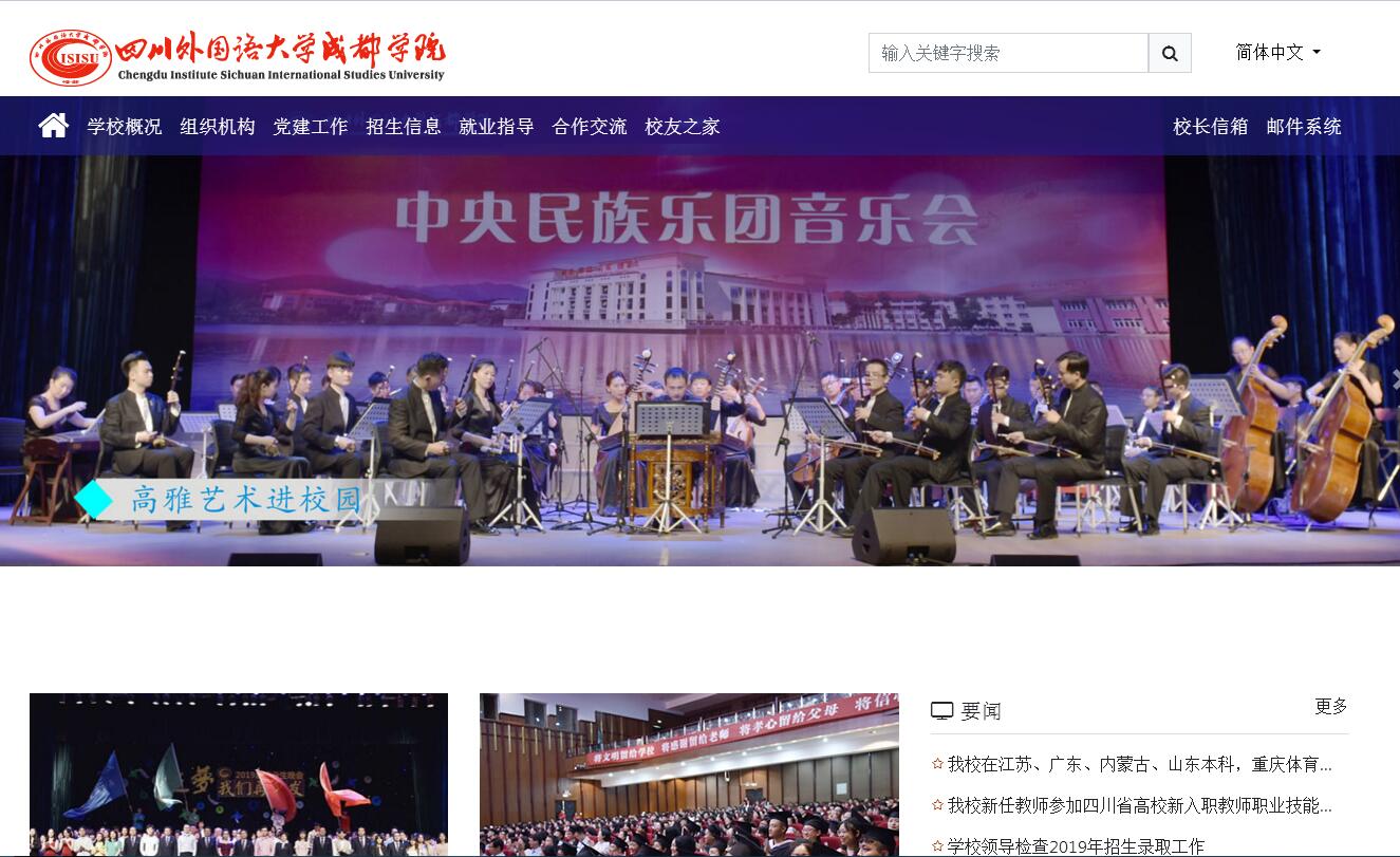 四川外国语大学成都学院是国家教育部批准设立的全日制普通本科高校。学院位于成都都江堰,紧邻国家5A景区、世界文化遗产地——青城山,校园环境幽雅,空气清新,具有得天独厚的人文自然环境,是读书治学的理想园地。学院全面贯彻党的教育方针,切实把立德树人的根本任务落到实处,党建工作制度健全,思想政治工作扎实开展。学院以“创建特色鲜明的一流应用型大学”为发展目标,大力弘扬“团结、勤奋、求实、创新”的校训,坚持“传播世界先进文化,促进国际交流合作,培养时代创新人才,服务经济社会发展”的办学理念,坚持“立足四川,面向全国,融入世界”和“走国际化道路,全方位、多层次、宽领域地开放办学、合作办学”的办学策略,努力培养“德才兼备,一专多能,具有国际视野的高素质复合型涉外人才”。学院是四川省唯一的专业外语院校,也是四川省开设语种最多的普通高校,外语特色鲜明,学科优势突出。学院现有全日制在校生15500余名,开设有英语、日语、德语、西班牙语、法语、葡萄牙语、朝鲜语(韩语)、俄语、越南语、泰语、意大利语、阿拉伯语、波兰语、捷克语、匈牙利语等15个外语语种和翻译、商务英语、汉语国际教育、新闻学、国际经济与贸易、国际商务、会展经济与管理、体育服务与管理、酒店管理等与外语相关的本专科专业,以及经济与贸易、国际物流管理、外事管理、跨境电商、国际新闻、涉外旅游、国际酒店管理、师范、涉外文秘、学前英语教育管理、中小学英语教学、商务翻译、国际高尔夫运营与管理、国际足球运营与管理、国际网球运营与管理等专业方向。学院已形成以外国语言文学学科专业为重点,与中国语言文学类、经济与贸易类、工商管理类、新闻传播学类、旅游管理类、体育学类学科专业互为支撑、相互融合、协调发展的学科专业布局。学院构建了一支德才兼备、教学精湛、结构合理、充满活力的高素质专业化教师队伍,常年聘有来自十多个国家的外籍专家和教师。学院拥有功能齐全的专业化、现代化教学设施设备,多媒体覆盖所有教室,配备有多语种同声传译实验室、综合语言实验室、工程技术法语实训室、俄语高级翻译实训室、国际商务英语实训室、高尔夫虚拟仿真实验室、新闻录播实训室等实验室。学院实行融知识、能力、素质于一体的“1+N”人才培养模式,持续推进“外语+”内涵的融通发展和创新发展,人才培养质量受到了各界的充分肯定。学院每年毕业生就业率均保持在95%左右,国际第三方调查公司麦可思发布的高校就业能力排行榜,学院位列四川省普通高校第三名;学生在全国外语专业等级考试中屡次远超全国平均合格率,在各类专业竞赛中屡次荣获第一名。学院不断深化国际化办学的发展战略,广泛开展国际交流与合作,与法国、德国、西班牙、荷兰、美国、英国、日本、韩国、加拿大、新西兰、俄罗斯、泰国、越南、马来西亚等20余个国家的70余所高校建立了友好关系,开设了适应各语种、不同层次的本升硕、双学位、交换生、专升本、专升硕、国际班等留学项目,每年都要派出数百名学生赴国外高校留学。同时,学院先后招收了来自俄罗斯、韩国、意大利、哈萨克斯坦、尼泊尔、法国、新加坡、日本、墨西哥、德国等国家的学生前来留学和交流。学院发挥外语资源优势和外语人才优势,积极为经济社会发展服务,如为四川省国税局、青海省国税局、东方电器集团、中铁二局、攀钢集团、四川省运动技术学院等众多单位举办了外语培训;与遂宁市、简阳市、凉山彝族自治州、都江堰市、崇州市等地合作,开展了中小学师资培训、他语种教育等;选派了众多学生参与欧洽会、西博会、世界审计组织理事会、中国-西班牙论坛、新加坡“春城洋溢华夏情”文化艺术旅游展等大型活动的多语言服务和志愿服务工作。学院形成了内涵丰富、百花齐放的校园文化,开展了各具特色、丰富多彩的各类活动。如聘请了著名演员、周恩来总理扮演者刘劲等担任客座教授和主办讲座,邀请了战旗文工团、佛山粤剧院等演出弘扬社会主义核心价值观的剧目;打造了以外语晚会、口译大赛、外语影视配音大赛等为代表十大外语专业赛事;成立了以民管乐团、合唱团、声乐队、民舞队、戏剧队等组成大学生艺术团,设立了CIMUN模拟联合国协会、VOC校园之声广播站、国旗护卫队、青年志愿者协会、口语协会、彼岸诗社、环保协会等学生社团;原创歌曲文化、多语种歌曲文化已形成了良好影响,学院创作的《独立学院之歌》已经传唱于全国的独立学院,学生多语种歌曲曾多次走红网络,并应邀参加了中央电视台的《星光大道》和《出彩中国人》。学院是中国独立学院协作会常务理事、副会长单位,四川省独立学院协作会会长单位,四川省高等教育学会副会长单位,四川省民办教育协会副会长单位,中国高校外语慕课联盟理事单位,全国独立学院及转设高校外语教学研究会副会长单位,四川省应用外语研究会副会长单位,四川省高等教育学会高校外语教学研究会副会长单位,先后获评“全国先进独立学院”、 四川省“高校毕业生就业工作优秀单位”、四川省“省级职教师资培养培训基地”、亚洲教育论坛“国际教育交流基地”、四川省“健康活力教育优秀单位”、 成都市“涉外管理工作先