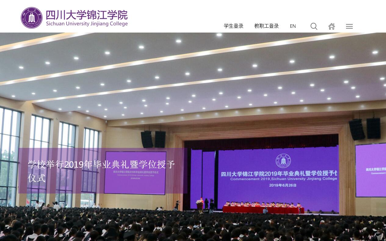四川大学锦江学院是经国家教育部批准,由百年名校、国家“双一流”(A类)建设高校、“985工程”和“211工程”首批建设的教育部直属全国重点大学—四川大学举办的独立学院;是一所按照新机制、新模式运行的全日制普通本科高等学校。学校设13个学院,45个本科专业、12个专科专业,学科涵盖文、理、工、经、管、艺等门类,面向全国招生,在校学生近18000人。学校恪守“尊德性而道问学,致广大而尽精微”的校训,践行“学生为本,通专并重,知行合一,教学相长”的办学理念,培养具有国际视野的高素质应用型人才。学校地处四川省眉山市彭山区。学校占地1000余亩,按人文化、生态化、数字化理念规划建设。学校有现代化的教学楼群、实验楼群、图书馆、大礼堂、学术报告厅、体育场馆、景观公园、生态湖等,并配置了一流的教学仪器设备,各项办学条件均达到或超过国家标准。学校建筑精美,气势恢宏;绿树成荫,鲜花竞开;环境幽美,是莘莘学子求学深造、陶冶情操的理想园地。学校实行专家治校,学校主要领导和学院、教学部负责人全部由知名专家学者出任。学校聘请海内外名校名师执教,现有教师900余名,骨干教师主要来自于四川大学,其中85%以上为教授、副教授。通过他们渊博的学识、丰富的管理经验、严谨的治学态度和敬业精神,为学生的成人成才提供强有力保障。学校严格课堂秩序,实行早晚自习、新生晨练制度,坚持开展文明寝室建设、诚信教育、志愿者服务等各类活动,培养学生勤奋学习、吃苦耐劳、求真务实、诚实守信、团结协作、博爱感恩等优良品格,形成了优良的校风和学风。