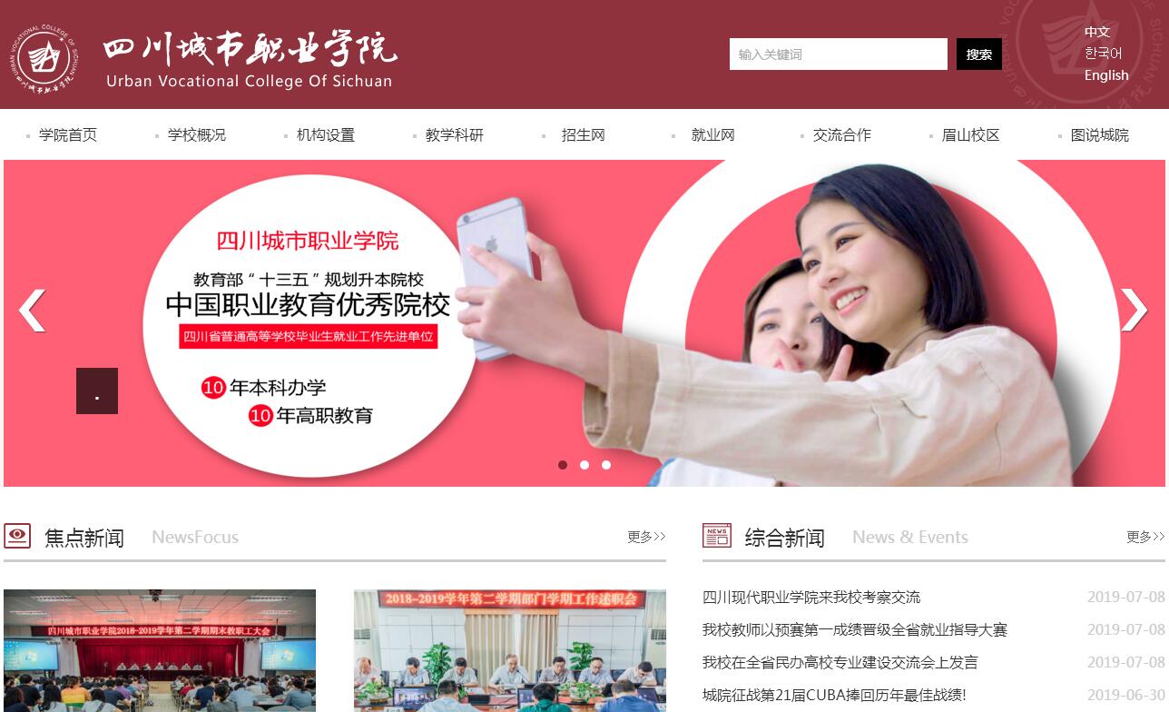 四川城市职业学院位于四川省省会—成都市,是一所经四川省人民政府批准、教育部备案的全日制综合性普通高等学校,于2008年4月在具有十多年本科办学历史的四川师范大学信息技术学院、四川师范大学外事学院办学基础上组建而成。学院坚持“服务发展,促进就业;工学结合,校企合作;尊重市场,整合资源;用好机制,创新管理”的办学思路,秉承“团结奋进,追求卓越”的学院精神,恪守“修德砺能,务实拓新”的校训,加强内涵建设,培养面向生产服务一线,具有良好道德品质、勇于创新精神和高度社会责任感,理论知识够用、实践能力突出,具备就业创业能力、继续学习能力的高素质技术技能人才。学院不断创新育人理念,升级形成了“一个中心五个融合”的人才培养模式。即坚持以学生为中心,推进“社会主义核心价值观与人才培养深度融合 ”、“校企合作与人才培养深度融合”、“职教科研与人才培养深度融合”、“创新创业教育与人才培养深度融合”、“互联网+与人才培养深度融合”五个融合。学院还积极探索“专业学院+社区学院”的双元制育人模式,促进专业教育与通识教育有机融合,学业进步与人格塑造有机融合,知识积累与文化素养提高有机融合,实施全员育人、全过程育人、全方位育人,促进学生全面发展。“十三五”期间,学院确立了四个同步提升发展目标,即办学条件和层次同步提升、办学质量和特色同步提升、办学规模和效益同步提升、治理水平和能力同步提升,信息化、国际化作为两翼支撑。学院设有建筑工程学院、经济管理学院、公共服务学院、汽车与信息工程学院、艺术设计学院、国际交流学院、东坡书院、继续教育学院共8个教学单位,土木建筑类、财经商贸类、交通运输类、装备制造类、电子信息类、文化艺术类、公共管理与服务类、旅游类、教育与体育类、资源环境与安全类等10个专业大类、45个在校生专业,全日制在校生12000多名。学院占地面积1600余亩,有成都和眉山两个校区。眉山校区的校园建筑,沿着山势和坡地,高低起伏,“山校相映”,建筑群落疏密有序,疏林草坡相得益彰,校园环境非常漂亮。眉山校区也是智慧校园,每间教室都配备了全苹果IMac一体机或电子白板系统,无所不在的数字化交互,能让你体验信息化时代的大学生活。“国际范”更是眉山校区的又一个亮点,学生公寓里,每层楼都有自助洗衣房和干洗房,每层楼都有健身房,校内IMAX3D电影院,让你们足不出户就可以欣赏最新的国内外大片。而成都校区则有非常完备齐全的教学、生活设施,东湖碧波荡漾、水天一色,伴书山上林木众多、曲径通幽。整个校园植被茂盛、四季繁花,被誉为“花园式”学校、四川省最美校园。《林师傅在首尔》、《青春驿站》等众多影视剧组外景拍摄地都选择在了成都校区。学院高度重视师资队伍建设,通过内培外引,多措并举,不断加强师资队伍建设,强化了竞争激励机制,优化了师资队伍结构。经过多年来的建设和发展,已形成了一支数量与办学规模相适应、水平与学科专业建设相适应、素质与人才培养目标相适应的结构优化、富有活力、敬业爱岗、具有创新精神和团队精神,适应高等职业教育发展需要的“双师型”教师队伍。学院现有各类教师900余人。教师队伍中,具有教授、副教授、高级工程师等高级职称教师占专任教师总数的40%以上,具有研究生学位教师占专任教师总数的45%;“双师型”教师占专任教师总数的34%。其中包括“全国优秀教师”2人,“四川省优秀教师”2人, “四川省突出贡献专家”1人,“四川省三八红旗手”1人,“四川省先进工作者”1人,“四川省优秀共产党员”2人,“全国民办高校优秀辅导员”1人,四川省学术技术带头人后备人选2人,四川省高校职称评定委员会专家2人、四川省高校设置委员会专家1人,省级教学团队1个。学院现已形成价值10亿多元的优质办学资产。校内建有与各专业配套的各类实验实训室140多个,其中有中央财政支持的职业教育实习实训基地、四川省建设厅支持的四川省建筑工种实训基地,以及校企联建的工程实训中心、汽车实训中心、服装裁剪与制作实训基地等。学院与300余家政、行、企、校建立了校企合作关系,共建143个校外实习实训基地,先后开设“四川蓝光嘉宝订单班”、“成都地铁订单班”、“蒙牛集团订单班”、“京东订单班”、“伊藤洋华堂订单班”、“元迪教育订单班”、“万科订单班”、“北汽银翔订单班”、“四川现代汽车订单班”、“成都力方订单班”等20多个知名企业订单班。学院先后与韩国、英国、美国、新西兰等国家和中国台湾地区进行交流与合作。从2013年开始,学院每年都有近100名学生出国留学。学院采取联合培养模式,两年后在取得国内大学专科文凭的同时,还将获得国外大学的本科文凭。同时,为了鼓励同学们刻苦学习,让优秀的学生实现继续升造的愿望,学院坚定不移地执行省教育厅“专升本”的政策,每年学院都有300名左右的学生升入四川师范大学继续学习。除此之外,为了提升全院学生的学历层次,学院积极与西南科技大学、四川师范大学等高校联系,已开设建筑经济管理、汽车服务工程等几十个自考本科专业。为了让同学们更好地就业,学院还启动职业资格认证工作,与四川省人力资源与社会保障厅、四川省建设厅等单位进行