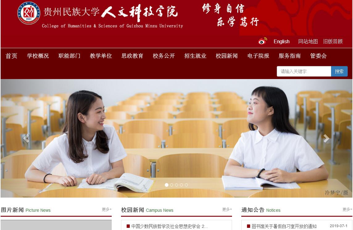 贵州民族大学人文科技学院成立于2001年,是由贵州民族大学申办,民营资本投资,经贵州省人民政府批准、教育部确认设立的具有独立法人资格的全日制普通本科高等院校。学院现有两个校区,花溪校区坐落于山清水秀、被誉为“高原明珠”的贵州风景名胜区贵阳市花溪区,大学城校区坐落在产城融合创新、生态文明示范的贵安新区,毗邻贵州财经大学、贵州医科大学、贵州师范大学等高校。学院占地面积700余亩,校舍面积30余万平方米,教学行政用房20余万平方米。图书馆拥有纸质图书和电子图书近100万册。学院实行董事会领导下的院长负责制,设有16个行政管理部门、7个教学部和2个教辅部门,开设有本科专业34个。学院贯彻党的教育方针,坚持社会主义办学方向,秉持“依托优秀资源,延揽优秀教师、培养优秀学生”的理念,以“修身、自信、乐学、笃学”为院训,按照“人才培养应用型、科研开发支撑型、社会服务区域型”的发展定位,围绕“抓学科建设、促教学质量、上科研水平、办高水平应用型大学”的思路,以“内涵发展、产教融合、服务地方、形成特色”为主线,落实立德树人根本任务,着力培养具有社会责任感、较强社会政治经济建设能力和国际视野的高素质应用型创新创业人才,努力建设成为特色鲜明、优势突出、效益良好、社会信赖、民族团结、人民满意的高水平应用型大学。学院实施“人才强院”战略,通过实施一系列人才工程建成了一支德才兼备、生师比匹配、专兼比合理、学缘结构优化的师资队伍。目前,学院有专兼任教师600余人,副高以上职称占50%,具有硕士以上学位教师占70%。其中,中宣部文化名家暨“四个一批”人才、国务院办特殊津贴专家、贵州省高校哲学社会科学“黔灵学者”、贵州省省管专家、贵州省政府特殊津贴专家、贵州省哲学社会科学学术带头人、教学名师等近30人。学院坚持以人才培养为中心,形成了以本科教育为主的人才培养体系。按照“突出应用、培育特色、提高质量”的思路,深化人才培养模式改革,积极调整专业结构,对接行业产业发展,积极开展校政、校企、校地、校所合作协同育人,着力培养应用型创新创业人才。学院坚持以学科建设为龙头,形成了以文、法为主,理、工、管、教、艺协调发展的学科专业体系。通过学科建设统筹人才培养、科学研究、社会服务、师资队伍和资源配置,努力推进特色鲜明、优势突出的学科专业一体化建设。现有教育部民族教育发展中心“民族民间文化教育传承创新重点研究基地(高等院校)”1个,中国南方少数民族文学艺术与文化传播研究基地1个,中国民俗学会民俗教育专业委员会“非物质文化遗产传承与教育研究基地”1个。2017年,学院被全国社科联评选为“创建新型智库先进社会组织”称号。近五年来,学院自有教师主持省部级以上科研项目15项,其中国家哲学社会科学研究重大招标项目1项,国家社科基金项目4项;教师发表学术论文250余篇,其中SCI、EI、ISTP检索及核心期刊论文40余篇;出版专著15部。学院“少数民族非遗传承创新研究团队”荣获“贵州省哲学社会科学十大创新团队”称号。学院面向全国12个省(区)招生,目前有全日制在校本科生1.3万余人。建院以来,学院为国家特别是贵州经济建设和社会发展输送了2万余名合格人才,毕业生对母校的满意度达到95%以上,一次性就业率均保持在90%左右,毕业生良好的综合素质得到社会充分认可。近年来,毕业生中已有300余人考上了研究生,如南京大学、武汉大学、华东师范大学、西南大学等国内著名高校。学院坚持以服务社会为导向,逐步形成了立足地方、面向全国,政、产、学、研相结合的社会服务体系。学院与地方政府以及企事业单位开展了全面合作,并建成各级各类实习实践基地90余家。学院广泛开展国际国内交流与合作,先后与北京语言大学、华中师范大学、华南师范大学、暨南大学、西南大学等著名高校建立了友好合作关系,每年选派100余名学生交流学习一年。通过“千人留学计划”项目,每年选派20余名优秀学生赴台湾大叶大学、俄罗斯普列汉诺夫经济大学、马来西亚理工大学、加拿大菲沙河谷大学等高校进行交流学习。经过多年的努力,学院已建设成为一所办学体制机制富有活力,应用型创新创业人才培养体系逐步完善,学科门类齐全,与区域经济社会发展紧密对接,人才培养质量稳步提高,科学研究和服务社会能力持续提升,具有区域影响力的独立学院。学院先后荣获“全国先进独立学院”、“第四批全国民族团结进步创建活动示范单位”“贵州省民办非企业等级评估5A级单位”、“全省民族团结进步创建活动示范学校”、“贵州省第五批民族民间文化教育项目学校”、“‘十二五’全省民族团结进步创建活动先进单位”等荣誉称号。