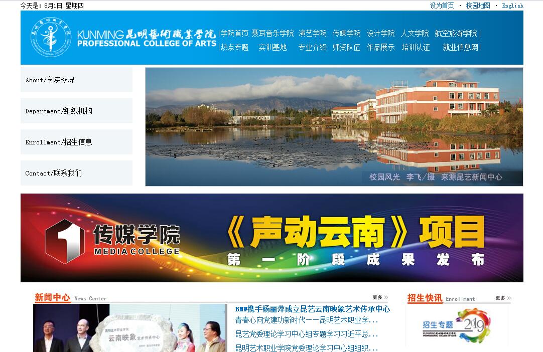 昆明艺术职业学院前身为创建于1986年的聂耳音乐学校。2001年经云南省人民政府批准、教育部备案升格为艺术类普通高校。学院下设聂耳音乐学院、演艺学院、传媒学院、设计学院、人文学院、航空旅游学院,建立了非物质文化遗产传承教学研究中心、民族音乐研究所、公关舆情研究所等科研机构,开设有20余个专业。学院积极探索“集优秀民族文化艺术传承、职业型民族文化艺术人才培养、民族文化艺术产品打造和市场拓展于一体”的人才培养模式;倾力构建中职、高职、应用型本科贯通的人才培养“立交桥”。2011年学院被云南省教育厅列为“综合人才培养改革试点学校”,就应用型本科人才培养给予“先行先试”的试点。学院践行科学发展观、凝练办学特色、深化教学改革,取得了丰硕的成果。近几年来,师生先后荣获国家级奖项49个、省部级奖项150个;艺术设计获中央财政支持,被国家财政部、教育部确定为“国家级职业教育实验实训示范基地”;传媒 “综合实训教学中心” 被云南省教育厅批准为“云南省高职高专院校省级示范实习实训教学基地”;中共云南省委宣传部授予学院“CCTV青年歌手电视大赛培训基地”;著名舞蹈表演艺术家杨丽萍将学院列为“国家级舞台艺术精品工程原生态歌舞《云南映象》” 的人才培养基地。