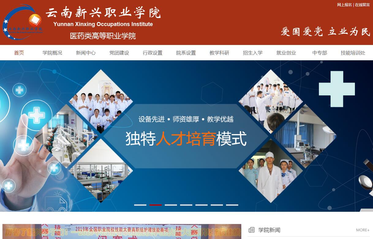 云南新兴职业学院创办于1993年,是国家教育部备案(学院代码:5356),具有独立颁发高等学历文凭资格的全日制普通高等院校。学院创办伊始,即以医药专业为主,师资雄厚,教学实验设备齐全,是一所云南省著名的老牌医药专科学院。学院离市区近,学生可在云南省会昆明更多的了解国家医药健康产业信息及各类科技信息,拥有更多的就业创业机会。学院坐落在景色秀丽、四季如春的昆明。校园依山傍水,占地面积380亩,规划用地1500亩,实际建筑面积15万平方米,规划建筑面积将达到35万平方米,全日制在校人数22000余人。学院设有护理学院、医学康复学院、药学院三大学院,医药专业齐全。学院拥有一支素质优良的双师型教学队伍,现有专职教职工480多人,其中博士、硕士90余人,副教授以上职称的有98人,主任医师职称的130人,较好的保障了各专业的理论和实践教学需要。学院重视德育教育和技能教育相结合,注重学生动手能力和实际操作能力的培养。遵循“技能决定一世,道德决定一生”的教育模式。特别注重培养敬业精神和责任意识,特别注重提高学生的实践能力、创造能力、就业能力和创业能力。使学生踏入社会很快打开局面,淘到第一桶金。同时在校学生除享受党和政府拨发的困难助学金外,还可享受国家级、省级奖学金、励志奖学金等各级奖学、助学金,学院还特别重视贫困生就业问题,每年都拨有专款设立奖学金和困难补助金,鼓励和帮助品学兼优而家庭困难的同学,并设有勤工俭学岗位,工读结合,顶岗实习,顺利完成学业。学院通过多年的实践和探索,办学成果得到了国家和社会的广泛认可。被教育部教育报刊社评为“社会公认成功育人单位”、曾被教育部评为“全国先进集体”和“云南省优秀普通高等学校”等诸多荣誉称号,就业创业工作连续五年荣获教育厅就业创业工作目标责任考核“二等奖”,护理专业学生参加全国护士执业资格证考试连续五年过关率居同类院校第一(过关率达92%以上)。办学二十五年,学院始终以“素质教育、技能教育、特色教育”为办学宗旨;确立“爱国、爱党、勤学为民”的校训;坚持“技能决定一生,道德决定一世”的办学理念,以实现中国梦作为我们的奋斗目标,强化教师服务意识,求真务实。不忘初心,牢记使命。面对新时代,沐浴科教兴国的春风化雨,簇拥“十二五”教育的春晖春潮,我们坚持“教育以育人为本,以学生为主体”的理念,全面推进人格教育和职业道德培养,强化专业技能训练,坚持和发扬我院优良传统和办学优势,突出特色,追求卓越!云南新兴职业学院为国家、为社会各级医药卫生机构培养了一批又一批的新兴人才,昆明各大医院的康复科、骨干队伍均是我院毕业学生,药系毕业生就业遍布全国,为医药卫生事业和健康产业的发展做出贡献,正以全新的姿态展露峥嵘!