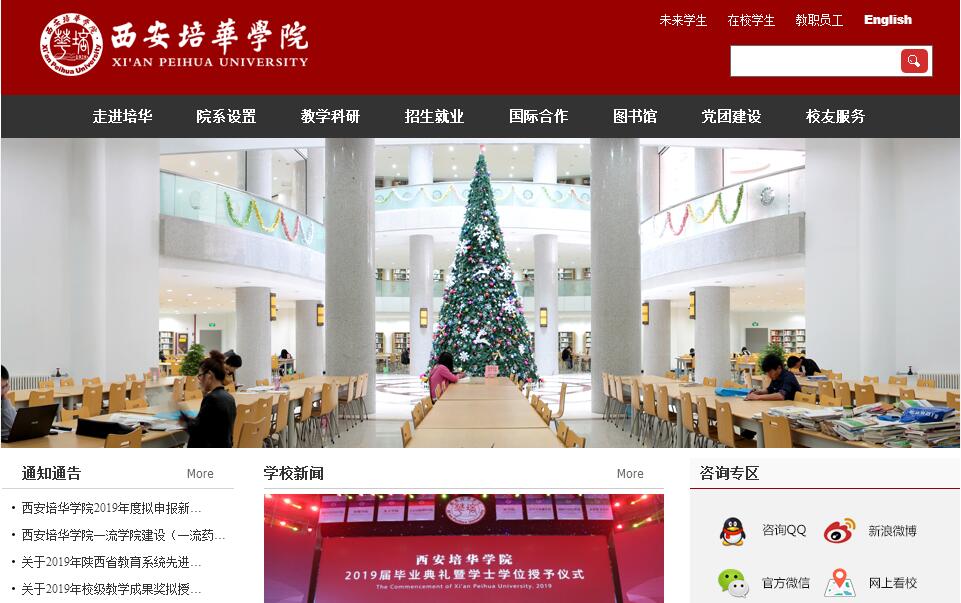 西安培华学院坐落于华夏文明的发祥地古都西安,是一所经国家教育部批准的西部首家拥有学士学位授予权的民办本科高校。学校办学历史悠久,文化积淀深厚,具有女性教育和职业教育的传统和特色,学校前身可追溯到1928年由陕西女子职业教育促进会筹办、陕西省教育厅批准设立的“西安第一女子平民职业学校”。1984年经陕西省人民政府批准,国家教委备案,由著名教育家姜维之先生在恢复原“培华女子职业学校”的基础上,恢复成立了新中国首家专门招收女性学生,开展女性教育的普通高校“西安培华女子大学”。2003年经国家教育部批准升格为普通本科院校,并更名为西安培华学院(男女兼收),2007年成为西部首家拥有学士学位授予权的民办高校。学校建有高新、长安、郭杜3个校区,总占地面积130.4万平方米。学校设有10个二级学院,3家附属医院,设有本、专科专业60余个,形成了以财经、医学为主干,经济学、管理学、文学、理学、工学、艺术学、法学等多学科协调发展的办学格局。学校现有普通本专科在校生22000余人,其中本科生占学生总数的70.6%。学校现有教师 1200余人,其中高级职称教师410人,硕士以上学历教师600余人,“双师型”教师占教师总数的50%。学校图书馆建筑面积2.6万平方米,馆藏纸质图书215万册,电子图书170.7万册,电子期刊1.8万种,中外文数据库13个,数字化文献资源总存储176TB。图书馆全面实现了24小时电子借阅、阅览。建成了万兆光纤互联的校园网,建有全橡胶标准体育场、体育馆等运动场所。学校是教育部全国创新创业50强高校,陕西省应用技术型大学转型发展试点院校,陕西省示范性高等学校创新创业指导服务机构,先后和80余家企事业单位签订了校企合作协议,拥有校内实验(实训)室120个(220个分室),校外实习(实训)基地总数达到427个,校外创业实训基地2个。美国心脏协会(AHA)中国西北第一急救中心、金融会计与财务审计实务协同创新中心、中国要素市场交易实训中心、金融衍生品智能交易国际服务外包中心、会计核算全实景全真实业务实训中心等40多个教学科研机构有力促进了创新创业教育和职业人才培养。学校是新时期女性教育的研究传播中心,依托“陕西妇女/性别研究与培训基地”、“男女平等基本国策宣传培训基地”、“陕西省妇女儿童维权示范岗”“陕西省科普示范基地”等平台,女性教育既是对外交流的窗口,也为发展女性素质教育提供了高层次宽领域的主流平台,得到了中省市领导的充分肯定。学校坚持开放办学,2011年以来先后与西北大学、西安建筑科技大学、延安大学签订了共建对口帮扶协议,联合培养硕士研究生,是“西北大学—西安培华学院电子与通信工程研究生联合培养示范工作站”设站单位。学校与国内多所同类院校发起成立了“未来大学联盟”,形成优势互补、资源共享的开放式办学格局,在教学、科研、人才培养和服务地方社会经济等领域进行广泛合作。学校与中国人民解放军第四军医大学等部队院校有着密切的双拥共建关系,与近40个国家和地区的近百所高校建立友好大学关系,积极拓展发展空间。学校坚持“以人为本、以德为先”的办学理念,先后荣获中国最具社会责任单位、中国十强民办高校、中国社会影响力民办高校、陕西省文明校园、陕西省平安校园、陕西省依法治校示范校、陕西省就业工作先进集体、陕西省创新创业示范学院等荣誉称号。