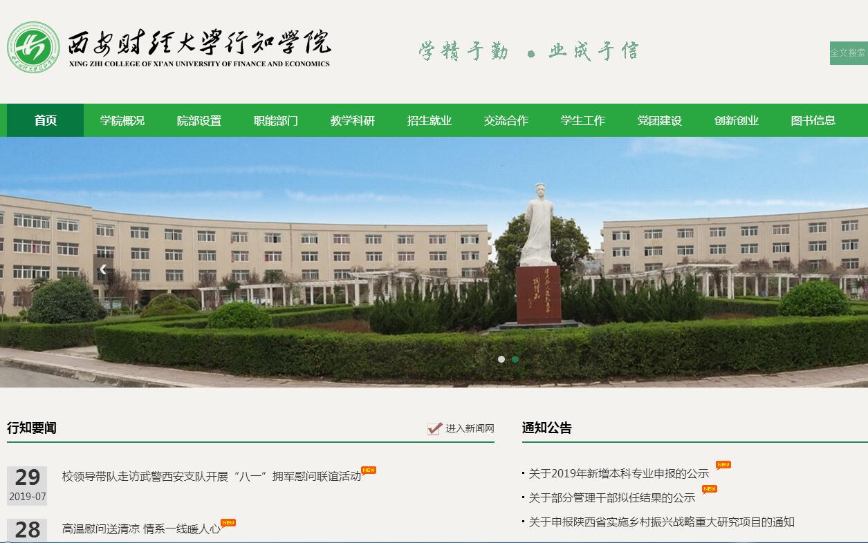 西安财经学院行知学院是教育部批准(教发函〔2004〕72号),由西安财经学院举办的一所特色鲜明的经济和管理学科为主的独立学院。学校坐落于古都西安白鹿原大学城,占地面积421377平方米,校舍建筑面积157998平方米,教学科研仪器设备总值3803.96万元,纸质图书63.33万册,电子图书523024册。现有教职工627人,其中专任教师372人,具有副高级以上职称的134人,并从“985”、“211”院校引进了21名教授作为学科带头人和专业负责人。学校现设有管理科学分院、会计分院、经济与统计分院、人文艺术分院和通识教学部、思想政治理论课教学部、体育教学部等7个教学单位,开设会计学、财务管理、金融学、工商管理、统计学、网络与新媒体、物流管理、广播电视学、审计学等24个本科专业,逐渐发展成以经济和管理类专业为主干,经、管、文、理、艺相互支撑、协调发展的应用型大学。目前,学校拥有金融学省级专业综合改革试点项目,金融学省级教学团队,财税应用型人才培养模式创新实验区。2017年在“四个一流”建设中金融学和会计学专业获批为省级“一流专业”培育项目。学校积极构建教学与科研的互助平台,鼓励和支持教师开展科研工作。全校教师共承担各类科研项目203项,其中厅局以上课题成功立项57项,校级培育课题立项146项,教师公开发表各类学术论文共计730余篇,其中含核心论文20余篇,会议论文8篇,出版教材20余部。建校以来,学校始终秉承“乐于奉献、勇于创造、手脑相长、行知合一”的行知精神,坚持“行知合一、开放办学”的办学理念,不断深化教育教学改革,创新人才培养模式,优化学科专业布局,调整完善课程体系,强化实践育人环节,教育教学取得了较大进展。学校重视应用型创新人才培养,先后建立了会计综合实践教学中心、经济综合实践教学中心、ERP企业经营管理沙盘实验室、摄录像实验室、非线性编辑实验室等各类专业实验室24个,以及微课录播室,校外实习(实训)基地161个,用于满足学生实习实训需要,切实提高学生实践应用能力。为响应国家“大众创业、万众创新”的国家战略,成立了创新创业学院,将创新创业教育融入培养体系,通过创新创业学院平台大力加强学生创新创业能力培养,积极推进创新创业课程学分认定,将“双创”教育贯穿人才培养全过程,创新创业学院与西安腾普科技有限公司合作为用友、金蝶、博科、浪潮等企业协同培养的部分学生实现了百分之百的高质量就业,同时,创新创业学院积极与上百家企业建立了校企合作关系,举办各种创新创业讲座,开展了形式多样的创新创业训练活动,学生的实践能力、创新能力和综合素质得到有效训练和培养。学校坚持开放办学,积极开展校企、校会、校政交流与合作。分别与陕西省注册会计师协会合作设置了CPA实验班,培养同市场需求紧密接轨的高素质会计专业人才;与开源证券、西安市统计局等单位合作积极探索校企合作、校政合作协同培养人才的新模式。学校重视国际交流与合作,先后与比利时托马斯貌尔大学、韩国全州大学签订两校友好合作协议,互派师生交流学习;与美国艾柏林基督大学、美国普利茅斯州立大学澳大利亚堪培拉大学、泰国博仁大学、加拿大圣文森山大学、英国桑德兰大学签订2+2本科联合培养双学位项目;积极开拓加拿大、法国等国际教育化优质资源,为学生创造个性化留学服务工作。西安财经学院行知学院将深入学习贯彻党的十九大精神和习近平新时代中国特色社会主义思想,以建设“一流专业、一流学院”为契机,坚持以“质量提升为中心,内涵建设为主线,结构优化为重点,创新发展为动力”的办学思路,全面落实学校“十三五”规划,深化教学改革,强化办学特色,不断提高人才培养质量,努力把学校建设成特色鲜明的应用型财经类大学。