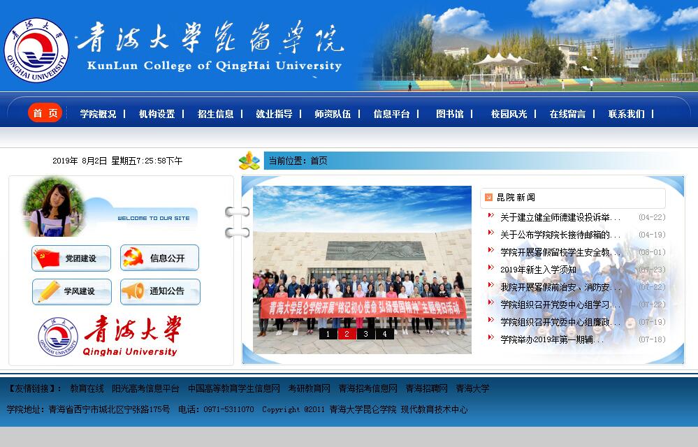 青海大学昆仑学院位于青海省西宁市生物科技产业园,是2004年经教育部批准设立,由青海大学举办的独立学院,也是青海省唯一一所全日制普通本科独立学院。学院秉承青海大学优良的办学传统和教育理念,坚持“以人为本、德育为先、能力为重、全面发展”的办学理念,坚持“依托青大、规范办学、注重质量、突出特色”的办学思路,致力于培养面向地方和区域社会经济发展需要的应用型高技能人才,设置有20个本科专业,涉及工学、理学、经济学、管理学四大学科,现有本科在校学生4000余人。学院围绕人才培养目标要求,利用独立学院办学机动、转换灵活的优势,大力推进教育教学改革,创新培养模式。以社会需求为导向,不断优化学科专业结构,提高专业建设质量;不断完善人才培养方案和教学计划,加强实践教学,突出应用型培养特征;不断深化创新创业教育改革,优化课程设置并融入人才培养全过程,设立创新创业学分,完善休学创业管理机制;不断完善弹性学制、工学兼修、因材施教等培养制度;不断改进交互式大学英语、高等数学分级教学组织形式;建设计算机类公共基础课无纸化考试系统;利用网络教学平台,开设人文素质教育课程;开展测量技能竞赛、英语水平竞赛、学业辅导讲座等学习活动;积极推进国际交流,学生可以通过“1+2+1中美人才培养计划”到美国交流学习以及攻读硕士研究生。学院大力推进校园文化建设,不断创新校园管理。我院1个班级团支部获“全国示范团支部”荣誉称号、1名团支书获“全国百佳团支书”荣誉称号;院团委被团省委评为“全省五四红旗团委”,院学生党总支被省教育工委评为“全省高校先进基层党总支”,院青年志愿者协会连续三年被团市委评为“志愿服务先进集体”;1名学生被评为“全国自强之星”。我院教师连续三年在全省高校辅导员职业能力大赛中获得一等奖;在全国高校辅导员职业能力总决赛中连续两年获得三等奖,两年均为我省唯一获奖选手。与地方政府合作建立青海省首家“青春护航”大学生心理健康示范教育中心。我院学生在各级数学建模竞赛、物理建模竞赛、创新创业大赛、生态文明创意大赛、心理剧大赛等竞赛活动中屡有斩获。学院体育文化氛围浓烈,阳光体育运动丰富多彩,田径队、啦啦操队等运动队伍在各项体育比赛活动中表现不俗。学院高度重视就业工作。开展了公务员和硕士研究生考试辅导培训、公务员模拟考试、求职简历和面试讲座、就业心理讲座、校园模拟招聘大赛等形式多样的活动;大力推进家庭经济困难、就业困难学生就业帮扶计划;搭建线上和线下推介平台,举办多种形式的就业招聘活动,促进学生就业。学院先后荣获“青海省普通高校就业工作先进集体”、“青海省普通高校资助工作先进单位”荣誉称号。学院不断改善办学条件,优化美化校园环境,先后评为“平安校园”先进单位、“花园式”单位、“精神文明”单位。随着办学水平和质量稳步提高,学院的社会知名度、认可度不断提升,呈现出良好的发展态势,被评为“全国教育改革创新示范(院)校”,学院党委先后被评为“青海省高校院系优秀班子”、“全省先进基层党组织”。今后,学院将继续坚持走以提高教育质量为核心的内涵式发展道路,朝着建成具有高原特色、西部有一定影响力的独立学院努力奋进。