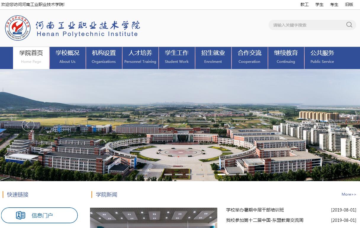 河南工业职业技术学院创建于1973年,是隶属于河南省人民政府的一所普通高等学校,是国家骨干高职院校、河南省示范性高等职业院校。学院先后隶属于国家第五机械工业部、兵器工业部、机械工业委员会、机械电子工业部、兵器工业总公司和河南省人民政府。学院规划用地1261.86亩,建筑面积53.98万平方米,固定资产总值7.14亿元,全日制在校生19000余人。现有机械工程学院、机电自动化学院、汽车工程学院、城市建设学院、经济管理学院、电子信息工程学院、环境工程系、应用外语与国际教育系、继续教育学院、基础科学教学部、社会科学教学部、体育教学部、艺术教育中心、大学生心理健康教育中心等14个教学单位,开设66个高职专业,形成了以工科专业为主体,以机、电、土木类专业为重点,以军工专业为特色,工、管、经、文协调发展的专业结构体系。学院现有专职教师近千人,企业兼职教师人数比例达60%以上,其中专任教师具有副高级以上职称人数占50%以上,双师素质教师人数占85%以上。有校内实验实训室183个、校外实习实训基地335个,拥有1个省级工程实验室——“柔性制造河南省工程实验室”,2个省高校工程技术研究中心,有河南省示范性实训基地5个,中央财政支持建设的数控技术、计算机应用技术实训基地,是全国首批15家国防科技工业职业教育实训基地之一。学院实验实训实习设备资产总值1.66亿元,图书馆藏书100多万册。近年来,先后建设了40余项国家、省级质量工程项目,80余门精品课程。其中有4门国家级精品资源共享课,4门国家级精品课,7门省级精品课程,获得20多项国家级和省级教学成果奖,1项职业教育国家级教学成果二等奖。学院依托行业办学优势,在河南省率先成立了以河南省国防科工局为主导、以省内大型军工企业和军品配套企业为主体,以学院为依托的河南军工职教集团,形成了以“政府主导,企业主体,学院主动服务”的“政产学”紧密结合的“集团化办学”模式。学院坚持走校企合作培养人才之路,校企共建“校中厂”9个,校外实习就业基地220多个,与美国GE公司共建的GE智能平台实训中心,是全国3家STEP培训认证中心之一;与富士康科技集团共建的SMT生产实训基地,成为富士康校企合作的样板工程;和长安汽车集团、中国电子科技集团第27研究所等军工企事业单位开展广泛合作,进行“订单式”培养和现代学徒制试点人才培养。学院创新推动军民融合发展,与中国航天科技国际交流中心签订了战略合作协议,合作共建“航天军民融合校企合作示范基地”和“航天高技能人才培养基地”,联合解放军信息工程大学导航与空天目标工程学院、河南北斗平台公司,三方共建北斗南阳分中心和空间信息技术应用协同创新中心,积极发起、主动参加中国军民融合协同创新联盟,并成为联盟首个教育基地。学院实施素质教育课程化管理,把职业生涯规划和就业创业教育贯穿人才培养全过程,以职业技能大赛为载体提高师生技能水平,学生在全国职业院校技能大赛、大学生数学建模竞赛、“挑战杯”科技作品竞赛、“发明杯”创新大赛中均有优异表现。学院建立了国家、省、校三级职业技能竞赛体系,以赛促学、以赛促教氛围浓厚,近3年来,获得国家级奖项93人次,省级奖项135人次,连年被教育厅表彰为“技能竞赛优秀组织奖”。大学生科技文化艺术节、社团文化节、职业生涯规划大赛等丰富多彩的校园文化活动常年不断,60多个学生社团和创新学习兴趣小组,积极参与各类社会公益活动,学生个性全面发展。毕业生以技术硬、信得过、靠得住、用得上,受到用人单位赞誉,就业率连年保持在98%以上。2012年7月,作为全国唯一一所高职院校被国务院表彰为“全国就业先进工作单位”。近年来,学院获得了全国就业先进工作单位、全国职业教育先进单位、国家技能人才培育突出贡献奖、全国军工文化教育基地、 全国群众体育先进单位、河南省文明单位、河南省普通大中专毕业生就业工作先进集体、河南省依法治校示范校、河南省文明学校、河南省学校行风建设先进单位、河南省大中专学生志愿者暑期‘三下乡’社会实践活动先进单位、 “河南省高校思想政治工作先进单位”、“河南省职业道德建设先进单位”等荣誉。欲穷千里目,更上一层楼。站在新的历史起点,学校将秉承“厚德笃学,知行合一”的校训、“自强不息,追求卓越”的学院精神,以更加饱满的激情,向着“省内领先、国内一流,具有一定国际影响力,军工特色鲜明的国家级优质高职院校”目标,阔步走向美好的明天!