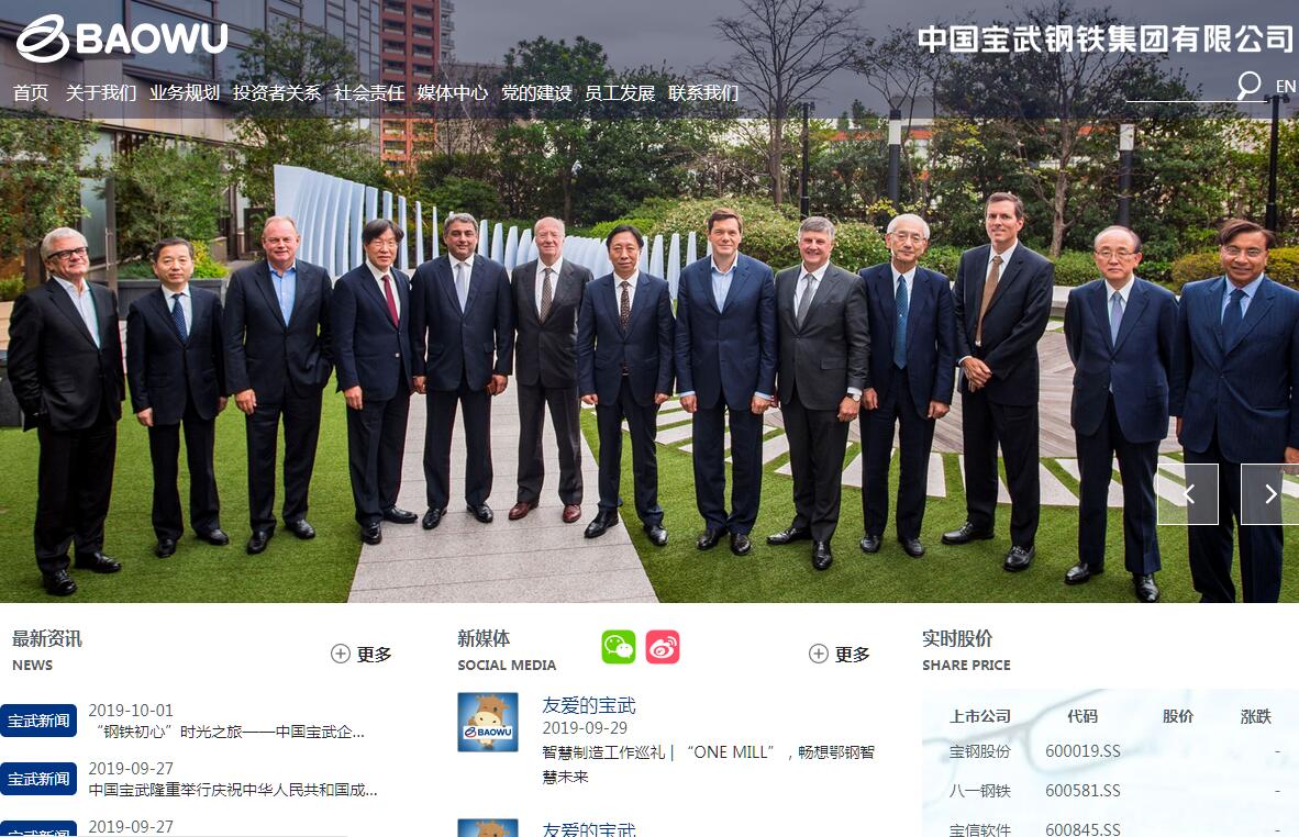 中国宝武钢铁集团有限公司(简称中国宝武)由原宝钢集团有限公司和武汉钢铁(集团)公司联合重组而成,于2016年12月1日揭牌成立。中国宝武注册资本527.9亿元,资产规模7395亿元,产能规模7000万吨,位居中国第一、全球第二,是国有资本投资公司试点企业。2017年,中国宝武取得了中国钢铁行业最佳经营业绩,实现营业收入4005亿元,利润142.7亿元,位居《财富》世界500强第162位。中国宝武以成为“全球钢铁业引领者和世界级企业集团”为愿景,以“驱动钢铁生态圈绿色智慧转型发展,促进企业各利益相关方共同成长”为使命,以“诚信、协同、创新、共享”为核心价值观,致力于通过改革和发展,构建在钢铁生产、绿色发展、智能制造、服务转型、效益优异等五方面的引领优势,打造以绿色精品智慧的钢铁产业为基础,新材料、现代贸易物流、工业服务、城市服务、产业金融等相关产业协同发展的格局。最终形成若干个千亿级营收、百亿级利润的支柱产业和一批百亿级营收、十亿级利润的优秀企业。钢铁产业定位于成为中国第一、世界领先的精品钢铁制造服务商,以宝钢股份为旗舰,与八一钢铁、韶关钢铁、鄂城钢铁、宝钢特钢、宝钢不锈、宁波宝新、宝钢德盛等,形成与国家“一带一路”倡议和长江经济带战略相匹配的空间战略布局。新材料产业聚焦大交通、能源及新型建筑用材等领域,探索和培育若干符合战略选择的前沿新材料方向,打造集研发、制造、加工服务于一体的综合材料供应商和解决方案服务商,培育集团新的支柱产业,成为中国宝武第二大制造业务板块。现代贸易物流业服务于冶金工业原燃材料、钢铁及相关材料和制品、相关大宗商品全流通领域,构建共建共享的基于互联网B2B开放平台和服务型生产体系,积极推动行业秩序重构。工业服务业依托集团的技术积累与品牌优势,以服务集团和行业为起点,为企业和社会提供全生命周期、高效运营的系统解决方案及相应的工程服务。城市服务业以存量不动产盘活为基础,适度增量为辅,以“产、融、网、城”一体化为抓手,聚焦发展产业不动产,催生配套的城市新产业,创新“厂区-园区-城区”协同发展新模式,成为中国领先的园区综合开发和运营服务商。产业金融业打造专业化、市场化、平台化的产业金融服务体系,为冶金及相关产业提供供应链金融、产业基金、资产管理和社会财富管理等金融综合服务,成为集团重要的支柱产业。