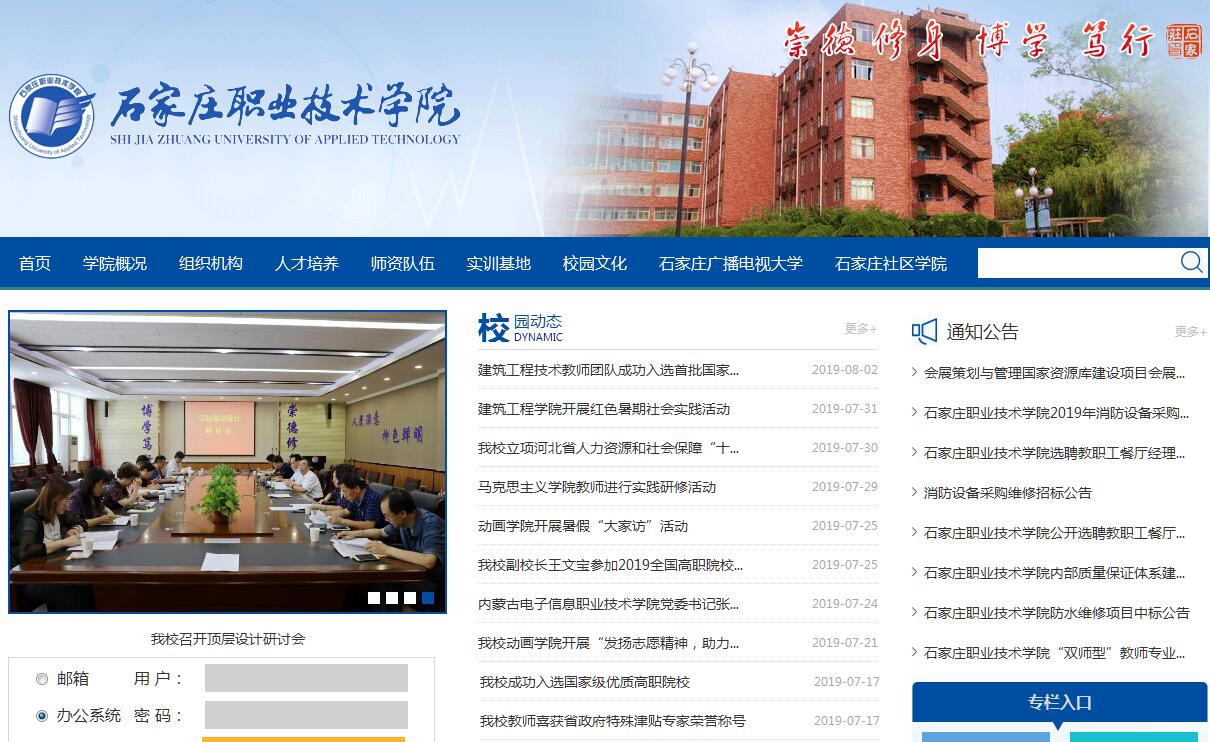 石家庄职业技术学院(原石家庄大学)创建于1984年,是经国家教育部批准、石家庄市政府主办的一所全日制普通高等院校。是国家级优质高职院校建设立项单位、国家现代学徒制试点院校、全国高职院校50强、全国五星级高职院校。经过三十多年的建设,学校已发展成为以全日制高等职业教育为主体,以广播电视教育(开放教育)、社区教育为“两翼”,多种办学形式并存的办学格局。目前,学校设有管理学院、经济贸易学院、信息工程学院、建筑工程学院、食品与药品工程学院、机电工程学院、电气与电子工程学院、艺术设计学院、动画学院、体育学院、软件学院、马克思主义学院、继续教育学院、创新创业学院和公共外语部、公共体育部等14个二级学院和2个教学部。有数英电子等校企共建混合所有制二级学院5个。学校开设电子信息类、土木建筑类、装备制造类、财经商贸类、媒体传播类、旅游类50多个专业,其中有河北省高职高专教育示范专业6个。有国家级精品资源共享课程2门,省级精品资源共享课程1门,省级精品课程11门。影视动画实训基地、机电一体化实训基地为中央财政支持的职业教育实训基地,建筑技术实训基地为河北省职业教育实训基地。有中高职衔接专业教师协同研修名师工作室(信息技术类)、紧缺领域教师技术技能传承创新平台(动画)2个国培基地。牵头河北省文化创意、河北省软件与服务外包2个职业教育集团。与石家庄奥祥医药工程有限公司、石家庄数英电子有限公司共建院士工作站2个。近年来学校不断加大高层次人才引进力度,形成了以博士、硕士和双师型教师为主的骨干教师队伍。现有教职工900余人,国家级、省级教学名师各1人,省突出贡献中青年专家2人,省“三三三人才工程”第二层次人选2人,省优秀教师2人,省优秀教育工作者1人,省级教学团队2个。在选派教师出国进修的同时,还聘请了多名外籍教师。学校面向河北、河南、湖北、湖南等17省招生,现有全日制在校生12000余人,成人教育本专科在籍生10000余人。毕业生就业率连续多年达99%以上。就业率和专接本率在省内名列前茅。学校多次荣获“河北省职业教育先进单位”“河北省大中专毕业生就业工作先进集体”“河北省普通高校示范性就业指导中心”称号。学校办学条件充实。现有教学仪器设备总值1亿余元。拥有覆盖全校的有线无线一体化网络以及现代化教学平台和信息交流平台。现代化图书馆藏书丰富、信息量大,有先进的图书检索系统和电子阅览室。学校建有2个共6万平方米的多功能教学楼和2个技能实训楼,88个校内实训基地,180个稳定的校外实习基地。校企共建30多个研发中心(工作室)。设有国家职业技能鉴定所,能为在校生进行相关专业的职业技能鉴定。学校生活文化体育设施齐全,建有大学生公寓、科技活动中心、球类馆、游泳馆和高标准综合体育中心。学校坚持“以人为本、知行合一”的办学理念,秉承“崇德、修身、博学、笃行”之校训,践行“求是、求精、求新”之校风,定位于“融入社会发展和科技进步,培养具有良好职业精神和能力的高素质技术技能人才”,着力深化办学体制机制改革,加强管理,推进规模、结构、质量和效益的协调发展,努力建设“人民满意、特色鲜明、区域一流、国内知名”的高职院校。