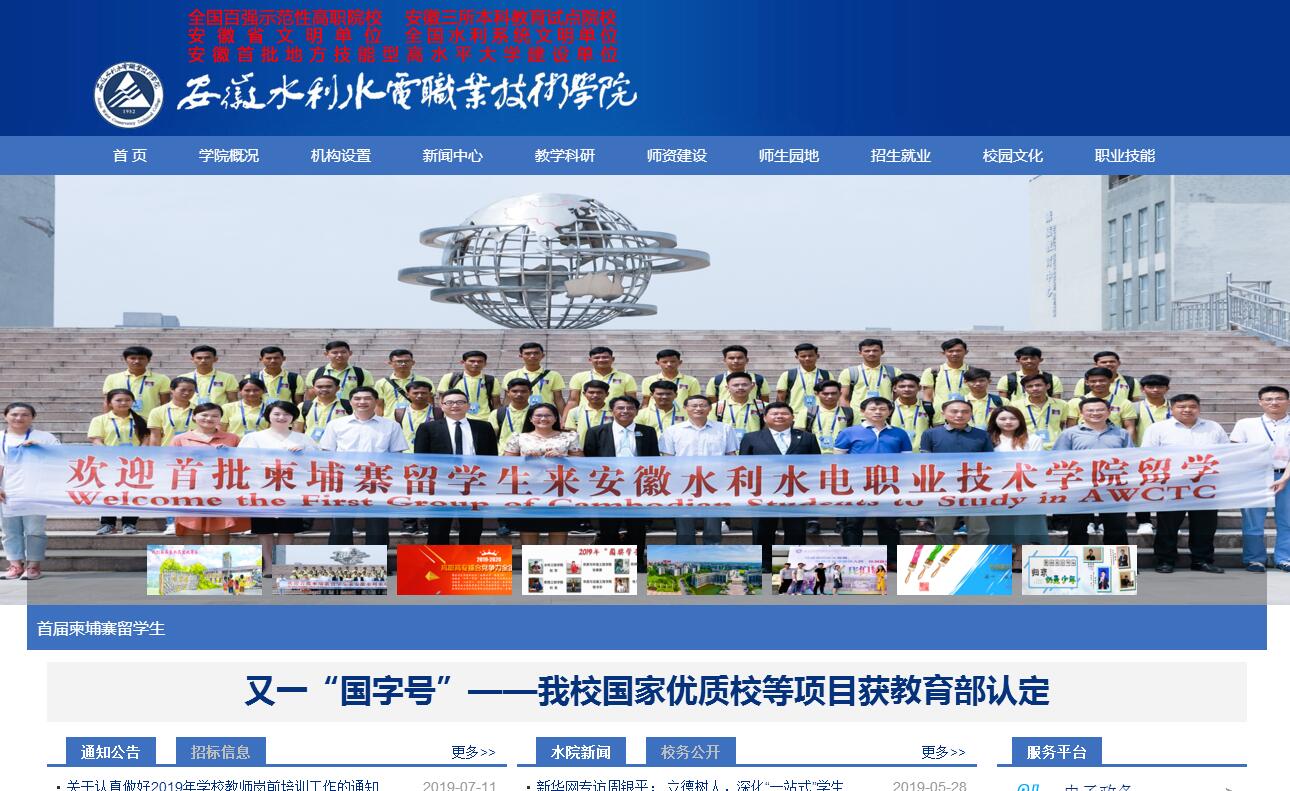 安徽水利水电职业技术学院始建于1952年,其前身为水利部“淮河水利专科学校”。2000年,经省人民政府批准,正式成立安徽水利水电职业技术学院。学院是全国100所和全省3所国家示范性高职院校之一。2014年,经省发展改革委和教育厅批准,在全省高职中率先进行“四年一贯制”本科教育改革试点,在校本科生600余人。首届84名本科生已顺利毕业,考研达线率及就业质量较高。2015年,经省教育厅批准为全省首批16所地方技能型高水平大学建设院校之一。2016年,荣获安徽省文明单位。2018年,获批全国首批优质水利高等职业院校建设单位、教育部第三批现代学徒制试点单位和安徽省“三全育人”综合改革试点高校。此外,学院还荣膺“全国高职高专人才培养工作水平评估优秀单位”“国家高技能人才培养基地”“全国水利系统文明单位”“全国职业教育先进单位”“全国水利行业高技能人才培养基地”和“安徽省普通高校毕业生就业工作标兵单位”等多项荣誉或称号。学院坐落于安徽省省会合肥,交通便利,环境优美。校园占地1040亩,建有教学楼、学生公寓、餐饮中心、体育馆、图书馆、大学生活动中心、大学生服务中心和素质拓展基地等完善的教学和生活设施40余万㎡。校内设有九大实训中心,拥有实践性教学所必须的各类实验室、实训室、实习工厂等130个,校外固定实习实训基地近400个。学院建有先进的智慧校园和交互式多媒体教学网。图书馆现有藏书70万册、电子图书60万册及各类专业期刊500余种。学院现有教职工700余人,其中教授、副教授、高级工程师等近200人,“双师型”教师400余人,中青年教师中接受博士、硕士研究生教育的300余人。拥有国家级、省级教学团队7个,省部级教学名师、专业带头人、教坛新秀50余人。此外,为切实推行理实一体化和工学交替人才培养模式,学院通过“水安学院”“合燃订单班”等形式积极构建多主体联合培养模式,建立了约400名企事业单位专家组成的“兼职教师库”。学院设有10个二级学院和本科教育部、基础教学部、创新创业学院、马克思主义学院、继续教育学院等教学单位。在校生人数近15000人,其中专科生13000余人,“四年一贯制”应用型本科生600余人。学院主动对接水利行业和区域经济社会发展需求,开设专业近60个,形成了以工程类专业为主体的专业格局。其中,国家级精品专业、示范专业和教改试点专业共13个、省部级特色专业和综合改革试点专业24个,省级人才培养模式创新实验区3个。工程技术应用类专业达90%以上,涵盖产业支撑型、人才紧缺型和特色引领型专业群。已建成校级以上精品课程130余门。主编出版国家级规划教材、省级规划教材和学院特色教材300余部。学院积极探索以应用为导向的高职科研模式,重视产学研合作、科研应用开发与成果转化,承担水利部、淮河水利委员会、省水利厅、省教育厅等重大课题多项,科研能力在全省高职处于领先水平。学院教研氛围浓厚,近年来,获国家发明专利多项,出版学术论著和教材500余部,发表教、科研论文1000多篇。学院积极面向行业和社会开展社会服务,常年承担社会培训和技能鉴定任务,近三年累计培训人次达8000余人,鉴定发证人次达15000余人。学院积极构建格物致知的校园景观系统、多元开放的文化展示系统、立体交互的文化媒体系统、一院一品的专业文化系统、师生共享的文化实践平台,致力打造人文、平安、节约、和谐“四个校园”。学院以水利行业精神为引领,以水文化和徽文化为底蕴,构建以“上善若水”为核心的特色校园文化。通过“文明城市进校园”“校园科技文化艺术节”等活动、领导干部上讲台、党政干部联系班级等举措以及“书院制”“学分制”等载体积极推进“十个育人”,全员、全过程、全方位打造学生成长空间,服务学生成人成才,努力培养德智体美劳全面发展的社会主义建设者和接班人。学院紧跟国家发展战略需要,加快国际化办学步伐,充分利用行业及自身办学优势,深化国际教育交流与合作,与多个国家和地区的高校和机构建立了合作关系。特别是近年来,学院积极响应“一带一路”国家战略,坚持“走出去”和“请进来”相结合的原则,积极开展与“一带一路”沿线国家(如哈萨克斯坦、柬埔寨等国家)开展国际交流与合作,取得了丰硕的合作成果。学院在全省高职中率先获批招收留学生资格,首批柬埔寨留学生将于近期来校学习。学院把创新创业教育注入人才培养全过程,围绕培养“厚基础、宽口径、高素质”的高技能人才的目标,实行以素质为基础,以能力为核心,以就业为导向,产学研结合的人才培养模式,积极通过辅修专业、通识教育、学分制度等努力完善技能型人才培养体系。已累计培养各类专门人近10万人,遍布于全国20多个省(市、区),奋战在水利、建筑、机电、电力、机械、市政、IT等各条战线上,成为安徽乃至全国经济社会发展的基础力量和重要支撑。学院在安徽及上海、江苏、浙江等“长三角”地区建立了多处就业基地,与省内外众多大型企事业单位建立了长期友好的合作关系。2018年,据第三方评估,我校毕业生就业后月均收入已超过4300元,毕业生就业率连续14年超过95%,始终稳居同类高校前列。自2008年以来连续荣获“安徽省普通高校毕业生就业工作标兵单位”称号。