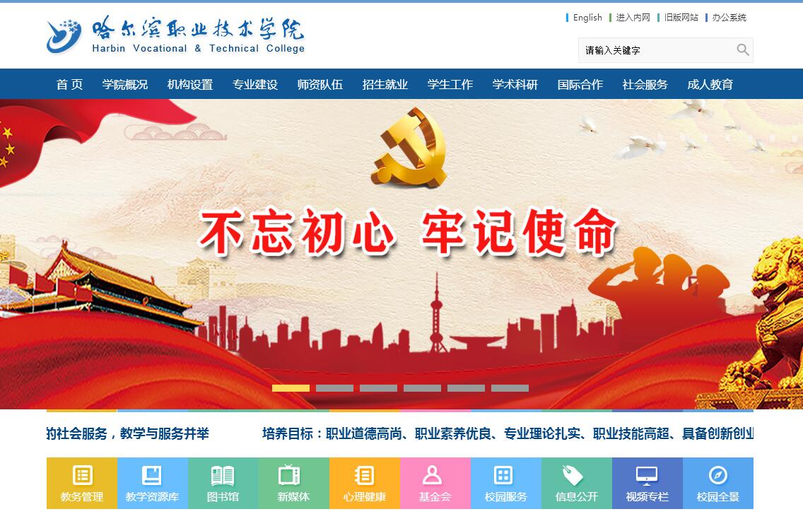 哈尔滨职业技术学院是哈尔滨市政府创建的一所重点服务地方装备制造业和现代服务业的公办综合性高等职业院校。2002年,经哈尔滨市人民政府批准,哈尔滨市经济管理干部学院、哈尔滨市建设职工大学、哈尔滨市财贸职工大学、哈尔滨市职工轻工学院、哈尔滨市科技职工大学、哈尔滨市机电职工大学和哈尔滨机电工程学校等七所院校合并组建哈尔滨职业技术学院。2018年,经黑龙江省人民政府批准,哈尔滨职工医学院并入哈尔滨职业技术学院。学院以创建中国特色高水平职业院校为目标,对办学方向、办学定位进行顶层设计:一是将办学思想定位为“有限的学历教育,无限的社会服务,教学与服务并举”;二是将培养目标定位为职业道德高尚、职业素养优良、专业理论扎实、职业技能高超、具备创新创业能力的高素质技术技能人才;三是将办学模式定位为创建中国特色的“教学工场”模式,建设共享型综合性开放式产学研用一体化的哈尔滨职业教育园区;四是将校园文化定位为以黄炎培职业教育思想为引领,有机融合地域产业文化精神、企业家精神及创业文化、现代大学精神和制度文化。以“做乐业之子”为校训,倡导“德高、善教、会做、能研发”的教风、“自律、乐学、善思、会创造”的学风和“自律、规范、精进”的校风,定位并培育“以工为主、综合发展、开放办学、服务地方”的办学特色。学院占地面积111万平方米,建筑面积27万平方米。现有固定资产总值5.7亿元,其中,教学仪器设备总值1.52亿元,图书总量93.76万册。设有机电工程、建筑工程、电子与信息、会计金融、现代服务、艺术与设计、汽车、国际、培训、社会服务等10个学院及公共基础教学部、思想政治教育部、体育教学部等3个教学部。建有205个实训室(基地),其中包括2个中央财政支持建设的汽车检测与维修实训基地和机电一体化技术实训基地、1个省级财政支持建设的物流管理实训基地。校外实习实训基地425个。现有高职在校生10501人。毕业生年就业率99%以上,专业对口率87%以上,双证书获取率达99%,用人单位满意率97%以上。学院现有教职工734人,其中教师423人,教授55人,副教授183人;硕士及以上学位教师227人,双师型教师296人。有全国专业教学指导委员会、现代学徒制委员会委员7名,全国行业职业教育教学指导委员会分委会委员13人,省级专业教学指导委员会副主任及委员20名;有全国黄炎培职业教育杰出校长1人、杰出教师2人、优秀理论研究奖1人;职业教育先进个人1人;省级教学名师、教学新秀、教学能手17人。有省级教学团队3个,市级重点领军人才梯队1个,哈尔滨市有突出贡献中青年专家3人。建立校企“双带头人、双骨干教师、双向培养、双向聘任”机制,聘请院士林尚杨、大国工匠高凤林等405名行业企业技术专家和能工巧匠担任兼职教师。学院现有国家级专业13个:国家级教学改革专业1个,国家现代学徒制试点专业2个,国家焊接资源库1个,国家服务产业发展专业2个,国家职教基地2个,国家骨干院校央财专业4个,国家专业示范点专业1个。现有省级专业13个:省级重点专业9个,省级现代学徒制试点专业3个,省级示范专业点专业1个。学院紧紧围绕先进装备制造、生物医药、新一代信息技术、金融服务、现代物流等区域重点产业发展,建设电气自动化技术、道路桥梁工程技术、模具设计与制造、焊接技术及自动化、软件技术、机械制造及自动化等6个国家级重点专业;物流管理、环境艺术设计、会计电算化、会计(注册会计师)、电子信息工程、机电一体化技术、建筑工程技术、电脑艺术设计、汽车技术服务与营销等9个省级重点专业;电子商务等6个市级重点专业;数控技术等8个院级重点专业,带动相关55个专业全面发展,形成契合地方产业发展的“以工为主、综合发展”的专业格局。学院坚持有限的学历教育与无限的社会服务并举,在开展学历教育的同时积极面向社会广泛开展职业培训。具备以下资质:外交部和教育部授予的“中国—东盟教育培训中心”、教育部授予的“全国高职高专师资培训基地”、工信部授予的“全国服务外包紧缺人才培训基地”、中国模具工业协会授予的“全国模具人才培训基地”、人力资源和社会保障部授予的“全国商务管理师职业培训基地”、商务部授予的“全国电子商务师鉴定培训机构”、黑龙江省级职业技能鉴定所、黑龙江省高技能人才培训基地、哈尔滨市高校毕业生职业培训定点机构、哈尔滨地铁集团员工培训基地。每年开展各类职业培训约3.5万人次。学院积极支持企业技术创新。获得专利260项,其中发明专利2项。累积实现技术研发咨询服务到款额2628万元,为企业创造产值3721万元