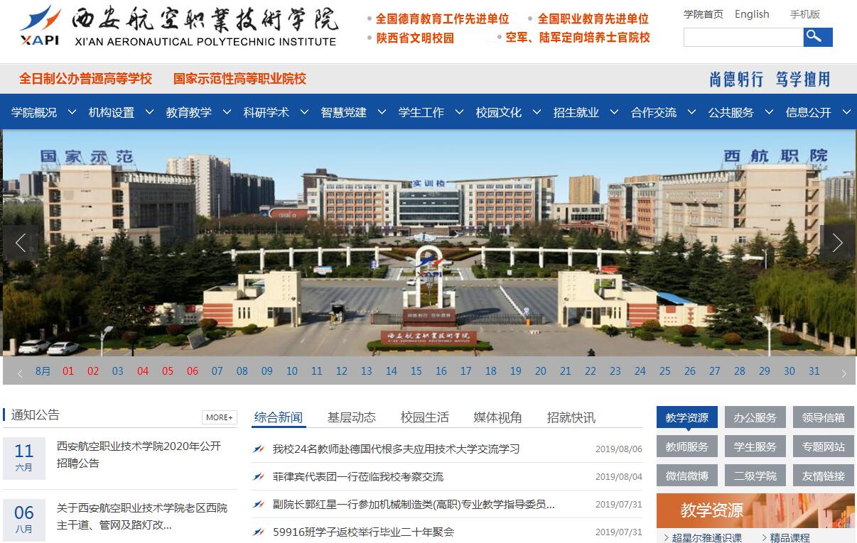 西安航空职业技术学院是国家百所示范性高职院校,陕西一流高职院校建设单位,是教育部批准的具有高等学历教育招生资格的全日制公办普通高等职业院校,直属陕西省教育厅,面向全国招生。学校位于中国著名航空城——西安市阎良区,处于国家级航空产业基地。建校60年来,学校秉承“尚德躬行、笃学擅用”的优良传统,发扬“艰苦创业,团结奉献,育才树人,航空报国,追求卓越”的西航精神,为国家航空事业培养了大批高素质劳动者和技术技能人才,形成了“明德敬业、严谨求是”的校风。学校前身是1958年成立的“第三机械工业部阎良第一航空工业工人技术学校”,隶属于原第三机械工业部,1979年更名为空军航空工程部第三技工学校,隶属于空军,1985年改为全日制中等专业学校,1994年更名为空军西安航空工程学校,2001年由空军移交陕西省管理,升格大专并更名为西安航空职业技术学院。学校先后被确定为国家示范性高职院校、现代学徒制试点院校,被评为全国职业教育先进单位、全国国防教育特色学校、全国高职院校实习管理50强院校、省级文明校园、陕西省职业教育先进单位、陕西省高等学校毕业生就业工作先进集体。2006年12月,学校以全优的成绩顺利通过教育部全国高职高专人才培养工作水平评估;2010年通过了国家示范院校建设项目验收,被教育部、财政部确定为百所重点建设的“国家示范性高等职业院校”;先后被国防部、教育部确定为陕西唯一一所空军、陆军定向培养士官院校;被教育部遴选为“高端技能型、应用型人才联合培养百千万交流计划”中方项目院校;被国家发改委、教育部确定为产教融合工程项目建设单位;被陕西省遴选为优质院校立项建设单位,陕西省普通高校一流高职院校建设单位;学校还获得了国家级教学成果奖,主持了国家级教学资源库,在国家级技能大赛和学科竞赛中也在全国名列前茅;飞机机电设备维修专业被教育部评为国家级交通运输类专业示范点。学校现有南、北、东3个校区,占地面积1000多亩,在校生12000余人。设置有九个二级学院,并创建了通识教育学院、士官学院、创新创业学院、马克思主义学院四个特色学院,开设了通用航空、航空维修、制造、材料、管理,自动化、电子、计算机、汽车,门类齐全、航空特色鲜明的高职类专业50个,涵盖了航空设备维修、机械装备制造、电子信息技术、航空管理服务、交通运输营销等职业门类。现有航空、机械等实验实训室133个,校内实训基地21个(其中15个为中央、省级重点实训基地),依托航空产业的校外实训基地297个。建有集航空人才培养和航空科普于一体的航空科技馆,国家重点支持的数控实训基地,与国家航空高技术产业基地联办的“国家航空产业基地培训学院”,与德国纽伦堡工商会合作建立“中德职业教育培训中心”联合开展IHK证书培训。学校获得国家级教育教学成果奖2项,主持国家级教学资源库1个,省级教学成果奖18项,其中一等奖6项;获得了省级科技进步一等奖;建有国家重点建设专业8个,省级重点专业14个;建设省级专业综合改革试点项目6个,国家精品资源共享课2门,国家精品课程2门,省级精品课程18门。拥有设施完备的塑胶田径运动场、大学生体育馆。教学、科研仪器设备总值1.6亿元,生均达1.5万元。学校承接高等职业教育创新发展行动计划项目布点36个,任务44项,11个骨干专业被遴选为“一流专业”建设(培育)项目。省级双创教育试点院系2个。学校师资队伍结构合理、特色鲜明,现有专、兼职教师740名,其中国家“万人计划”教学名师1名,全国优秀教师3名,全国职业教育先进个人2名,黄炎培职业教育杰出校长、杰出教师各1名,陕西省首批“特支计划”领军人才1人,省级优秀教师2名,省级教学名师12名,省级优秀教学团队6个。学校积极引进高学历、高水平专业技术人才,聘请中国工程院院士陈一坚为名誉教授,美国阿肯色州大学、西安交通大学、西北工业大学等多所高校、科研院所200余名教授及工程技术人员担任教师和客座教授。学校积极引入国内外优质教学资源,先后与美国、德国、加拿大、新加坡、台湾等国家和地区的10余所学校或教育机构开展了国际合作,曾接收了新加坡理工学院126名交流生来校学习。与美国阿肯色大学、美国斯波坎社区学院、美国加州飞行学院、加拿大堪纳多学院、新加坡理工学院等多所院校建立了校际交流合作关系;与行业企业、兄弟院校建立了有效沟通交流机制,加入了中国航空学会、陕西航空学会等行业组织,担任“国际航空职业教育论坛”常任主席单位,全国航空工业职业教育教学指导委员会副主任单位,中国职业技术教育学会高职教育分会副会长单位,中国航空学会、中国职教学会、中国机械工业教育协会理事单位;牵头组建了陕西航空职教集团,率先探索了高职教育集团化办学之路,充分发挥了国家示范性高等职业院校的引领作用。学校坚持以服务发展为宗旨,以促进就业为导向,定期举办毕业生就业洽谈会,目前已形成了由空军航空维修企业、中国航空工业集团企业、中国航空发动机集团企业、民用航空企业、航天企业、装备制造业等300多家企业组成的稳定的就业基地。近五年来,毕业生就业率稳定在97%以上,每年约有60%的毕业生签约大中型国有企业,近40%的毕业生签约中航工业、空军装备维修、民航运输、航天