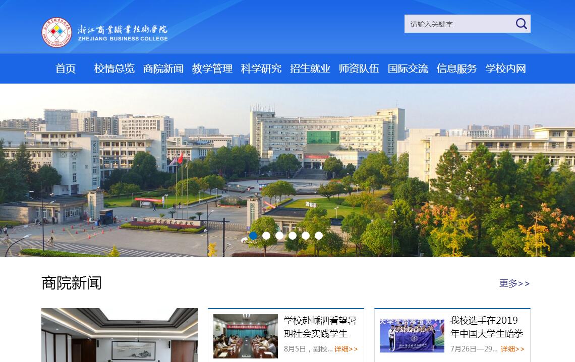 浙江商业职业技术学院前身为创办于1911年的杭州中等商业学堂。一百多年来,学校秉承“诚、毅、勤、朴”的校训,坚持“育人为本,服务社会”的办学方针,培养了一大批专业技术人才,涌现出经济学家骆耕漠、爱国人士章乃器等著名校友,被誉为“浙商人才培养的摇篮”。现为全国首批现代学徒制试点高校、浙江省首批省级示范性高等职业院校和浙江省首批优质高职院校。学校主校区坐落在风景如画的钱塘江南岸杭州滨江高教园区内,另有德胜校区位于杭州市区内,学校占地面积569亩,建筑面积逾23万平方米,图书馆纸质图书藏书98万余册,电子藏书近331万册。在校生1万1千余人。现有教工600余人,其中专任教师440余人,二级教授4人,正高职称46人,副高职称148人,博士12人,硕士及以上学位的教师425人,“双师素质”教师达86.42%以上。学校现有经济管理学院、电子商务学院、财会金融学院、旅游烹饪学院、应用工程学院、艺术设计学院、人文学院和外国语学院等8个二级学院31个专业及方向,拥有烹饪工艺与营养、供热通风与空调工程技术等2个省级重点专业,酒店管理、环境艺术设计、国际贸易实务、电子商务、投资与理财、应用电子技术、物流管理、视觉传达艺术设计、连锁经营管理等9个省级特色专业,环境艺术设计、酒店管理、会计、连锁经营管理等4个省级示范院校重点建设专业;电子商务、会计、供热通风与空调工程技术、环境艺术设计、烹调工艺与营养等5个省级优势专业。拥有国家级精品课程6门,省级精品课程23门,省级非物质文化遗产传承教学基地1个。获得国家级教学成果二等奖三项,省级教学成果一等奖五项,二等奖六项,省精品在线开放课程2门,国家精品资源共享课一门。学校现拥有国家级教学团队1个,省级教学团队3个,全国优秀教师1人,全国模范教师1人,全国职业教育先进个人1人,享受国务院政府津贴专家2人,省突出贡献中青年专家1人,省级教学名师3人,省高校优秀教师5人,省级专业带头人19人,首批资深级注册中国餐饮服务大师1人,首批浙江资深餐饮服务大师1人,五一巾帼标兵1人,浙江教育十大年度影响力人物1人,浙江教育十大年度新闻人物1人和浙江省最美教师提名奖1人。学校传承百年校训,弘扬浙商精神,强化商科特色专业建设和商科人才培养特色建设,积淀“依托行业办学,校训文化育人”的商科特色,形成“专业教育、就业教育、创业实践、质量保证、资源整合”为平台的“五位一体”创新创业教育商科人才培养特色,打造成为“浙江商业教育品牌”。学校坚持“依托行业办学、校企合作育人”的办学方针,依托全国500强企业浙江省商业集团公司,组建了与100多个成员单位和著名企业深度合作的浙商职教集团;先后与杭州市滨江区及萧山区人民政府、衢州市人民政府、舟山市定海区及嵊泗县人民政府签署了战略合作协议;与中国商业经济学会共建中商商业工程技术研究院;与浙江省长三角城镇发展数据研究院、浙江复兴国学研究院、浙江省金融科技研究院签署了战略合作协议。学校与阿里巴巴、国大集团、物美集团、韵达速递、圆通速递、浙商保险、中旅旅业集团等数十家知名企业在高素质技能型专业人才培养、继续教育与各类社会培训、技术研发与管理咨询等方面开展全方位合作。建有十余个校企合作学院,累计开设近百个校企合作订单班,走出了一条具有引领和示范效应的校企合作办学之路。学校开放办学成绩显著,成功入选2016年全国高等职业院校国际影响力50强。学校先后与美国东北州立大学、加州州立大学、澳大利亚西澳洲中央技术学院、法国商业研究与行为学院等10多所高校开展合作交流,积极响应国家“一带一路”战略,加强与“一带一路”沿线国家的教育合作,输出优质教育资源。学校“全真环境下的创业教育”被《光明日报》等主流媒体誉为“中国创业教育的破冰之旅”,被教育部专家总结为全国“创业教育三大模式之一”,学校被誉为“中国创业教育的小岗村”。学校坚持育人为本,德育为先,着力培养现代服务业高素质技能型专门人才,连续8年一次性就业率在97%以上,用人单位对毕业生综合素质的满意度达到95%以上,社会知名度日益提高,已成为省内外考生报考的热门院校。学校现为全国高职高专创新创业教育协作会、中国商业经济学会职业教育分会、浙江省商业经济学会、浙江省形象设计协会会长单位,浙江省商贸业联合会、浙江省商业总会、浙江省连锁经营协会等行业组织的副理事长单位。学校还获得“全国高等学校创业教育研究与实践先进单位”、“全国高职高专校长联席会全国高职院校国际影响力50强”、“新媒体优秀院校50强”、“全国高职高专院校科研工作先进单位”、“教育部高职高专人才培养工作优秀院校”、“高职院校创新创业示范校50强”、“浙江省文明单位”、“浙江省职业教育先进单位”、“浙江省平安校园”、“浙江省普通高校毕业生就业工作优秀单位”、“浙江省依法治校示范校”、“浙江省数字校园示范学校”、 高职院校“双师”比例100强、“高职院校思想政治工作创新示范案例50强”以及“专利获得数量全国高职院校30强”等荣誉称号。如今,学校正以百年的办学积淀,以服务浙江区域经济发展和产业结构调整,培养现代服务业高素质、高技能人才为己任,