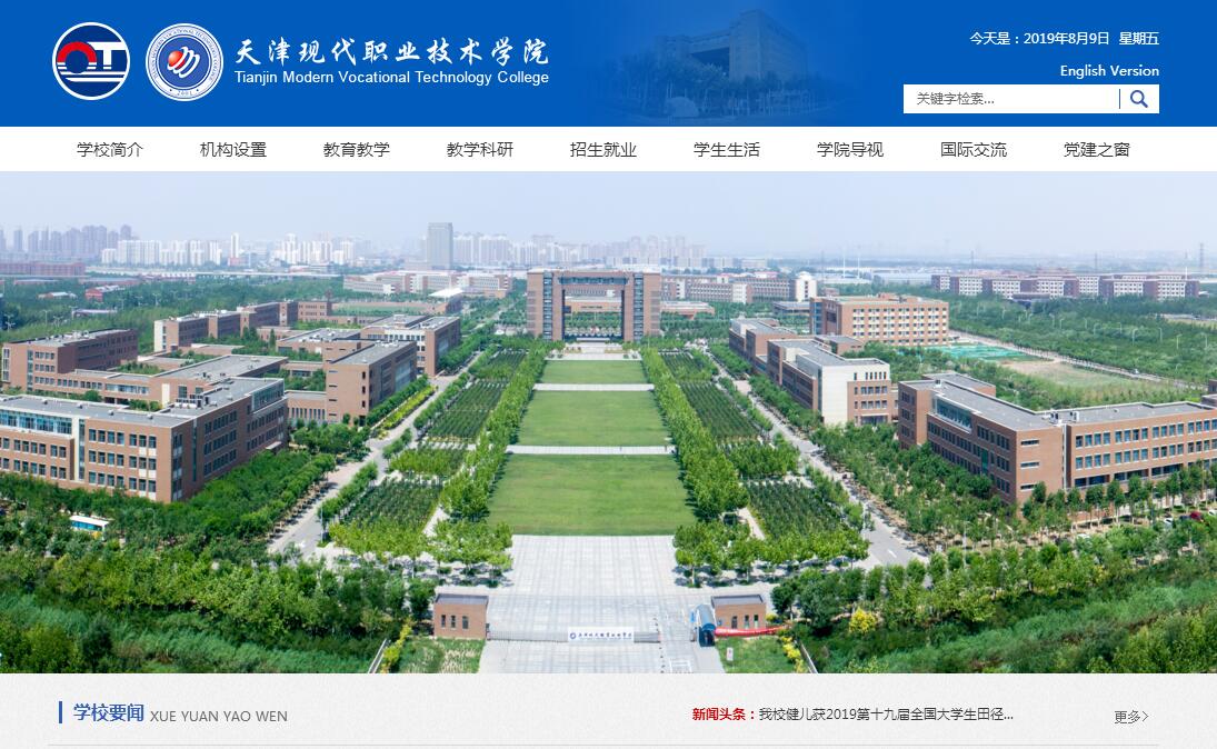 天津现代职业技术学院成立于2001年,是一所公办全日制高职院校,首批进入天津海河教育园区。2010年学院被教育部、财政部批准为国家示范性骨干高职院校建设单位,2015年以优秀等级通过验收;2014年完成国家生物技术及应用专业教学资源库建设项目并通过验收;2012年经天津市教委批准与天津商业大学开展联合培养四年制高职人才试点工作。学院是滨海新区技能型紧缺人才培养基地,高等职业学院骨干教师国家级培训项目单位,生物制药技术专业被教育部评为全国职业院校健康服务类示范专业。荣获国家第四届“黄炎培职业教育奖优秀学校奖”。学院设置有36个专业,其中7个国内领先的特色专业,3个天津市级教学改革试点专业。学院紧密结合举办方鲜明的行业特色及京津冀地区区域经济的产业特点,秉承“对接产业、优化结构、协调发展、强化特色”的专业建设理念,主动对接区域经济社会发展和产业结构调整与升级的需要,紧扣结合行业企业人才需求,不断优化调整专业布局,形成了涵盖 36个专业的8大专业集群,其中央财政支持重点建设专业6个,天津市重点建设专业4个、院级特色(重点)建设专业4个。重点建设专业带动了专业集群发展和建设水平的整体提升,形成了“国家-市-校”三级专业协同发展布局。专业群涵盖中央财政支持的食品生物技术、食品营养与检测、药品生产技术的生物专业群,中央财政支持的环境工程技术专业群,涵盖中央财政支持的精密机械技术、无人机应用技术专业的装备制造业专业群,涵盖天津市财政支持的物联网应用技术、机电一体化技术专业的电子信息产业群。装备制造业、电子信息产业、生物医药产业产业均属于天津八大支柱产业,学院专业设置与区域产业结构匹配度较高。现有7个二级学院,在校生达9000人,其中来自巴基斯坦、泰国和越南的留学生18名。学院有教授、副教授131人,省市级教学名师2人。近三年,学院在本市招生一志愿率为100%,毕业生平均就业率98%以上。学院始终致力于高职教育的教学研究和改革,主持《生产实训一体化教学车间模式的研究与实践》获得高等教育国家级教学成果二等奖、天津市教学成果一等奖;主持《在高职院校编组预备役部队,军企校共育技术技能人才》获国家教学成果二等奖,天津市教学成果一等奖。主持国家高等职业教育“十一五”规划课题《军地联合培养高技能士官人才的模式研究》。学院9次承办全国职业院校技能大赛并获得相关赛项15个一等奖,6个二等奖,7个三等奖。现代学院注重国际交流与职业教育的深度融合,为全校师生搭建了广阔的国际化发展平台。学院是天津市高校外国留学生教育管理学会理事单位,具备聘用外国专家资质,聘用了外籍专家、教师4名,国际交流工作兼职教授1名。澳洲塔斯马尼亚红酒文化培训中心落户现代学院。学院先后与澳大利亚塔斯马尼亚TAFE学院等10余所国外境外院校和机构就课程、师资、留学生等合作项目签订协议。现代学院先后选派教师217人次赴德国、瑞士、美国、澳大利亚、新西兰、日本、新加坡、韩国等13个国家和我国台湾、香港、澳门地区进行专业培训。完成了精密机械技术等3个专业的国际化课程标准建设,提升了国际化优势专业建设水平。