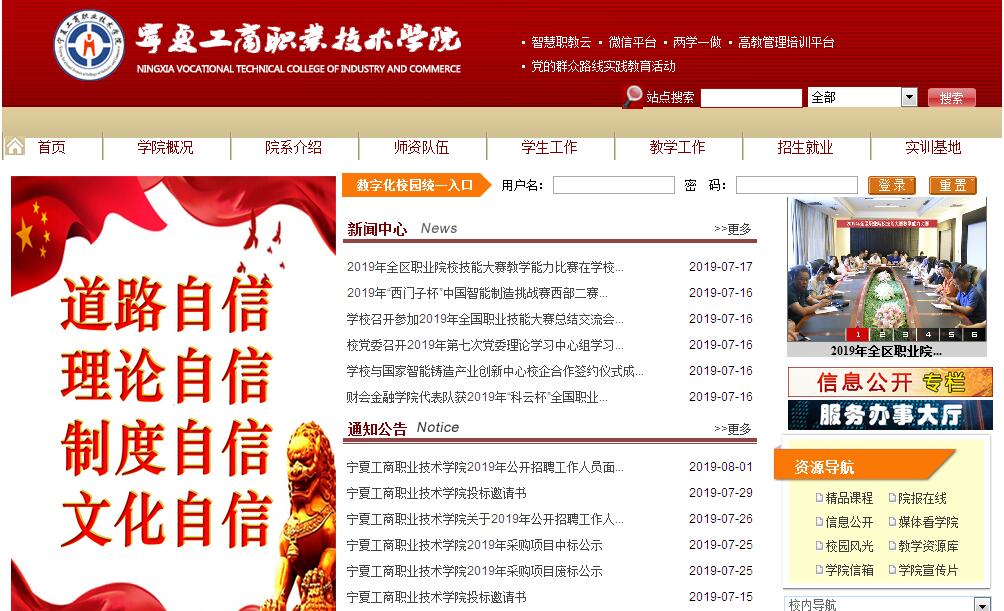 宁夏工商职业技术学院,是经宁夏回族自治区人民政府批准设立、教育部备案的具有高等学历教育招生资格的公办全日制普通高等学校,隶属于宁夏回族自治区教育厅,是宁夏回族自治区第一批示范性高职学院和国家首批百所骨干高职学院。学校初创于1951年,由宁夏商业学校、宁夏供销学校、宁夏粮食学校、宁夏农业机械化学校和宁夏化工技工学校五校历经两轮合并形成现有规模,2006年更为现名。学校坐落于宁夏职业教育园区内,同宁夏职业教育实训基地实行一体化管理。2015年,学院建成了现代电子信息、烹调工艺与营养、现代煤化工和现代装备制造等4个中国(宁夏)现代职业技能公共实训中心,与地方经济紧密衔接,成为宁夏打造“西部职业教育高地”的重要组成部分。学校是宁夏办学规模最大的综合性高职院校之一。紧扣“立足现代服务业,面向能源化工、装备制造业”的办学定位,重点建设了旅游类、财经商贸类专业群、生物与化工类专业群等6大专业群,形成了“工”与“商”并举的专业布局。目前,学院拥有4个国家级重点专业、4个国家第二批现代学徒制试点专业、5个自治区级骨干示范专业、10个自治区级重点特色专业,占学院全部招生专业的47.22%,覆盖学院所有院(系)。学校把立德树人作为根本任务。紧扣自治区经济社会发展及现代产业发展需求,牢固树立人才培养的中心地位,秉持“厚德、勤学、敬业、强能”的校训精神,坚持“质量立校、人才强校、特色兴校”的治校方针和“德能并重、多元融通、对接产业、服务社会”的办学理念,致力于培养“德技双馨、理实并举、知行一体、广受欢迎”的高素质技术技能人才。目前,在校生近万人;教职工630人,教授35人、副高及以上职称教师133人,“双师素质”教师290人,博士研究生2人,硕士及以上学位教师235人;聘任区内大中型企业客座教授21名,专业带头人37名,骨干教师75名,自治区及以上优秀教师2人、教学名师21人,自治区“五一劳动奖章”获得者4人、“塞上技能大师”1人、技术能手6人,自治区级教学团队12个,自治区级大师工作室2个,并涌现出一批“享受国务院特殊津贴”、“中国烹饪大师”、“全国餐饮服务大师”等优秀教师。学院设有职能处室15个、教辅教学机构17个;拥有1个全区最大的国家职业技能鉴定所;建有1个大学生创业园、7个校中厂、7个应用技术研发中心和174个校内教学做一体化实训室;校企合作建立了18个教师流动中心、204个校外实习就业基地,校企携手开展横向课题90余项, 获批专利33个。学校注重学生职业技能的培养。自2008年以来,学生在全国和自治区各级各类职业技能大赛中屡获佳绩。学校已成为全区技能大赛主办区,学生个人及团体获得区级一等奖224个;获得国家级二等奖以上10余个(荣获2017年全国职业院校技能大赛汽车营销赛项一等奖,实现了宁夏在全国职业院校技能竞赛一等奖“零”的突破)。同时,学校主动承担和鼓励学生积极广泛参与各类大型社会服务工作,先后承担了北京奥运会、第24届世界大学生冬季运动会、亚运会、第41届上海世博会、中阿博览会等国际性餐饮及社会服务工作,为宁夏职业教育赢得了荣誉,提升了学校办学知名度和影响力。学校一直把人才培养作为中心工作,大力培育工匠精神,厚植工匠文化,以培养地方经济社会发展需要的复合式创新型高素质技术技能人才为目标,不断提升学生的就业能力、职业生涯拓展能力和幸福生活创造能力。学校累计为社会培养培训各类人才10万余名,毕业生初次就业率始终保持在96%以上,深受用人单位欢迎,学院连续多年被授予“全区大中专院校毕业生就业工作先进集体”称号。学校加大“走出去”“引进来”步伐,强强联合、共谋发展,先后与宁夏大学、常州纺织服装职业技术学院、南京旅游职业学院、福建黎明职业大学、台湾大仁科技大学等多所区内外高校,与美国伯克利学院、突尼斯苏斯高等旅游学院等境外大学,在人才培养、师资互派、专业共建、科技研发等领域开展了密切深入合作。学校先后获得“全国教育系统先进集体”“全国职业教育先进单位”“国家技能人才培养培育突出贡献奖”“技能人才培养奖”“职业教育创新奖”“全国教育成果奖”“全国职业技术学校职业指导工作先进学校”“黄炎培优秀学校奖”“国家级职业教育教学成果奖”以及“自治区先进基层党组织”“自治区培养和使用技能型人才先进集体”“自治区定点帮扶先进单位”“自治区教育扶贫先进单位”等多项荣誉。学校将以习近平新时代中国特色社会主义思想为指导,深入贯彻落实党的十九大、全国全区思政工作会议、全国教育大会精神,紧跟现代职业教育发展步伐,不忘初心振奋精神、牢记使命实干兴校,坚定不移走好内涵建设和质量提升之路,为把学校打造成“开放共荣、特色鲜明、全国一流”的高质量高水平高职院校而努力奋斗。
