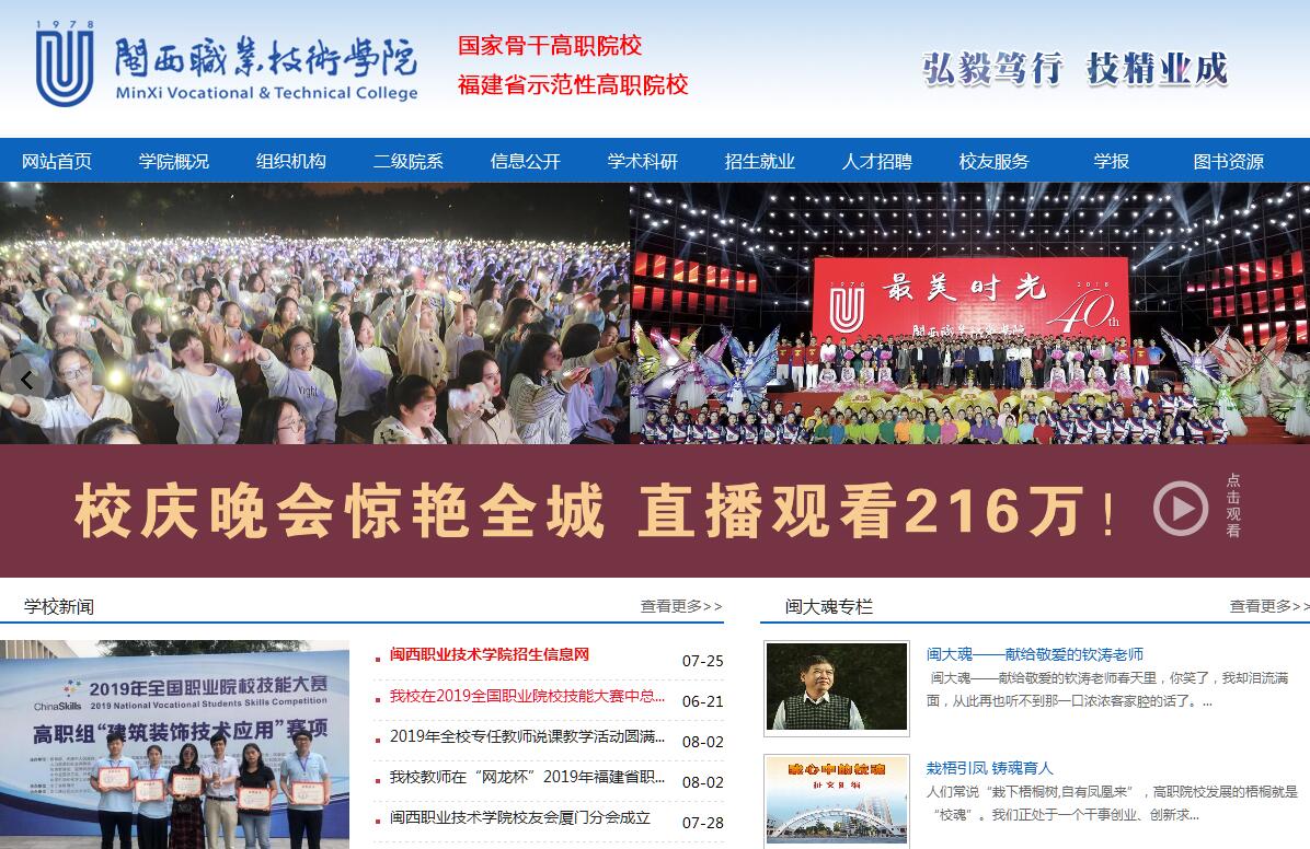闽西职业技术学院为公办高等职业院校。闽西职业大学创办于1983年;龙岩地区工交大专班创办于1978年,1980年改为龙岩工业学校。2004年闽西职业大学、龙岩工业学校合并,更名为闽西职业技术学院。2008年被确定为福建省示范性高职院校,2010年被国家教育部、财政部确定为“国家示范性高等职业院校建设计划”骨干高职院校立项建设单位,2016年1月被确定为“福建省示范性现代职业院校建设工程”培育项目院校。2016年2月国家骨干高职院校建设项目通过“两部”验收,学院跻身国家200所示范(骨干)高职院校行列。据中国科学评价研究中心、中国教科评价网发布的“2018-2019年中国高职高专院校竞争力排行榜”显示,学院竞争力排行福建省高职高专第4、全国高职高专第212位。学院坐落于全国著名革命老区、闽粤赣边交通枢纽、“海上丝绸之路经济带”加快崛起的新兴城市--福建省龙岩市。学院占地550亩,规划用地690亩,建筑面积22.8万平方米。现有在编教职工534人,其中高级职称(教授、副教授等)164人,中级职称(讲师等)209人,硕士学位教师239人,双师素质教师占92.71%。有省级教学团队3个、省级职业院校名校长1人,省级专业带头人13人,省级教学名师3名、“黄炎培杰出教师奖”教师2名,省“千百万”人才1名。有全日制在校生7000多人,设有39个高职专业,其中国家级教改试点专业1个、省级精品专业7个、省级示范专业9个、省级职业院校服务产业特色专业群4个、省级现代学徒制试点专业3个、省级创新创业改革试点专业2个、省级“二元制”改革试点专业5个、省级职业院校产教融合示范专业点2个、省级精品课程14门。建有校内实训室148个、生产性实训基地12个,校外实训基地263个,其中中央、省级财政支持的实训基地4个。教仪设备总值13000多万元,馆藏纸质文献63万册。在2012-2013年度福建省高等职业院校专业建设质量评价结果中,学院26个专业进入全省排名前十名,其中15个专业进入前五名。2013年开始与本科院校合作开展“机械设计及自动化”与“电子信息工程”两个应用型本科人才培养试点专业。学院坚持“立足龙岩、面向全省、辐射周边,为生产、建设、服务和管理一线培养技术技能人才,促进区域经济社会发展”的办学宗旨,围绕“根植中央苏区的示范性高职院校”的办学定位,坚持走内涵发展道路。全面推进产教融合,主动对接区域产业发展,全面加强现代制造类、信息云互联类、建筑技术类、文旅创意设计类、商贸服务类、环保生化类、医药健康类、幼儿教育类等专业群建设,以专业群为核心打造教学团队及专业品牌,形成对接产业的特色专业体系。积极创新办学体制机制,推进校企合作、深度融合,与300多家企业在人才培养、基地共建、技术服务等方面开展合作,共建新龙马汽车学院等专业学院,共建17个“校中厂”“厂中校”,共同试点现代学徒制人才培养,举办7个行业企业订单班、冠名班。积极推进闽西职业院校联盟建设,在上杭、武平、永定等中职学校设立分校,发挥国家骨干校的示范辐射作用。加快建设具有公共性、公益性、开放性、职业性和先进性的市职业教育公共培训实训基地。学院遵循“弘毅笃行、技精业成”的校训,围绕“培养一技在手现代阳光工匠”的人才培养目标,积极推进人才培养模式改革,构建“基于工作过程系统化”课程体系,推行“教学做一体化”教学模式改革和任务驱动、项目导向等教学方法,试行多学期、分段式等灵活多样的教学组织形式,推进课程内容与职业标准对准、教学过程与企业生产过程对接,提高学生职业能力、学习能力、发展能力,提高人才培养质量。坚持以立德树人为根本,强化思想引领,全面实施人文素质教育“1234”体系(以社会主义核心价值观为主线,加强思想政治教育师资队伍、基地两个平台建设,利用课程、活动、拓展三种途径,实施立德、立身、立行、立业四个模块教育),推进文化育人,提高学生综合素质。坚持以学生为中心的导向,完善“闽大观”办学理念,努力践行以辅导员“思政教育”为核心,班主任“集体主义教育”和训导师“个体关爱”为两翼的“三维育人创新体系”,探索闽西高职教育特色之路,铸造闽西高职教育的新品牌。近三年,学院学生参加技能大赛取得优秀成绩,获全国一等奖4项(行业)、二等奖10项、三等奖6项;省级一等奖12项、二等奖28项、三等奖67项。近三年,毕业生年度就业率始终在95%以上,用人单位满意度在94%以上。学院牢固树立开放开门办学理念,主动服务区域经济社会发展,提高服务发展的贡献度。建立环境检测中心、会计服务中心、普通话培训考试中心、汽车发电机研究所等技术服务、培训测试机构,开展社会服务、课题研究、产品开发,开展职工培训、技能鉴定、创业培训、社区培训等。成立“管理创新应用文科研究中心”等7个科研创新平台和“环保科研创新团队”“物联网创新团队”“企业信息化管理科研创新团队”等9个创新团队,打造一流科研技术服务队伍,为区域经济社会发展提供智力支持。学院始终以服务发展为宗旨,以促进就业为导向,发力人才培养供给侧改革,努力把学院打造为区域技术技能积累、科技服务、文化传承创新的聚集高地,形成了“一个根本(以立德树人为根本)两翼并举(学历教育与继续教育并举)三维齐进(技术技能人才培养、科技服