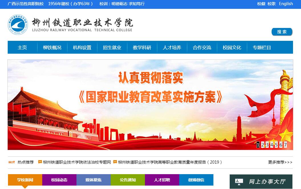 柳州铁道职业技术学院,是一所公办普通高等学校,学校是广西壮族自治区示范性高职学院、广西特色高校建设项目单位、首批广西高端应用型本科人才联合培养改革试点单位,为“中俄交通大学联盟”成员高校。学校前身为1956年5月成立的柳州铁路运输学校;2003年8月,经广西壮族自治区人民政府批准,在柳州铁路运输学校基础上组建柳州运输职业技术学院;2009年3月26日,自治区人民政府同意柳州运输职业技术学院正式更名为柳州铁道职业技术学院。截至2015年12月,学校占地1000余亩,建筑面积27.8多万平方米,新校区占地面积66万多平方米,规划校园建筑面积28万平米;有7个二级学院、2个教学部及1个教育中心,开设高职专业及方向38个,高端应用型本科专业1个;有全日制高职在校生11600多人,教职员工648人。学校有国家级重点专业6个,中央财政支持提升专业服务产业发展能力项目2个,广西壮族自治区高校特色专业及课程一体化建设项目6个,广西壮族自治区优质专业1个,广西壮族自治区高校优势特色专业7个;中央财政支持建设的实训基地4个,广西壮族自治区示范性实训基地7个,柳州市千万元设备生产性实训基地3个;自治区级精品课程3门,交通职业教育教学指导委员会精品课程1门,广西高校思想政治理论课精品课程1门。学校先后被授予“全国铁路职业技术教育先进单位”、“自治区职业教育先进单位”、“自治区文明单位”、“自治区先进基层党组织”、“全区高校毕业生就业工作先进集体”、“广西暑期大学生社会实践先进单位”、“自治区卫生优秀学校”、“自治区卫生先进单位”、“自治区高等学校安全文明校园”、“全区模范职工之家”、“铁道部优秀基层团委”、“广西自治区先进团委”等荣誉。
