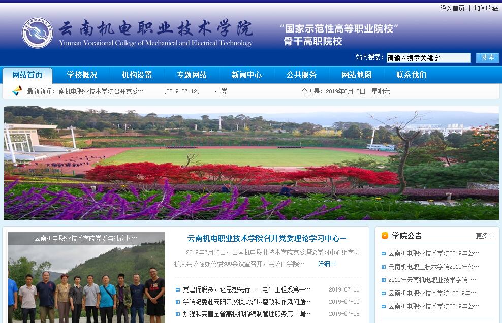 云南机电职业技术学院是2004年7月经云南省政府批准,在原云南省机械工业学校(国家重点中专)和云南省机械技工学校(省级重点技校)的基础上组建的,以培养制造业高技能人才为主的全日制高等职业院校。办学历史可追溯到创建于1910年的省立工业学校,在历史变迁中虽几经更名,但一直秉承职业教育办学宗旨,学院是“云南省省级示范性高等职业院校”、“国家示范骨干高等职业院校”,是教育部第二批现代学徒制试点立项单位,云南省优质高职院校立项单位。学院位于云南省昆明市盘龙区茨坝,曾经是昆明制造业聚居地,环境幽雅,交通便利,现有昆明及东川两个校区。教职工人数400余人,全日制在校学生9000余人,占地面积623亩,教学仪器设备价值11681.66万元。学院紧密结合云南省产业发展规划和先进装备制造发展战略目标,设立5系2部共计41个高职专业,其中,数控技术专业、电气自动化技术专业、焊接技术及自动化专业、产品造型设计专业、汽车检测与维修技术专业为中央财政支持的重点建设专业;机电一体化技术、汽车电子技术、建筑电气工程技术、市场营销为省级重点专业;数控技术专业、电气自动化技术专业、焊接技术及自动化专业为省级特色专业。学院紧跟云南社会发展需要,新增飞机机电维修、飞机部件修理、新能源汽车技术、航空电子电气技术、动车组检修、智能控制技术、大数据技术与应用等专业。学院拥有一支优秀的“双师型”教师队伍,有全国技术能手1人,全国机械工业技术能手3人,全国优秀教师1人,全国机械职业教育教学先进工作者1人,全国黄炎培杰出校长1人,全国黄炎培杰出教师1人;云南省技术状元4人,云南省技术能手3人,云南省技术创新人才1人,云南省有突出贡献优秀专业技术人才2人,云南省政府特殊津贴获得者1人,云南省黄炎培杰出校长1人,云南省黄炎培杰出教师2人,云南省教学名师5人,云南省优秀教育工作者1人,云南省教育教学功勋奖1人,云南省“五一”劳动奖章1人;昆明市名匠2人,昆明市有突出贡献高技能人才2人,昆明市优秀技术能手2人;云南省名师工作室3个,云南省优秀教学团队4个,昆明市名匠工作室2个。学院办学特色突出,专业建设和行业发展紧密结合,人才培养和企业紧密结合,坚持以服务为宗旨、以就业为导向,走产教融合、校企合作的办学之路,推行学历证书和职业资格证书“双证制”及“多证制”培养机制,强化学生的职业技能培养;以“立德树人”为根本,重视学生思想政治工作,倡导“开物成务、明德至善”的校风,注重学生的养成教育,学生以综合素质高、动手能力强广受用人单位好评。毕业生就业率连续5年保持在97%以上,连续多年被云南省教育厅授予“就业工作先进集体”。2012年荣获全省十佳“就业典型”高校荣誉称号,2015年评为“高校毕业生就业创业工作目标责任考核一等奖”和“高校毕业生校园招聘活动优秀组织奖”。学院积极响应国家“一带一路”倡议,开展国际交流与合作,派遣学生到美国、日本、新加坡、韩国等国家留学、就业,同时面向东南亚国家招收留学生。学院注重学生技能培养和服务社会。构建了集实习、培训、鉴定、生产、新技术推广应用、技术研发为一体的实习实训综合体和完备的公共服务平台。目前有校内实训基地42个,其中省级示范性实训基地6个,8个“校中厂”,实践教学工位数5851个;签订协议的校外实训基地93个,其中省级示范性实训基地3个。经过多年发展,逐步构建了“资源共享、内外衔接”的校内基础教学实习、校中厂生产综合实训、校外顶岗“准职业人”实习的三级实训体系。学院是云南省高等学校(制造类)教师教学发展中心、云南省数控技术人才培养模式创新实验区、云南省“数控加工技术应用研究”工程中心、机电加工云南省科学普及教育基地,设有国家第195、220职业技能鉴定所,设有CAXA认证培训站盘龙区再就业培训站、全国计算机应用技术考试(NIT)培训基地、全国计算机信息高新技术考试站、ATA特许培训站、全国计算机等级考试点(省属第41考点)、全国英语应用能力考试站、国家机械工程师资格考试云南省中心考点,欧特克授权认证考试中心,每年为社会培训鉴定上万人次。云南机电职业技术学院以“责任”为指南,树“崇实图新、自强不息”之精神;立“克尽厥职、笃行技精”之校训;承“开物成务、明德至善”之风尚,致力于为云南经济社会发展培养高技能人才,享有良好社会声誉。先后被授予“云南省文明学校”、“黄炎培优秀学校”、“云南省高职教育优秀学校”、“昆明市平安建设单位”等荣誉称号,被《云南日报》誉为“云南省职业教育的排头兵”。教师和学生在云南省组织的全省技能大赛中多次荣获榜首并代表云南省参加全国技能大赛。经过多年的努力,学院已成为云南机电类高技能人才培养的重要基地、云南机电技术培训与鉴定中心、云南机电产业新技术开发与应用推广服务中心,是一所立足云南、面向全国、辐射东南亚的一流职业院校。