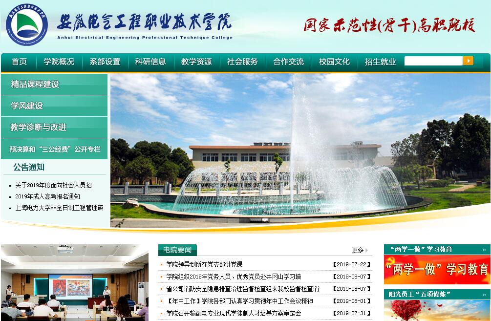 安徽电气工程职业技术学院是经安徽省人民政府批准,国家教育部备案的省属公办全日制普通高等学校,是一所特色鲜明的电力高等职业院校。2008年通过人才培养工作评估,成为安徽省首批示范性高职院校,2010年列为“国家示范性高等职业院校建设计划”骨干高职院校建设单位,且于2013年10月通过教育部财政部“国家示范性高等职业院校建设计划”骨干高职院校建设项目验收。是安徽省第十届、第十一届文明单位。学院座落在安徽省省会合肥市,占地面积134亩,校舍建筑面积6万余平方米。拥有良好的教学设施和完善的生活体育设施。校园景观及环境优美,具有文明和谐、积极向上的良好育人氛围。 悠久的办学历史 学院2003年由安徽电力职工大学、合肥电力学校合并组建而成。安徽电力职工大学始建于1979年,被原国家教委授予“全国成人高等教育评估优秀学校”;合肥电力学校创办于1964年,是首批“国家级重点中专学校”。两校治学严谨,特色鲜明,为安徽省电力及相关行业培养了一大批生产技术骨干和基层管理干部,成为电力电气人才的摇篮。 求实的办学理念 学院秉承“求真、崇善、守诚、躬行”的校训,始终坚持“以人为本、特色兴校、厚德重技、知行合一”的办学理念,坚持“立足行业、面向社会、培养高素质电力电气技术应用型人才”的办学定位。以服务社会经济发展为宗旨,以就业为导向,以素质教育为主线,以能力培养为本位,以技能教学为重点,面向电力行业及地方企业,培养高素质电力电气技术应用型人才。特色的专业设置 开设电网技术方向、电源技术方向、自动化技术方向等三个专业群,其中,“发电厂与电力系统”、“电厂热能动力装置”、“电气自动化技术”、“供用电技术”是国家重点专业。省级重点建设专业4个,省级精品特色或示范专业9个。国家级“精品课程”3门,“省级精品课程”9门,省级“精品资源共享课程”8门,省级“精品视频公开课”1门。优秀的师资队伍 学院教职工共有276人,其中,本科以上学历占职工总数的85.5%;具有高级职称85人(其中正高级9人)、中级职称113人,中级以上职称占职工总数的71.74%。学院现有专任教师151人,省级“双师型”教师98人,国家级教学名师1人、省级教学名师7人、国网公司级专业领军人才2人,省级优秀教学团队9个,省级教坛新秀9人,省级专业带头人6人。学院还从著名高校、科研院所、企业特聘了百余名工程技术专家担任客座教授和兼职教师。先进的实训设施 学院通过校企共建,建成79个校内实训(实验)室,24个企业员工岗位培训实训室。包括600兆瓦超临界和300兆瓦亚临界火电仿真系统,循环流化床仿真系统,500千伏和220千伏变电仿真系统,220千伏区域电网调度运行仿真系统,低压配电工程、高级电工、电力电子与电气传动、DCS控制系统、继电保护、综合布线以及新能源发电技术实训室等。获中央财政支持的实训基地1个,“省级示范实训中心”9个,“省级人才培养模式创新实验区” 1个。丰硕的教科研成果 学院近年来出版课程教材35部,其中8部为“十二五”规划教材,15部为“项目导向”专业课程教材。编制校本实训教材53部。近三年,承担国家级、省级重大教学教研项目6项;获省级及行业协会优秀教学教研成果奖42项、省级科技进步奖7项、中国电力企业联合会管理创新奖2项;在核心期刊上发表论文130余篇。在全省及全国高职院校学生技能大赛、“互联网+”大学生创新创业大赛中多次获一、二、三等奖。良好的校企合作机制和就业前景 学院与省内外100多家知名大中型企业紧密合作,建立校外专业实训基地50余个,开展“订单培养”,推行“工学结合”,强化“顶岗实习”,积极推进“现代学徒制”建设。 80%以上的学生,通过到企业顶岗实习最终就业,就业率一直保持在93%以上,被评为“安徽省教育厅就业先进集体”和“安徽省普通高等学校毕业生就业工作标兵单位”。学院毕业生因专业技能强、职业素质优,深受企业欢迎,被用人单位赞誉为“用得上、留得住、干得好、潜力大”,赢得良好社会声誉。