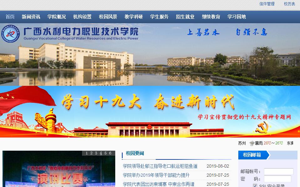 广西水利电力职业技术学院坐落于中国绿城、全国文明城市、广西壮族自治区首府南宁市,是一所以水利、电力、机电、建筑、计算机与信息等工科类专业为主,经济、管理等人文类专业有机结合的创新型高职学院。学院始建于1956年,原名南宁水利学校。1970年,更名为广西水电学校。2002年,升格为广西水利电力职业技术学院。学院是国家骨干高职院校、全国水利高等职业教育示范院校、广西示范性高职院校、广西职业教育攻坚示范性高职院校。2018年获水利部授予全国优质水利高等职业院校建设单位和全国优质水利专业建设点。同年,获批为教育部第三批、自治区首批现代学徒制试点单位。学院现有教职工649人,专任教师411人,其中高级职称134人,占专任教师比例32.6%,拥有中国工程院院士顾问1人,教授 27人,博士8人,自治区级优秀教学团队2个。开设有 8个系2个教学部,55个高职专业。目前有在校全日制学生14479人,成人教育学生1000人。学院有自治区级精品课程14门,优质专业12个,特色专业9个,国家级职业教育实训基地1个,区级示范性高等职业教育实训基地6个,广西职业教育示范性特色专业及实训基地建设项目6个。2000年经劳动部批准设立水利行业水电职业技能鉴定站,2003年10月,被广西壮族自治区安全生产监督管理局确定为三级安全培训机构,2004年12月设立国家职业技能鉴定所,2007年5月,学院被国家电力监管委员会南方监管局确定为电工进网作业许可办理点、理论考试点和实操考试点。学院占地总面积约1100.13亩,分为长堽、里建两个校区,建筑总面积348653平方米。校园环境优美,职业氛围浓厚,教育设施先进。联合243家企事业单位和相关院校,成立了广西水利电力职业教育集团,切实保证了工学结合、校企合作深度有序进行;与500多家企事业单位长期稳定合作,为毕业生就业提供了广阔的舞台。毕业生就业率一直在90%以上,多年荣获“全区普通高校毕业生就业创业工作突出单位”称号。半个多世纪以来,从学院走出了八万多名高技能优秀人才,活跃在祖国的大江南北、大河上下和电厂内外,他们中的大多数已成为所在行业的骨干力量,有的还成为了知名专家和领导干部。学院因此被社会誉为“水电人才的摇篮”。上善若水,自强不息。当前,广西水电学院正朝建成特色鲜明、国内一流的国家示范性高职名校的伟大目标,铿锵前行,不懈奋斗!