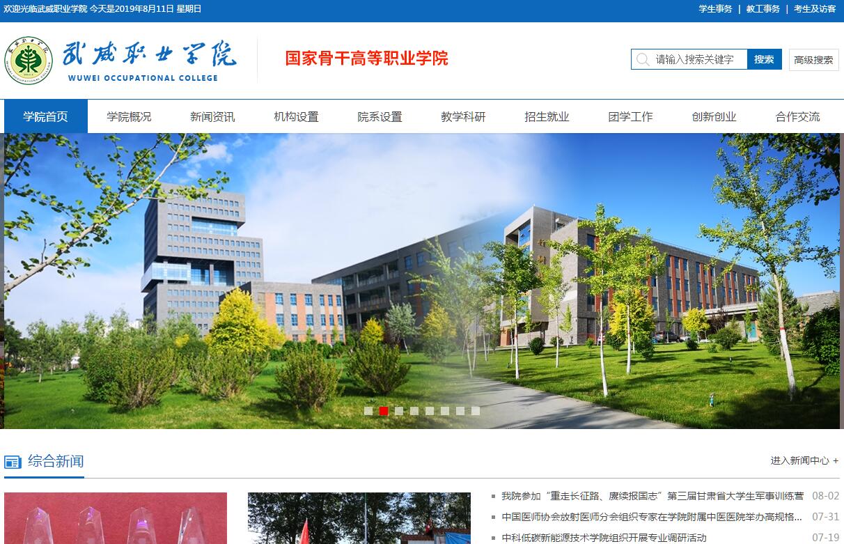 武威职业学院是一所“省市共建、市管为主”的全日制公办普通高等职业院校,是国家骨干高等职业院校、省级示范性高等职业院校、省级优质高等职业院校建设计划项目培育学校。2003年4月经甘肃省人民政府批准成立,先后整合武威教育学院(成立于1985年5月)、甘肃广播电视大学武威分校(成立于1979年9月)、武威财贸学校(成立于1984年3月)、武威师范学校(成立于1915年6月)、武威市旅游职业中等专业学校(成立于1998年10月),2011年4月经甘肃省教育厅、省卫计委同意,国家级重点中专武威卫生学校(成立于1969年5月)整体并入学院。2018年2月甘肃省教育厅、武威市人民政府、中国科学院先进核能创新研究院签订联合办学协议,在学院设立“中科低碳新能源技术学院”。学院在长期的办学实践中秉承“尚学崇技、求真创新”的校训,弘扬“文明、和谐、团结、奋进”的校风,遵循“立德树人、服务发展、促进就业、适应需要”的办学理念,实现专业设置与产业发展、人才培养与市场需求、学院建设与经济社会发展密切对接,致力于建成“西部示范、全国一流、世界有影响”的职业教育名校。学院所在地武威,位于甘肃省中部、河西走廊东端,是中国旅游标志——马踏飞燕的出土地、全国历史文化名城、中国优秀旅游城市、中国葡萄酒城和全国文明城市提名城市,历史悠久、文化底蕴深厚、区位优越,崇文尚德、包容创新,自古就是兴学育才的上选之地。校园占地面积914亩,建筑面积34.15万平方米,有1家直属附属医院、1所20兆瓦光伏扶贫电站。学院现有各级各类注册学生14330人,其中:全日制本科生637人、专科生10270人、中专生116人,继续教育学生3307人。在职教职工845人,有专任教师515人,其中:正高级职称教师23人、副高级职称教师173人、硕士研究生及以上学历教师144人、教学名师16人、甘肃省名中医5人、专业带头人91人、骨干教师187人、“双师型”教师469人、省级“园丁奖”5人、市级“园丁奖”5人、甘肃省“青年教师成才奖”5人。建立了400人组成的兼职教师资源库,有外聘兼职教师292人。学院专业门类齐全,特色鲜明,开办全日制高职专科专业58个,成人本、专科专业78个。建成国家级重点专业7个、省级特色专业2个,在建省级优质特色专业8个,形成了以工为主,以新能源和相关医学类专业为特色,国家级重点专业为引领,文、经、农、艺等综合发展的专业布局。教学科研仪器设备总值8152万元,有校内实训室142个、校外实习实训基地178家、国家职业技能鉴定所2个、省级众创空间1个、武威大学科技园大学生创新创业孵化基地1个、市级“创青春通用性众创空间”1个、市级工程中心1个。学院广泛开展科学研究,获批省教育厅科研项目立项16项、科技厅科研项目立项1项、市级科研项目立项10项、院级科研项目立项32项,获省教育厅教学成果奖9项、省教育厅科技成果优秀奖二等奖1项、三等奖1项、市级自然科学技术进步奖二等奖2项,申报技术成果转化3项,创建科研平台4个,出版《武威职教理论与实践》30期。教师在国家级、省级学术刊物发表学术论文1247篇,出版专著48部、教材180本,获得专利56项。学院招生就业呈现两旺局面,2018年,省教育厅下达学院招生计划4500人,实际录取4457人、报到3982人,报到率89.3%。文、理科提档线分别超过省控线115分和83分。近三年平均就业率达95%以上,用人单位对毕业生综合素质评价满意度达95%以上,85%以上的毕业生对就业岗位、工作环境、工资待遇、升职空间满意。在中国教育科学研究院职教满意度调查中,学院在总体满意度、教育质量、教育公平、教育环境四项指标中均进入全国骨干校前20名。学院全面深化产教融合、校企合作,成立校办企业武威泰丰新能源有限责任公司,实施20兆瓦光伏扶贫项目建设任务,2017年6月并网发电,年上网电量约2700万千瓦时,年发电收入约2160万元。项目服务国家精准扶贫战略,精准扶贫800户,保障每个贫困户年收入3000元,持续获益20年。已建成光伏扶贫基地和能源类、机械类、电子类等产教深度融合的生产性实训基地;武威市中医医院和凉州区中医医院整建制并入学院,成立集医疗、教学、科研、康复、预防保健为一体的“三级乙等”综合性学院直属附属医院。投资近7亿元进行扩建和功能提升,开放床位1200张,职工1800人,年门诊量达50万人次以上,将建成“三级甲等”中医院和甘肃省区域中医药服务中心,已成为医学类专业功能完备、产教深度融合的生产性实训基地,极大提升师资队伍、实训条件、实习就业、专业建设水平;与上海中锐教育集团、山东蓝海集团、武威市实验幼儿园等178家企事业单位合作共建实习实训基地。为落实省政府与中科院战略合作协议,服务国家能源安全、节能减排、“一带一路”、西部大开发等重大发展战略,为钍基熔盐堆新型低碳复合能源项目在甘肃落地及相关能源产业在西部形成与发展提供智力支持和人才支撑,甘肃省教育厅、武威市人民政府、中国科学院先进核能创新研究院联合在学院设立“中科低碳新能源技术学院”。本次合作是中科院首次、也是唯一与高职院校的联合办学。以国家顶层科研院所与国家骨干高职院校、大型企业三方强强联合的全新办学模式,建成多元投入、资源共享的混合所有制学院,共同培养产业发展需要“下得去、留得住、用得好”的高素质技术技