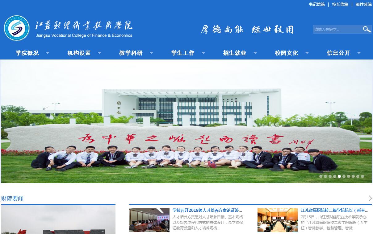 江苏财经职业技术学院是2004年7月经江苏省人民政府批准的一所省属全日制普通高等学校,是教育部高职高专人才培养工作水平评估优秀学校,江苏省省级示范性高等职业院校,江苏财经职业教育集团理事长单位。目前,学校占地面积812亩,建筑面积24.76万平方米,固定资产6.36亿元,教学仪器设备总值11775万元,图书馆馆藏纸质图书76.5万册、电子图书16T。现有全日制在校生8845人,教职工453人,专任教师382人,正高职称28人,副高职称116人,博士后2人,具有博士、硕士学位教师256人,“双师”素质专业教师比例为86%。其中包括“全国模范教师”、“江苏省教学名师”,江苏省“333工程”科学技术带头人,江苏省优秀教育工作者、江苏省高校“青蓝工程”中青年学术带头人和优秀青年骨干教师、淮安市有突出贡献中青年专家等一批具有社会影响力的优秀教师;拥有中央财政支持的重点建设专业2个,省A类品牌专业1个,省高水平骨干专业5个,省级重点专业群3个和重点专业13个,省示范重点建设专业5个,省特色专业1个,高等职业教育“百门精品”课程1门、省级精品课程(在线开放课程)9门,国家级精品教材1部,国家“十二五”规划教材13部,省级精品教材6部,省重点教材5部。国家和省教学成果一、二等奖共8项,省级优秀教学团队1个,省级人才培养模式创新实验基地1个,省教育改革试点项目1个,省级实训基地(平台)7个,省、市级公共技术服务平台10个,国家、省、市级培训服务基地11个。主持教育部、财政部立项的高等职业教育专业教学资源库课程建设3门,能力测试中心1个,参与9门。牵头主持和制定全国财指委财务管理专业、全国粮指委粮食工程专业的专业标准、课程标准、实验实训配置标准建设。在53年的办学历程中,学校为社会输送了5万多名高素质技术技能型人才,广受社会赞誉。近年来,学校以服务为宗旨,以就业为导向,以提高人才培养质量为核心,以机制创新为重点,坚持“立足淮安、面向江苏、突出财经”的办学定位,着力调整专业结构。目前,学校设有会计学院、经济贸易学院、工商管理学院、金融学院、人文艺术与法律学院、机械电子与信息工程学院、粮食工程与食品药品学院、马克思主义学院、基础教学部等9个教学单位,开设会计、市场营销、电子商务、工商企业管理、金融管理、法律事务、粮食工程技术等32个专业及方向,2009年以来先后开设了会计、工商企业管理、国际贸易等专业的“海外本科直通车”项目,开展国际合作办学与交流。同时与南京审计大学、淮阴师范学院、淮阴工学院联合开展“3+2”本科分段培养,与南京财经大学、江南大学、苏州大学、南京航空航天大学等高校合作开展接本教育,与山东大学、兰州大学合作开展现代远程教育。在着力培养“脑子灵、懂管理、善经营、会动手、身心好、讨人喜”的高素质技术技能型人才的实践中,学校积极推进人人出彩的“1349”素质教育育人体系,系统打造“价值引领、文化育人”办学特色,建有“周恩来文化馆”、“淮商文化馆”、“货币文化馆”、“今世缘文化馆”、“艺术文化馆”、“物流文化馆”、“汽车文化馆”、“3D会计展示馆”、“酒器艺术文化馆”、“翔宇文化广场”、“翔宇书斋”以及“清风苑”、“清风亭”、“清风墙”三位一体的廉洁教育基地。不断创新校企合作办学模式、工学结合的人才培养模式和理实一体的教学模式,深入推进高职教育教学改革,全面提高办学内涵质量,增强服务社会经济发展的能力。学校坚持“以人为本”的育人理念,淮安创业大学成功落户我校,并先后建成智慧商科综合实训中心、翔宇思政体验中心、ERP管理会计体验中心、大学生服务中心、大学生素质定向拓展中心、大学生创业中心、大学生法律援助中心、淮安市服务外包产业园以及淮安市人才市场大中专院校分市场,切实为学生办实事,增强学生的职业素养和社会竞争力。五年来,共有近千人次在省级以上技能竞赛中获奖,毕业生就业率始终保持在98%以上。学校积极为地方经济社会发展服务,先后举办江苏省高职高专会计骨干教师研修班、财务管理、市场营销“双师素质”教师培训班、全国高职院校商科类专业骨干教师培训班(国培项目),拥有淮安市中小企业服务基地、江苏省饲料人才培训基地、江苏省粮油人才培训基地、淮安市职业教育师资培训基地、淮安市财税人员继续教育基地、淮安市金融从业人员考试培训基地、淮安市人民调解员培训基地、淮安市创业培训基地。同时,与国内知名企业共建“今世缘营销学院”、“中央新亚管理学院”、“京东电商学院”、“江苏紫金保险学院”、“用友新道创新创业学院”和“中锐汽车商务基地”、“全国用友会计人才培养基地”。建校以来,学校相继以“优秀”格次顺利通过教育部高职高专人才培养工作水平评估和江苏省委教育工委高职高专基层党建考核,并荣获省文明单位、省模范职工之家、全国高职院校创新创业教育工作先进单位、省高校思想政治工作先进集体、省高校毕业生就业工作先进集体,省大学生创业教育示范校、省体育工作先进学校、省园林式校园、省教育收费规范高校、省节水型高校、省“文明宿舍”、“文明食堂”先进单位、省对外宣传工作先进单位等荣誉称号。学校还先后被教育部确定为全国财政、金融、