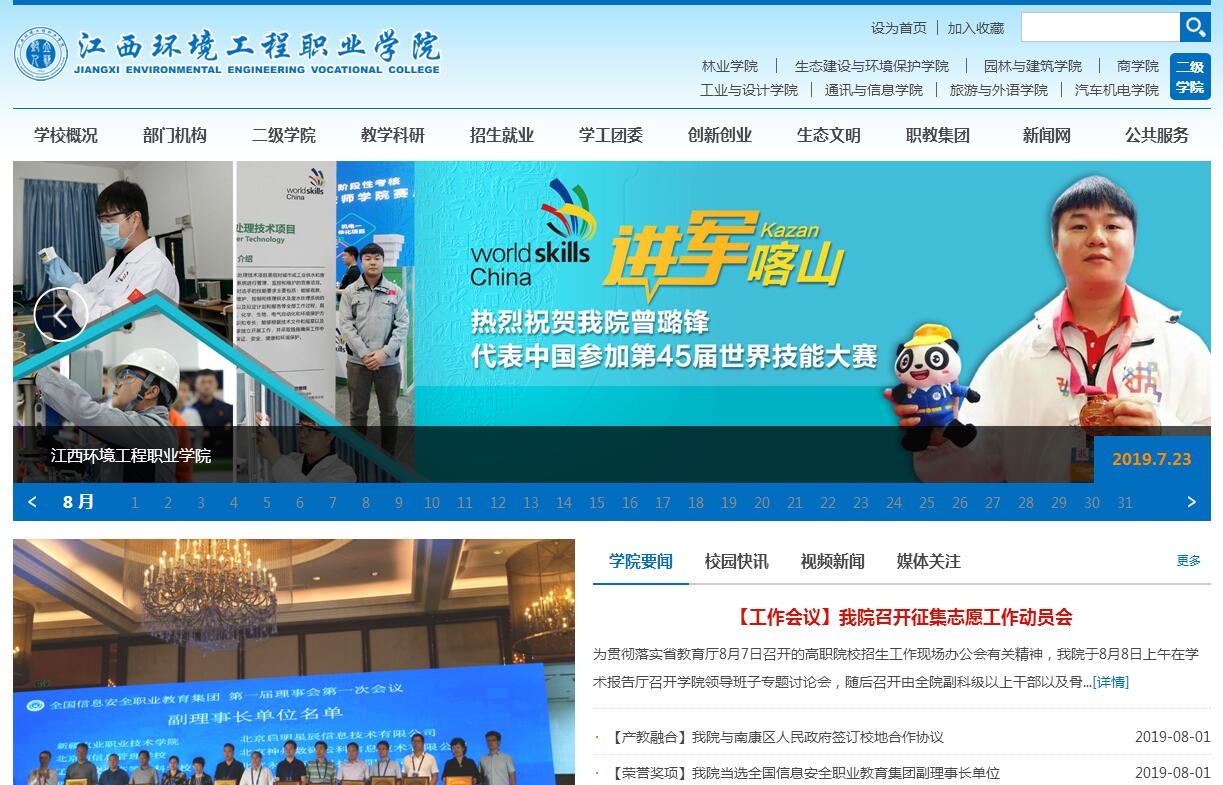 江西环境工程职业学院是江西省政府主办、省林业厅主管的全日制公办高职学院。学校地处的江西省赣州市,是全国文明城市、国家历史文化名城、国家优秀旅游城市、国家森林城市,城市环境优美、交通便利、宜居宜学。学校创办于1953年,是江西省老牌的职业院校。历经赣州林业学校、江西共大油山分校、江西省第一林校几个阶段,2002年4月,升格为高职院校并更名为江西环境工程职业学院,是江西省首批升格的高职院校。2011年12月,升格为副厅级单位,是全省9所升格的院校之一。2015年起,开设应用技术型本科班,连续四年招收本科学生,本科生教育和管理进展顺利。经过65年的办学积淀,学校现为国家优质高职院校建设单位、全国毕业生就业典型经验高校、江西省高水平职业院校,综合办学实力已跻身江西及全国同类高职院校前列。学校校园面积813亩,现为国家AAA级旅游景区。学校以“生态文明建设示范校”为目标,“国家生态文明教育基地”建设为载体,着力打造“人在林中、林在校中、校在画中”式的森林校园。校园里现有各类树木千余种(其中红豆杉、银杏等珍稀树种百余种),形成了15个树种区域和5个植物群落,绿化覆盖率达70%。学校还建设有生态湖、生态苑、生态长廊、立雪湖、立雪亭、求知广场、鲁班广场、名人广场等一系列校内景观以及全省高校中最大的生态科教馆,方便学生潜移默化地接受美的熏陶。专业设置合理。学校根据行业需求和区域经济社会发展需要,统筹规划学科专业设置。现下设林业学院、园林与建筑学院、工业与设计学院、商学院、通讯与信息学院、旅游与外语学院、汽车与机电学院、生态建设与环境保护学院等8个二级学院,开设有2个本科专业、48个高职专业,其中省级及以上特色专业、示范建设专业、人才培养创新试验区共23个,现有全日制在校学生1.1万人。师资队伍较强。学校现有专任教师592人,校外兼职教师 113人,其中高级职称教师166人,博士及硕士学位的共312人,具有“双师”素质的教师371人。省级教学团队3个,省级及以上教学名师5名,省级骨干教师16名,国内外访问学者13人,在省级以上各类学术团体担任委员以上职务的有15人。教师教学能力较强,现有国家精品课程1门,国家级精品资源共享课程1门,省部级精品课程或精品资源共享课程27门,立项省级在线开放课程53门。教学资源丰富。现有教学楼、实验楼、办公楼、图书馆、创客空间等各类教学及管理场馆,校内各类专业实验、实训室127个,校外共建实训基地242个,正投资8000多万元建设实训大楼。现有校园建筑面积36.4万平方米,固定资产达4.594亿元,实验实训设备总值6552.02万元。学校还联合政府、行业、企业、学校、科研院所等132家企事业单位,牵头组建了江西林业职业教育集团。依托职教集团,学校联合国内一些上市公司、著名企业组建了中兴通信学院、铁汉生态学院和中锐汽车学院等一批冠名学院以及“中核勘测班”、“铁汉班”、“华测检测班”、“左右家居班”、“京东班”、“香江集团班”和“TCL班”等30余个校企合作“订单班”,通过深度的校企合作,丰富了教学实训资源、优化了人才培养模式、提升了人才培养质量。生活设施完善。学校建有两栋共5层大型学生食堂,菜肴美味可口、价格实惠,满足广大学生舌尖上的需要;学生宿舍4-6人每间,均安装有空调和网络宽带,有独立卫生间和热水洗浴,为学生提供舒适的居住空间;实行“人车分流”措施,保障师生的校园交通安全;学校距离市中心仅2.5公里,多路公交车直达繁华商圈;学校建设有文化中心、图书馆和足球场、篮球场、网球场等各类体育场馆,正新建大学生活动中心和风雨球场,进一步丰富学生课余文化生活。学生管理特色。学校通过打造辅导员队伍、政治辅导员队伍、心理咨询队伍,全方位加强学生的日常管理;通过“辅导员工作课程化”,提升辅导员工作的针对性和实效性,增强学生的获得感;通过“党建进宿舍”等举措,强化学生党员及入党积极分子的教育和管理,充分发挥优秀学生的示范作用;学校现有大学生艺术团、大学生新闻中心、环境保护协会、茶学社等30多个学生社团,通过把“社团建在专业上”强化学生社团的建设,为学生的课余活动提供更有针对性的指导。创新创业特色。学校针对不同专业、不同年级的学生,开设了素质提升、技能培养、创新创业能力系列课程,传授创新创业理论知识;聘请学校领导、知名企业家担任学生的“就业经纪人”,为学生提供“一对一”的就业及创业指导,多角度、全方位帮助学生优质就业和创新创业;在校园里建设了大学生创客空间,为大学生在校创业提供平台。近年来,学校的创新创业教育取得丰硕成果,一大批学生在校创业并获得成功。学校近三年的就业率稳居江西高校前列。校园文化特色。学校秉承“立艺树人”的校训、“坚毅敏行”的办学精神,大力弘扬“求知求真 立德立行”的校风、“名匠树心 启源躬行”的教风、“乐学崇技 明德笃行”的学风,坚持以师生为根本,遵循特色办学、开放办学、合作办学的办学理念和生态为根、质量为魂、创新为重的发展理念,全面打造特色校园文化。开放办学特色。学校坚持开放办学,积极拓展国际交流与合作。学校与韩国、澳大利亚、美国、英国、瑞典、新西兰、日本、印度、加拿大、希腊等