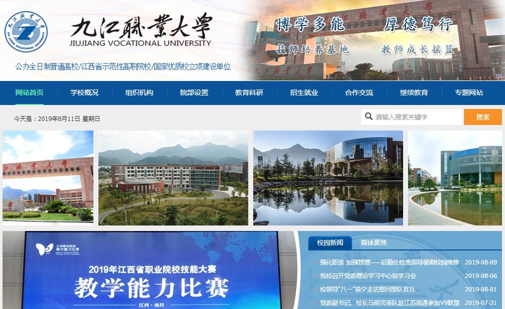 九江职业大学是1985年经教育部批准的公办全日制市属高等职业院校。2006年4月,九江师范学校与九江职业大学合并重组。九江师范学校肇始于1903年建立的九江中学堂,源于宋明理学家周敦颐创办的濂溪书院,承续了千年书院文脉和底蕴,有着一百多年的办学历史,培养和造就了一大批优秀校友。2009年3月,江西庐山旅游中专整体划归九江职业大学,2015年1月,九江技工学校整体转入九江职业大学。现在的九江职业大学已成为招收四年制统招本科(试点班)、高中起点三年制和初中起点五年制大专的综合性省级示范性高等职业院校。学校位于九江市城区,坐落在风景秀丽的庐山脚下,气势磅礴的长江之滨,现有鹤问湖和濂溪两个校区。学校现设有13个二级院部(师范学院、学前教育学院、艺术学院、建筑工程学院、机电工程学院、信息工程学院、文化旅游学院、经济管理学院、护理学院、农经学院、技师学院、继教学院、中专部),开设有56个专业及专业方向,有47个专业面向全国27个省(区)统一计划招生。专任教师730人,其中教授、副教授188人,占专任教师的25%;硕士以上学历的教师261人,占专任教师的35.7%(博士及在读2人);双师素质型教师占专任教师的70.74%,在校生16600余人。学校现建有中央财政支持建设专业2个,省级示范重点建设专业4个,省级特色专业5个,省级优秀教学团队3个,省级精品课程15门。建有中央财政支持的实训基地1个、省财政支持建设的实训基地2个、国家双新人才培养基地1个,省人才培养模式创新实验区2个,省级实训中心1个,国家职业鉴定站1个,职业资质培训考试点3个。学校现为国家级“幼儿园教师培训计划”项目实施高校、国家级服务产业发展能力立项建设专业院校、全国双新人才计划培训基地、江西省定向培养农村中小学(幼儿园)教师及农村劳动力转移培训基地、全国志愿助残服务示范基地等。先后获得江西省文明单位、新华网“2013年中国最具影响力职业院校”、江西省语言文字规范化示范校、全国模范教工之家等荣誉称号。学校也是江西省示范性高职院校,全省高校就业评估优秀单位,江西省内的一所唯一以“大学”命名的综合性高等职业院校。整体办学水平已经处在江西省前列阵容,并且形成了自己的品牌与亮点。目前,国务院规划 “双一流”建设、教育部正推行高职创新发展行动计划,我校正紧跟形势,大力推进国家优质校建设。2015年九江职业大学濂溪新校区基本建成,实现了整体搬迁办学。濂溪新校区坐落在庐山北麓,靠江临湖,山水交融,环境优美。占地901亩,建筑面积40多万平米。新校区本着生态校园、文化校园、和谐校园的设计原则,以学校的公园、公园的学校为设计理念,把学校当做城市景观的一部分,构筑一个山、水、建筑相融的绿色生态校园。新校园以风水理念作为切入点,功能布局上采取两心、两轴、七区的布局模式,行政、教学、实训、活动、生活等功能区相对独立,互不干扰。各项教学、实训、生活设施完备,功能完善。学生宿舍为标准四人间公寓,网络、空调、独立卫生间一应俱全。现代化的建筑,园林化的绿化,完备的教学、生活设施,浓郁的大学氛围为在这里求学的学子提供了便利的条件。以人为本,创新办学理念。学校坚持 “三个主动适应”:与时代发展要求相适应、与国家发展战略相适应、与地方经济社会发展相适应,在人才培养上以“重品行、宽知识、厚基础、强技能”为指针,突出品行教育,重在立德树人。2017年4月,学校新一届党委班子上任,提出“学生第一,教师第一”理念,让行政围着教学转,教师围着学生转,大力转变校风、教风和学风。继续坚持“四个一”人文关怀理念: “关心、关爱学生从每一节课、每一餐饭、每一瓶水着手,决不让一个学生因家庭贫困而辍学”。坚持三个“不动摇”的办学核心,贯彻 “三个面向”的办学导向。打造“三支队伍”,夯实办学根基。内涵发展,革新教学模式。坚持“三个特色”打造,(打造专业特色;打造教学工作特色;打造科研创新特色),进一步厚实办学内涵。按照“三同行、三融合”( 专业设置与企业、行业发展同行,培养质量与职业岗位要求同行,资源建设与技术发展同行;职业资格与培养目标融合,职业能力与课程体系融合,知识教学与技能训练融合),创新人才培养模式;以“两个本位(学生本位与能力本位)、两个渗透(德育渗透与文化渗透)”为核心,按照“实现一个目标(培养技术技能型人才)、构建两个体系(理论与实践教学体系)、促进三个转变 (由教师本位向学生本位转变,由一堂好课向一门好课转变,由知识加技能向教学做一体化转变)”的思路推进“学生本位”课堂教学改革。文化引领,彰显办学特色。专业设置紧贴市场需求,专业建设注重特色品牌。形成了以师范、学前、经管、机电、建筑、护理等为主体的、与其他高校错位发展的特色鲜明的专业体系。创新校园文化的形式和载体,以社会主义核心价值观引领校园文化建设,润物无声,立德树人,探索出“文化引领,习惯养成、素养提升、德操涵养、全面发展”的立德树人新路径。改进德育教育系统工程建设,总结了“五个结合”(与社会主义核心价值体系教育相结合,与大学生品行教育相结合,与国际形势教育相结合,与党情、国情、省情、市情及校情教育相结合,与实践课教学相结合)思政教育方法,并把“
