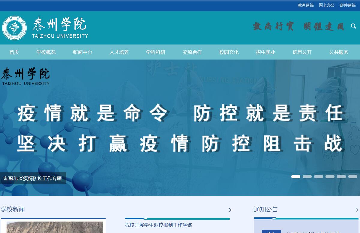 泰州学院是一所全日制公办普通本科院校,坐落于国家历史文化名城泰州市市区。学校办学历史悠久,前身是1941年诞生于抗日烽火硝烟中的泰兴乡村师范和1952年建立的苏北泰州师范学校。2000年在泰州师范和泰兴师范的基础上组建泰州师范高等专科学校,2002年泰州市广播电视大学并入泰州师范高等专科学校,2013年4月经教育部批准升格为泰州学院。学校现有在校生7585人,设有人文学院、数理学院、计算机科学与技术学院、教育科学学院、外国语学院、经济与管理学院、船舶与机电工程学院、音乐学院、美术学院、医药与化学化工学院等10个院系,29个本科专业分布在文学、理学、教育学、管理学、工学、法学、艺术学等学科门类。学校建有3个“十三五”省级重点建设学科、1个省高校品牌专业建设工程项目、3个教育部产学合作协同育人项目、1个省级重点建设实验室、1个省级基础课实验教学示范中心,1个省级人文科学重点研究基地。现有教职工628人,其中教授47人、副教授193人,博士105人。学校拥有享受国务院特殊津贴专家1人,博士生导师3人,硕士生导师21人,教育部新世纪优秀人才1人,省“333工程”中青年科技领军人才1人,省“333工程”青年科学技术带头人16人,省“六大人才高峰”资助人选4人,省高校“青蓝工程”优秀中青年学术带头人培养对象8人,省高校“青蓝工程”优秀青年骨干教师培养对象23人。升本以来,学校科研项目申报和立项的数量持续增长,先后获批国家级项目16项,省部级项目22项,市厅级项目立项174项,申请专利29项;出版专著21本,发表核心期刊以上学术论文509篇;获得市级以上奖励97人次。学校坚持“文化育人”,校园文化氛围浓厚,有1个省级大学生艺术团和近百个校园学生社团。2013年以来,学生在省级以上学科竞赛获奖484人次(4人获国家级赛事一等奖)、省级以上文体竞赛获奖629人次(20人获国家级奖励),获批省级以上大学生创新创业训练计划立项141项;1735名学生获得相关专业资格和职业技能鉴定证书,毕业生平均就业率达96%。学校先后获得江苏省文明单位、江苏省平安校园、江苏省安全文明校园、江苏省高校和谐校园、江苏省思想政治工作优秀单位、江苏省大学生暑期社会实践先进单位、江苏省高校毕业生就业工作先进集体等荣誉称号。面向未来,学校将坚持“五大发展理念”,深化综合改革,强化内涵建设,努力建成一所引领地方文化教育事业发展、服务地方经济转型升级的有特色高水平应用型本科高校!