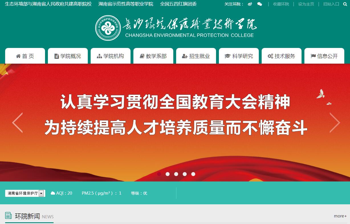 长沙环境保护职业技术学院,创办于1979年,是我国第一所环保类国家公办全日制高等职业院校,湖南省示范性高职学院,是生态环境部与湖南省人民政府共建的高职院校,坐落于湖南省会长沙,被称为“中华环境卫士的摇篮”,是全国首批获得ISO9001:2015质量管理体系认证的职业院校。近年来,先后荣获“全国环境教育示范学校”“全国五四红旗团委”“湖南省文明高校”“湖南省普通高校毕业生就业工作一把手工程优秀单位”等荣誉100多项。学院占地面积550多亩,建筑面积19.1万余平方米,资产总值2.6亿元,环境保护仪器设备在湖南省科研院所和高等学校中最齐全、最先进。学院现有教职工567人,专、兼职教师400多人,其中教授27名,副教授、高级工程师等副高职称168人,省级专业、学科带头人7人,省级青年骨干教师12人,省级优秀教学团队1个。同时还拥有一支由中国工程院院士、国家级(省级)科研院所研究员、大型企业应用人才组成的客座教授团队。学院办学特色鲜明,开设环境监测与控制技术、环境工程技术、环境规划与管理、环境评价与咨询服务、污染修复与生态工程技术以及食品营养与检测、环境艺术设计、电子商务、酒店管理等29个专业,所开专业覆盖了环境保护行业主要职业岗位。面向全国招生,在校学生近9000人。从1979年建校以来,学院毕业生人数达5万余人,如今湖南省各县市区的环保局的环保骨干大多是环保职院的毕业生,有全国各地环保行业领域环保干部人数5千余人,基层环保技术骨干、监测、执法人数1.5万余人。目前,生态环境治理、生态文明建设、环保产业发展都亟需大量的专业技术人才支撑,据统计,每年需求相关从业人员在15万人以上。学院坚持“实践融于教学,技术服务社会”的办学理念,大力培养环保人才。长株潭、珠三角、长三角区域几百家大中型环保企业与学院开展校企合作,每年提供岗位6000多个,学院每年近3000名毕业生供不应求。为优先获得人才支持,华时捷环保科技发展有限公司、永清环保集团、国家检测、湖南湘牛环保实业有限公司、深圳吉隆集团,比亚迪汽车、武汉天虹仪表有限责任公司等数十家上市公司、大型企业与学院建立了良好的合作办学关系;学院已立项教育部现代学徒制试点单位,与聚光科技(杭州)股份有限公司、力合科技(湖南)股份有限公司等多家企业合作办学,开办“聚光班”“力合班”,新生入学即成为公司员工。学院毕业生以“能吃苦、上手快、下得去、留得住”的良好信誉受到用人单位的欢迎,用人单位满意率在95%以上,就业率连续三年都在95%以上。2014、2016年,学院连续被评为湖南省普通高校毕业生就业工作“一把手工程”优秀单位。近三年来,有近1.1万名学生通过了43个工种的职业鉴定考试和8个项目的高新技术考试,职业技能取证率在90%以上。学生在省级以上各类职业技能大赛中屡获佳绩,获国家级一等奖15个,省级一等奖6个,在全国水环境监测技能大赛中,学院代表队连续三届获得团体一等奖。每年有200多名优秀学生经学院推荐,参加湖南省专升本考试,考入到吉首大学、湖南城市学院等高校继续深造,获得全日制本科学历,学士学位;每年有近800名学生通过自学考试,获得湖南师大、湖南农大,中南林业科技大学等高校自考本科文凭;学院还与美国托利多大学签订了联合培养人才的协议,达到条件的可以继续到美国托利多大学学习,毕业后拿本科文凭。近三年来,累计签订各类对外技术服务项目近500项,累计项目到款额3700多万元,其中环境影响评价、环境监理、清洁生产审核、环保竣工验收、环境规划、环境应急预案项目到款额累计达到2970万元,环境检测项目到款额累计730多万元。这既是教师对外技术服务和实践的舞台,也是学生了解企业、开展就业创业的平台。学院先后主持编制国家行业标准7项、地方标准5项。承担了联合国开发计划署、环保部、教育部等各类科研项目160余项,科研经费总计800余万元。学院是“国家级专业技术人员继续教育基地”“环境保护部干部培训基地”“湖南省环保干部培训中心”和“湖南省教育科学环保人才培养研究基地”,每年开展全国各级各类培训50余期,培训环保保护干部和技术人员5000余人次,年产值1000余万元。党的十九大报告指出:“建设生态文明是中华民族永续发展的千年大计。”“要加快生态文明体制改革,建设美丽中国。”站在新的历史起点上,长沙环境保护职业技术学院将一如既往,紧紧抓住培养高素质技能型的生态环保铁军这条主线,持续增强办学实力、核心竞争力和社会影响力,为把学院建设成为特色鲜明的国内一流高职学院而努力奋斗,为生态文明建设贡献力量。