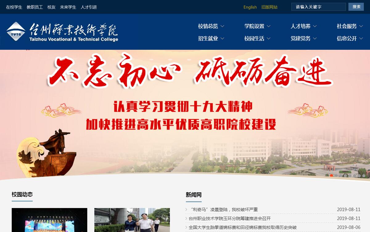 台州职业技术学院是一所政府举办的全日制普通高等学校,地处中国民营经济发祥地之一、长三角南翼重要制造业基地、东南沿海现代化港口城市——浙江省台州市。学校筹建于1999年;2001年5月,浙江省人民政府批准建立台州职业技术学院; 2003年、2006年,浙江省台州工业学校和浙江贸易经济学校先后成建制并入。2007年,学校顺利通过教育部高职高专人才培养工作水平优秀评估;2012年,学校成为“浙江省示范性高等职业院校”。中国高等教育学会会长、教育部原副部长周远清担任学校顾问,浙江工业大学首任校长洪起超担任名誉校长。现任党委书记李昌道,院长章伟。学校占地面积550亩,建筑面积27万平方米,固定资产总值6.1亿元(其中教研设备总值1.48亿元)。下设机电工程学院、信息技术工程学院、建筑工程学院、医学与制药工程学院、管理学院、经贸学院、人文学院(马克思主义学院)、汽车学院、中德学院、艺术学院等10个二级学院。现有全日制在校生1万余人,教职工607人。拥有副高及以上职称教师190人,硕士、博士学历或学位教师384人;省级教学团队2个、省级专业带头人15人、1人入选省青年科学家培养计划。开设31个专业,其中国家教学改革试点专业2个,教育部专项资助专业2个,省级重点专业2个,省级示范建设重点专业3个、省级优势专业5个,省级特色专业12个。拥有省级精品课程15门,省级教学和课堂改革项目50余项,国家规划、省级重点等教材40余部,省教学成果奖4项。学校自成立以来,始终坚持“高教性、职教性、地方性”的“三性”办学定位,以服务区域经济发展为宗旨,秉承“源于产业、依托产业、服务产业”的专业建设思路,深入推进产教融合、校企合作。建有校内实训基地38个、实训实验室179个,其中国家数控技术紧缺人才培养培训基地1个,获中央和省财政专项资金支持实训基地2个;省级示范性实训基地9个。拥有省级产业技术联盟、省级协同创新中心、省级创新团队各1家,市级研究机构5家,校级研究机构14家,校企共建二级学院5个,市级院士工作站1个。学校拥有维修电工、数控车工、人力资源师等三个高级技师鉴定资格,可鉴定和考证工种达22个。学校大力推进教育教学改革,人才培养质量稳步提高。近几年,学生实践创新能力大幅提升,学生获国家级技能竞赛奖10项、省级一等奖30项,获省级大学生科技创新项目(新苗人才计划项目)74项,以学生作为第一作者公开发表的学术论文80篇,获得专利授权和登记软件著作权925项,其中国家发明专利130项,36项科技成果得到推广。学校先后为社会输送了4万多名优秀高职人才,毕业生的初次就业率均在98%以上。学校坚持开放办学,持续推进合作办学国际化,先后与美国、德国、英国、新加坡、香港、台湾等近20多所国(境)内外大学或研究机构建立了校际友好合作与交流关系。与德国bbw教育集团合作举办中德学院、与美国印第安纳理工学院合作举办机电一体化技术专业、参加省“一带一路”职业与语言培训中心(泰国)等职教合作项目。此外,学校还注重师资提升国际化、学生培养国际化,积极开展国际引智和外籍教师聘任工作,多渠道提高师生海外交流学习的比例和质量。学校先后获“浙江省文明单位”、“全国模范职工之家”、“浙江省治安安全示范单位”、“浙江省卫生先进单位”、“浙江省高校先进基层党组织”等多项荣誉。 “省级金牌国家职业技能鉴定所”、“全国英语翻译证书甲级考试培训核心合作机构”、“浙江省首批涉台教育基地”、“浙江省首批国际服务外包人才培育基地”、“台州国家级汽车及零部件出口基地培训中心”等相继落户我校。“潮平两岸阔,风正一帆悬”。学校将励精图治、革故鼎新,全力推进内涵式发展,立足台州,面向浙江,辐射长三角,努力把学校建成优势突出、特色鲜明的高水平优质高职院校。